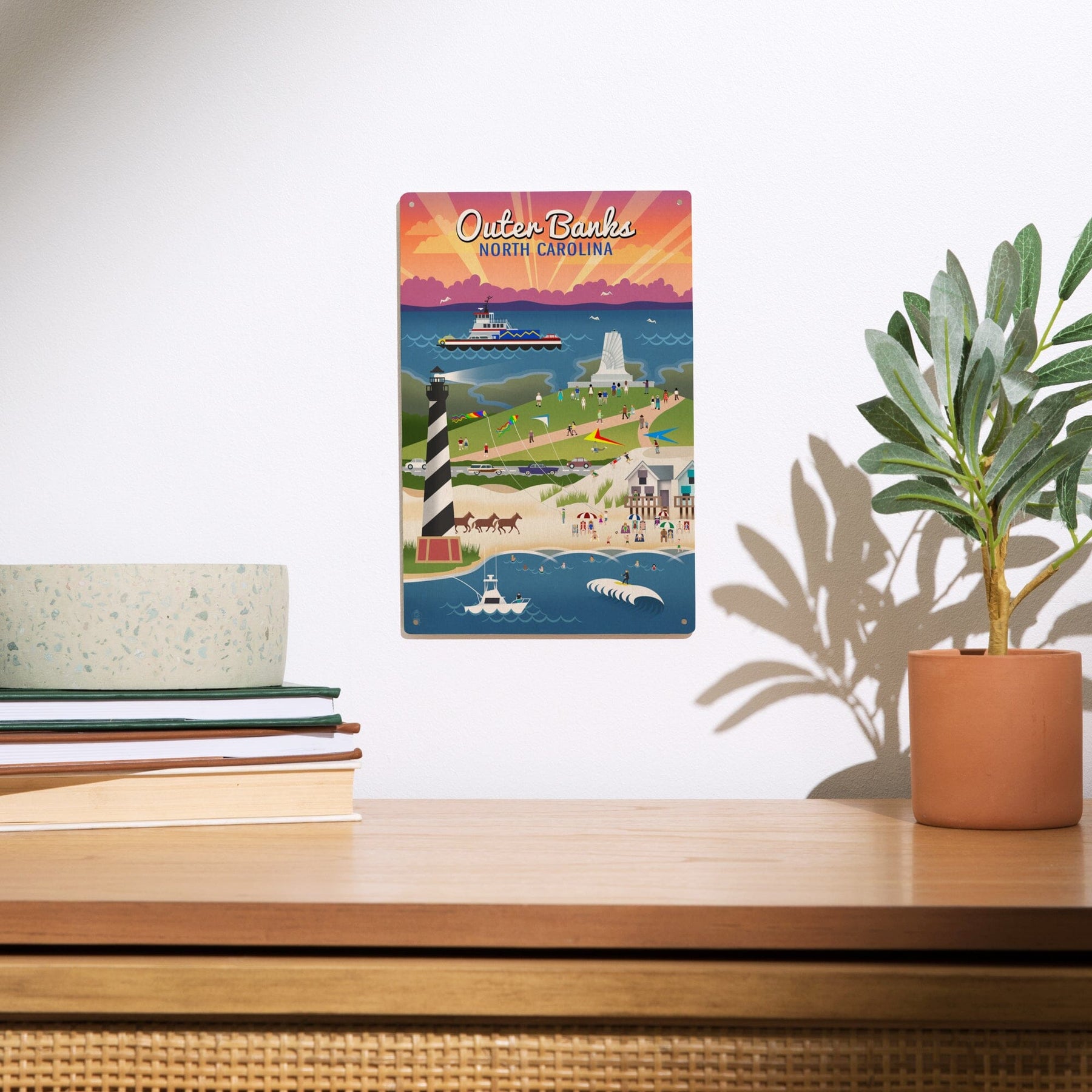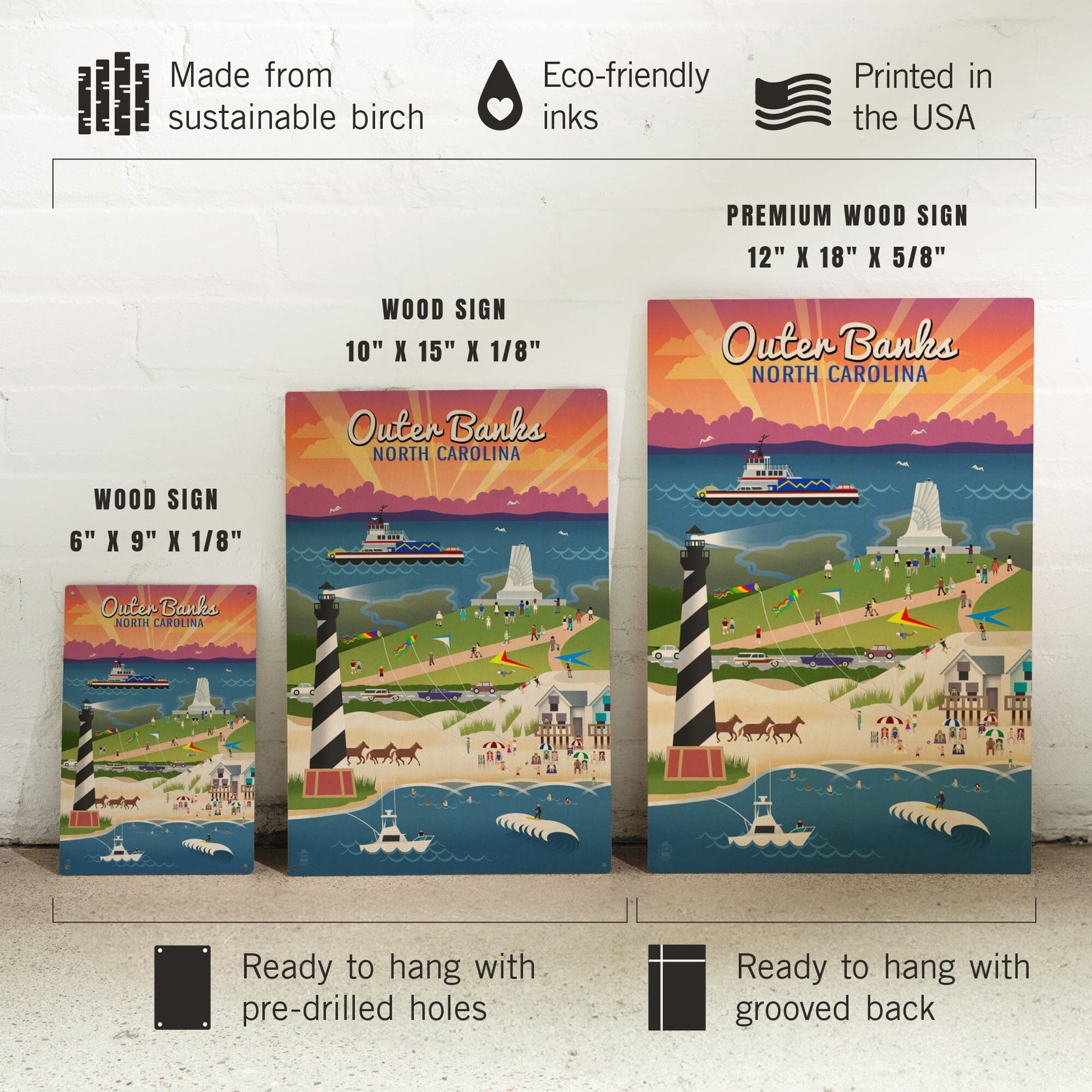 Outer Banks, North Carolina, Retro Scenes, Lantern Press Artwork, Wood Signs and Postcards