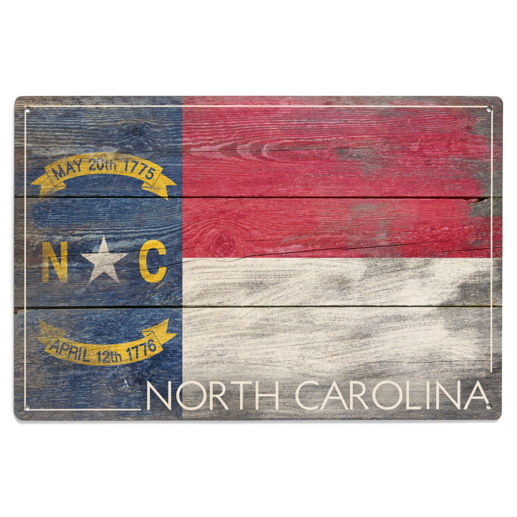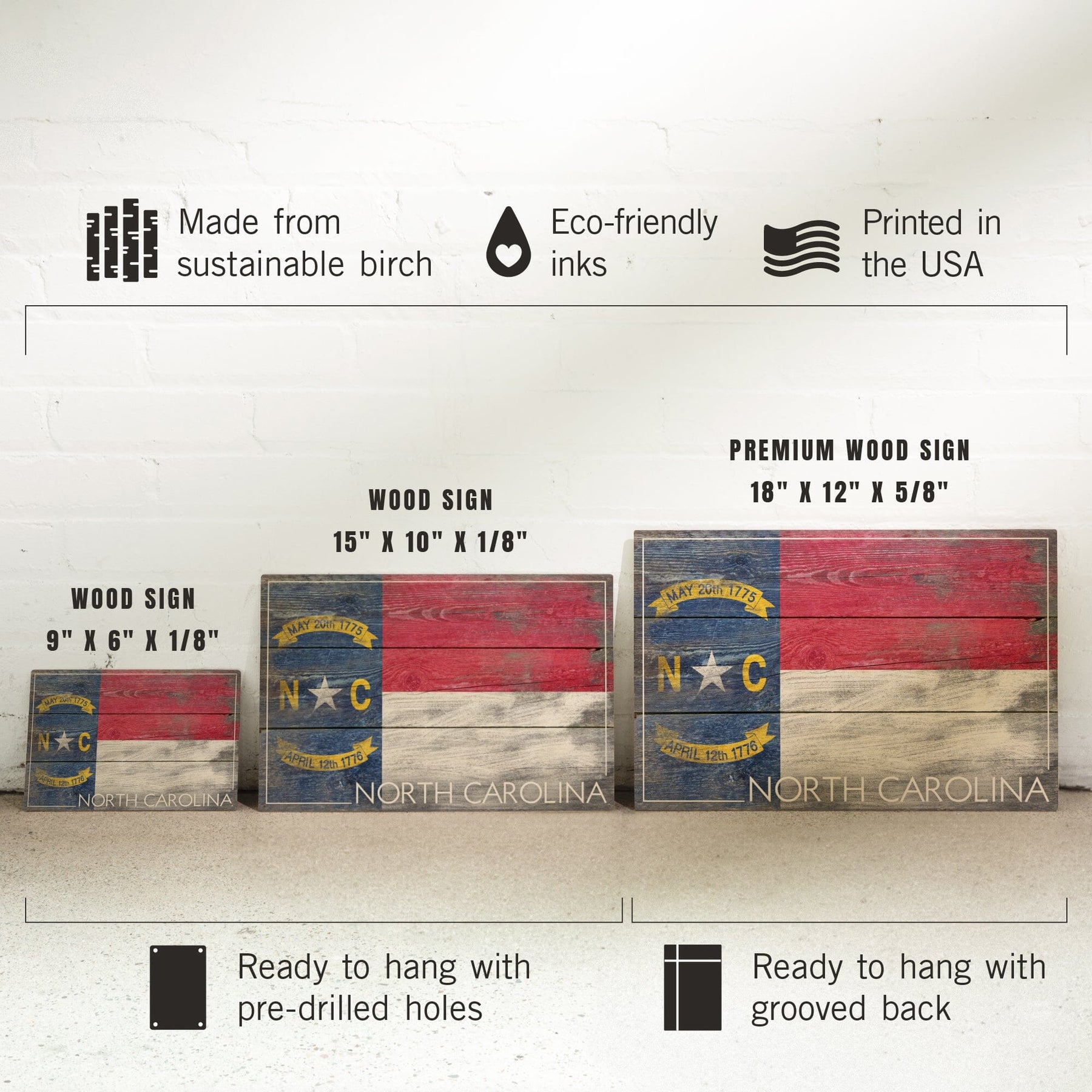 Rustic North Carolina State Flag, Lantern Press Artwork, Wood Signs and Postcards