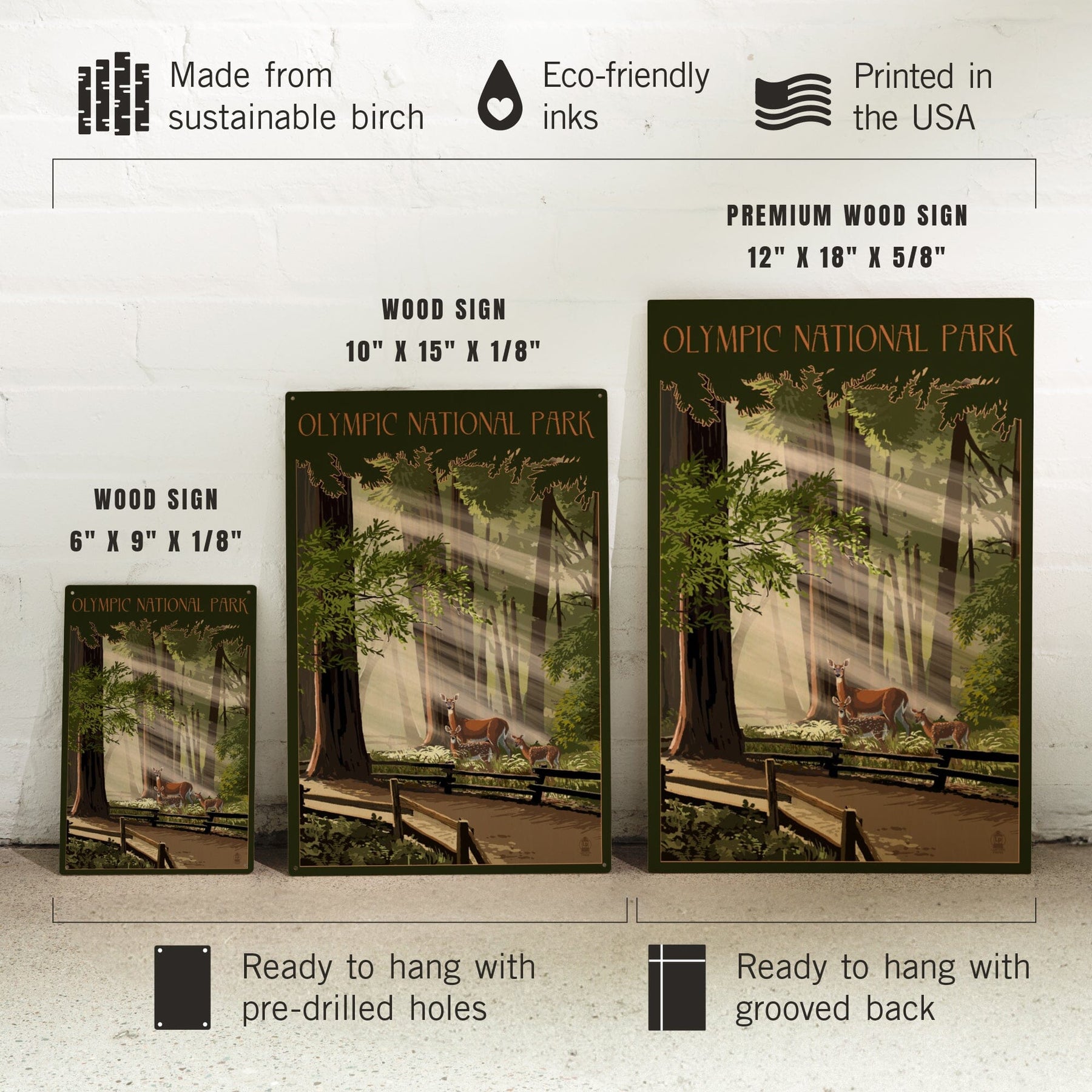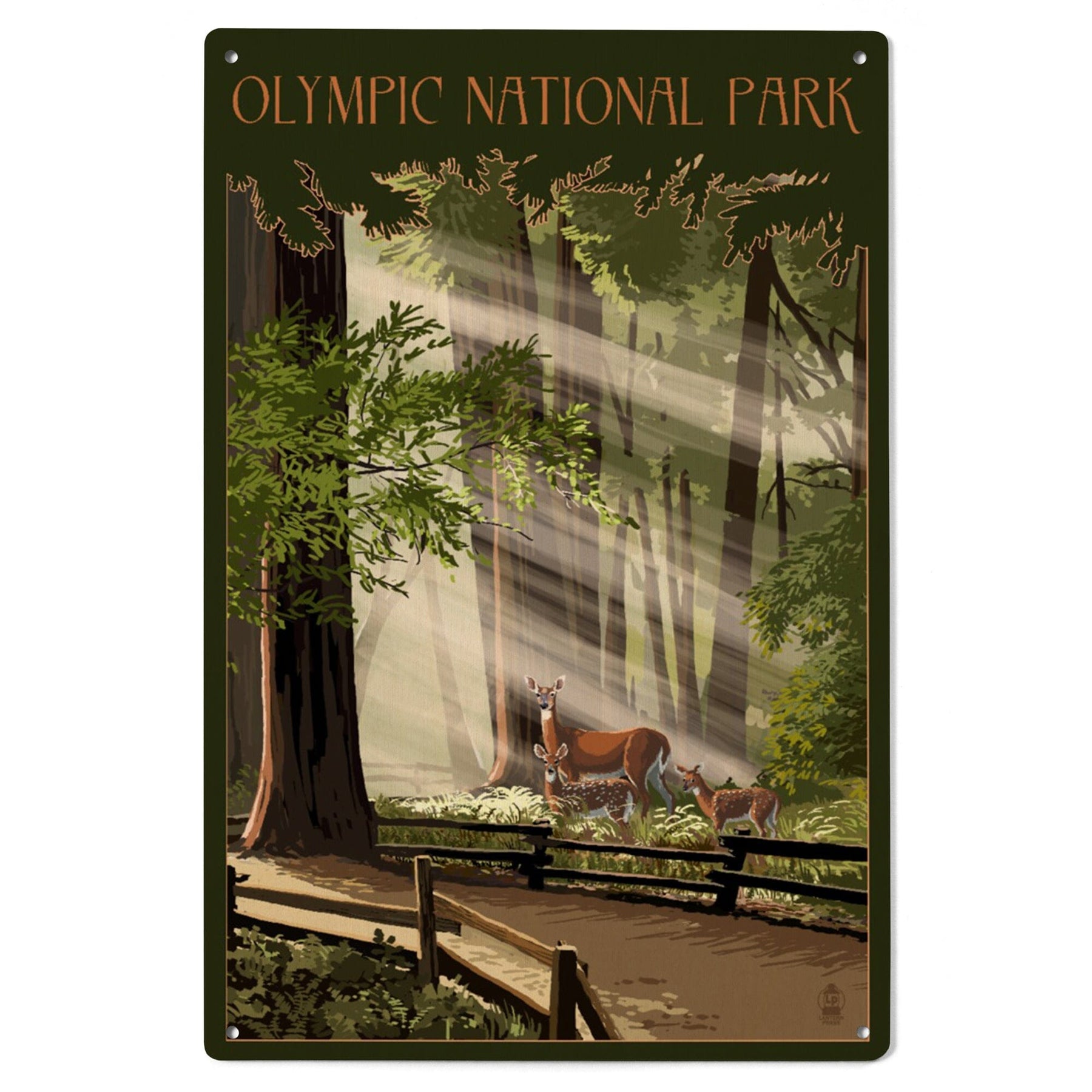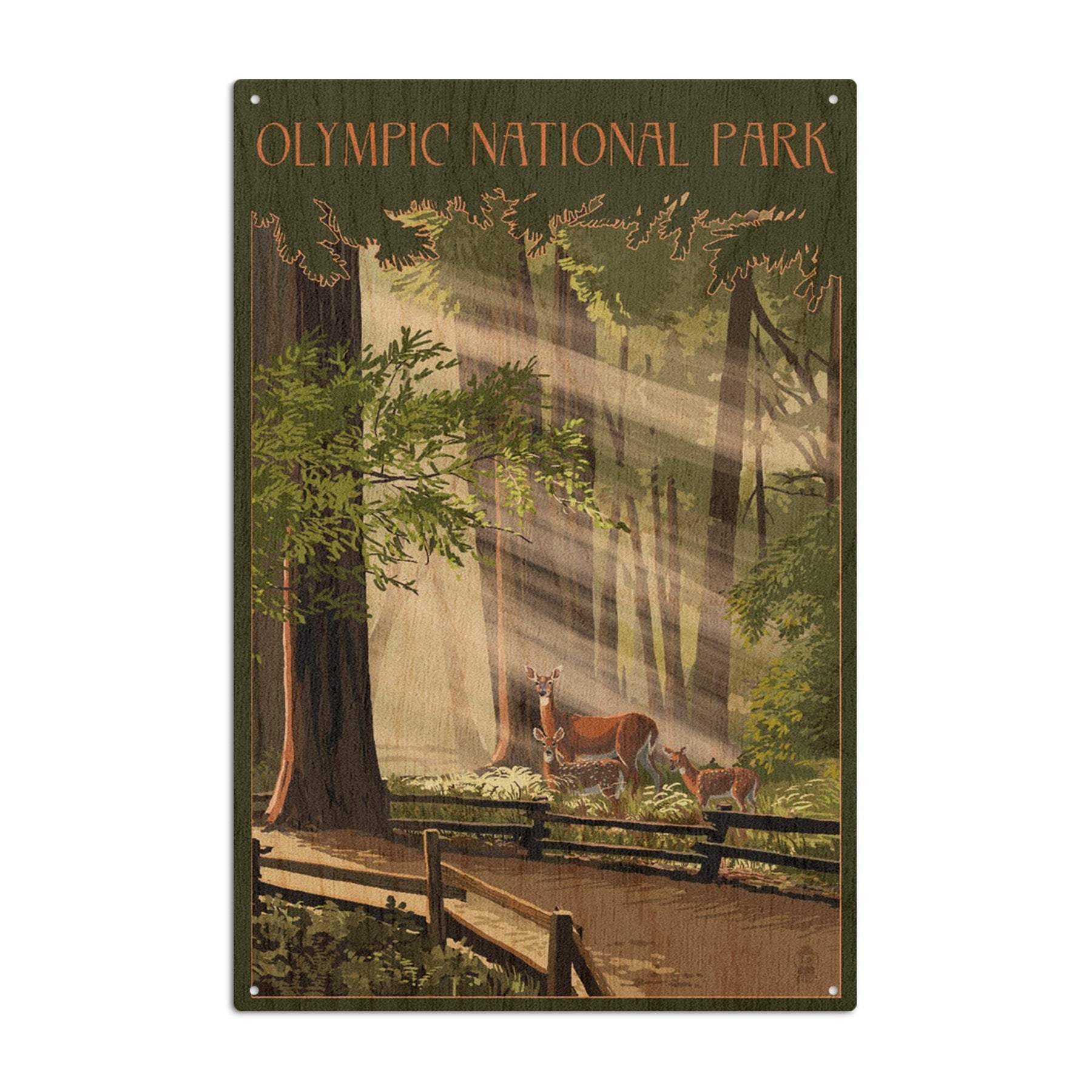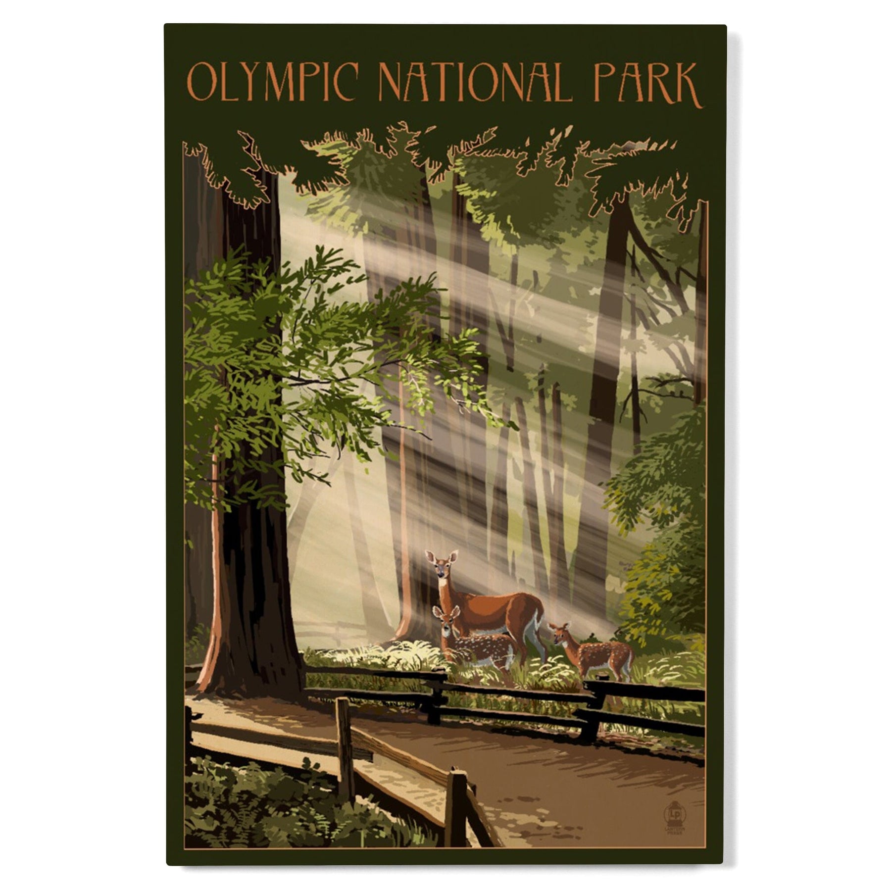 Olympic National Park, Washington, Deer and Fawns, Lantern Press Artwork, Wood Signs and Postcards Wood Lantern Press