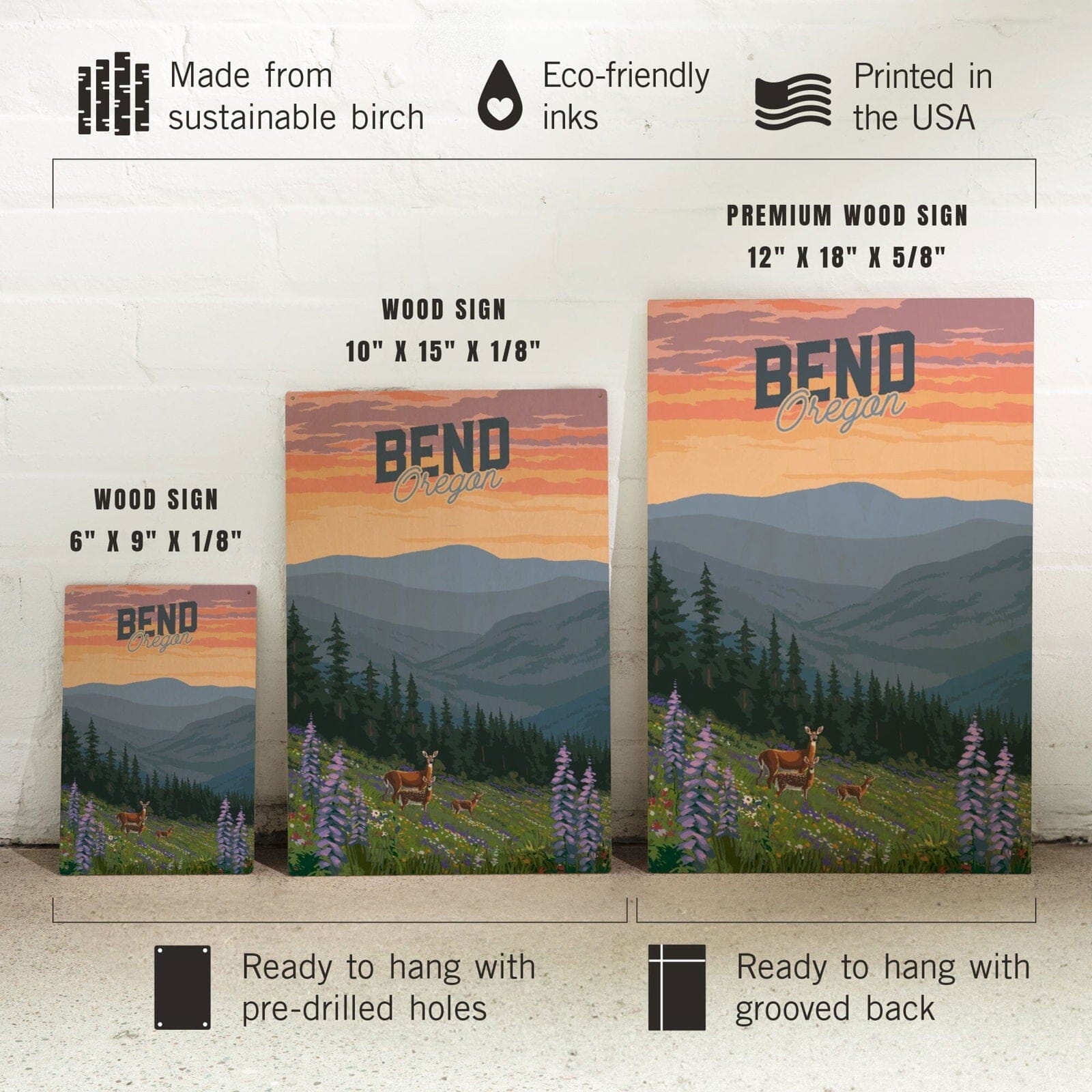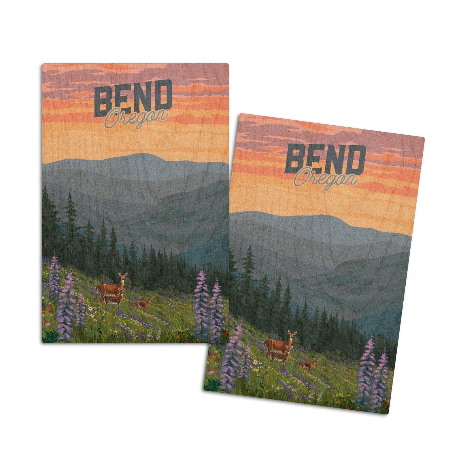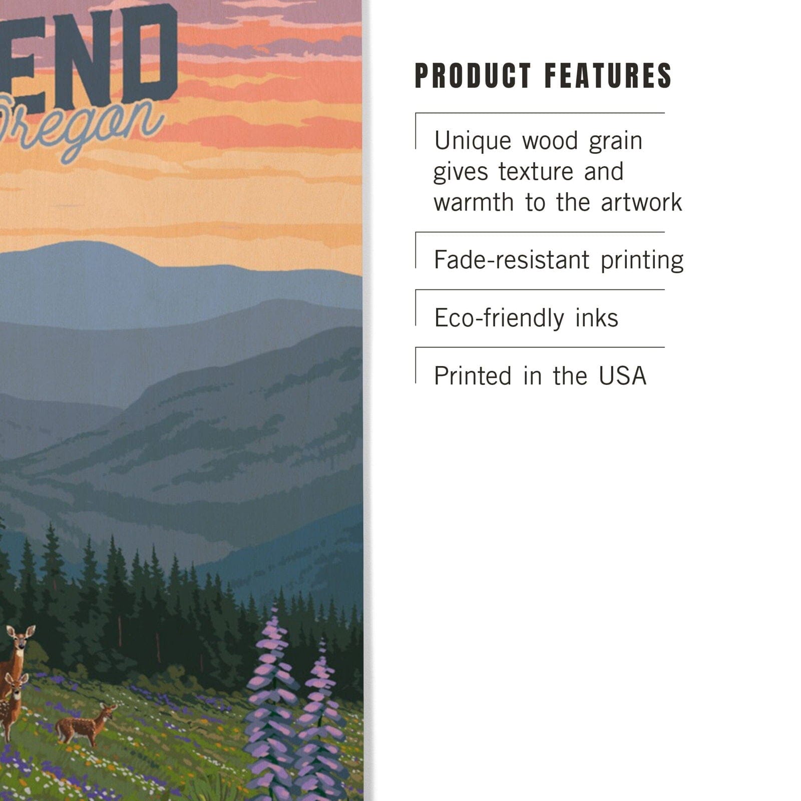 Bend, Oregon, Deer & Spring Flowers, Lantern Press Artwork, Wood Signs and Postcards
