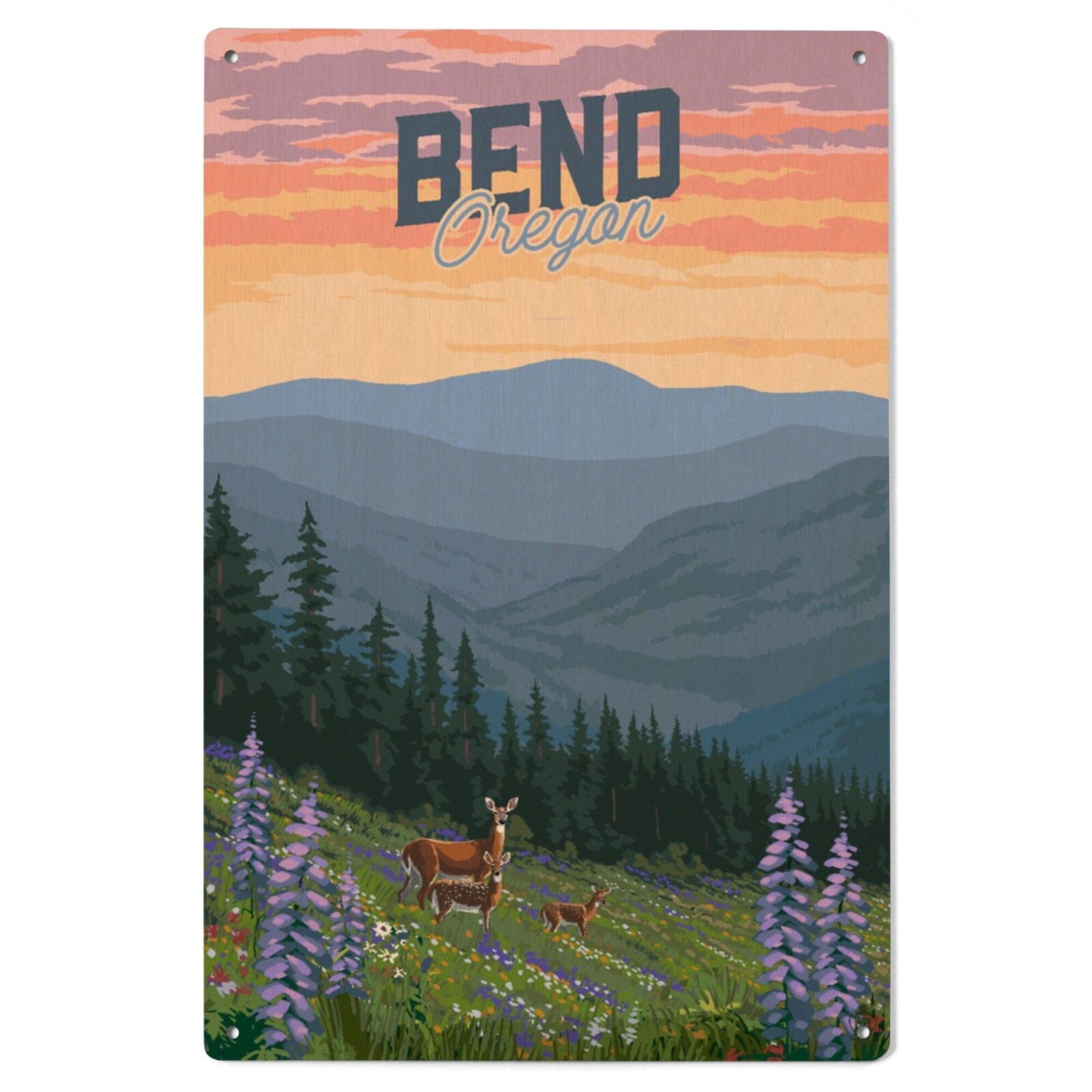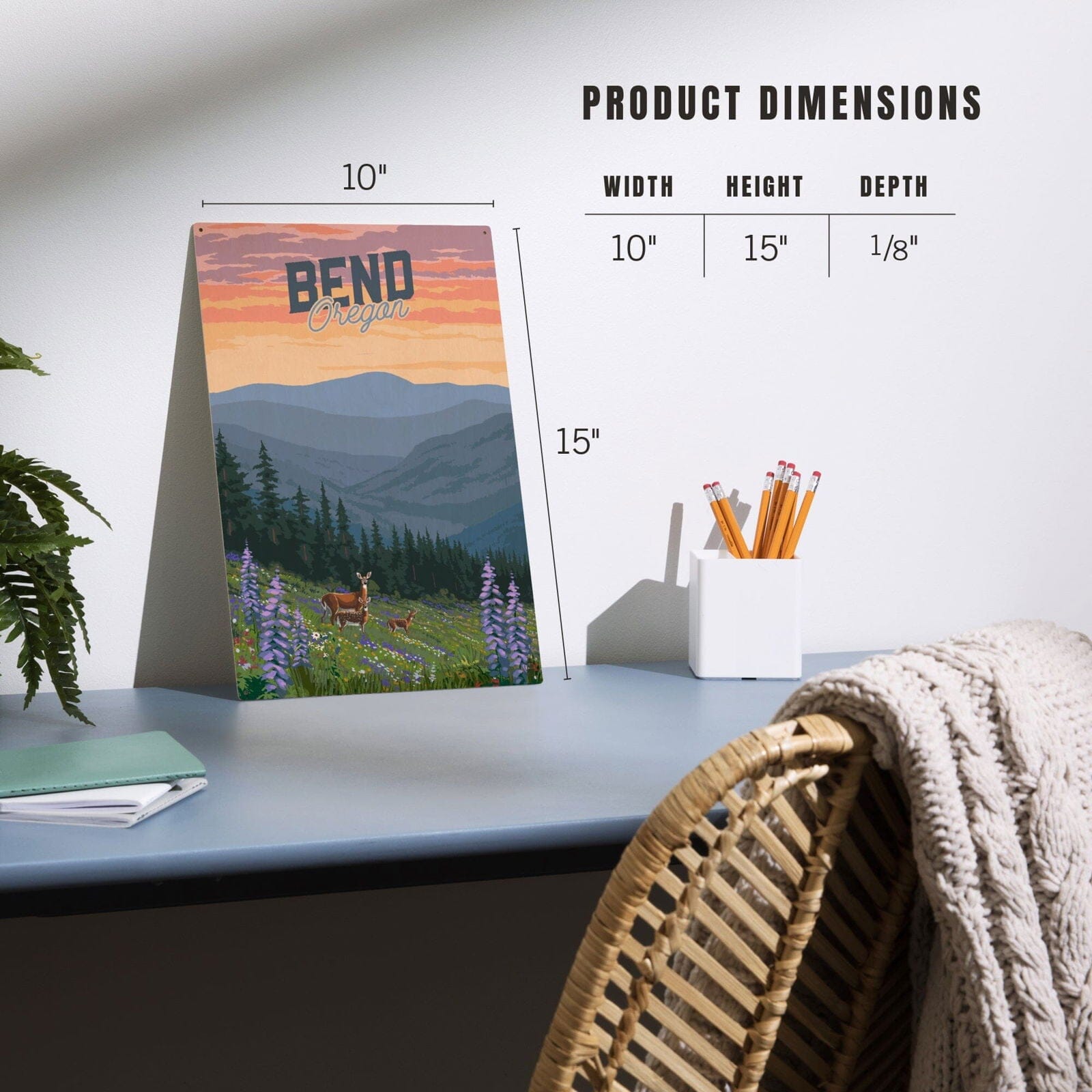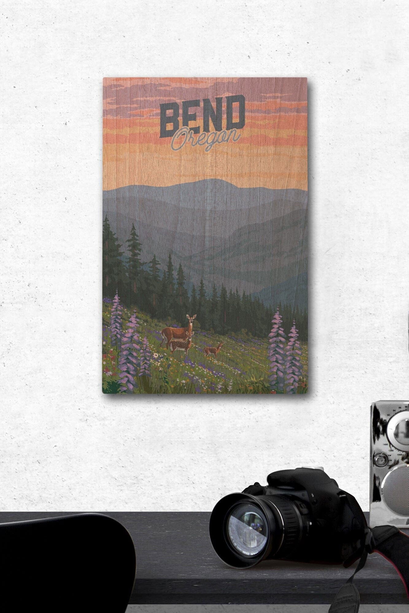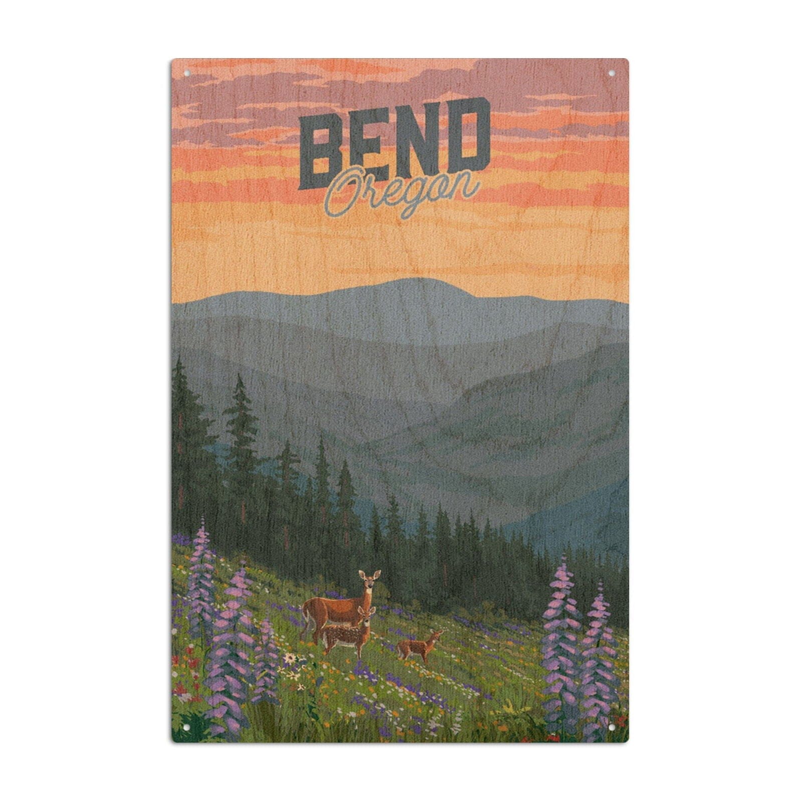 Bend, Oregon, Deer & Spring Flowers, Lantern Press Artwork, Wood Signs and Postcards