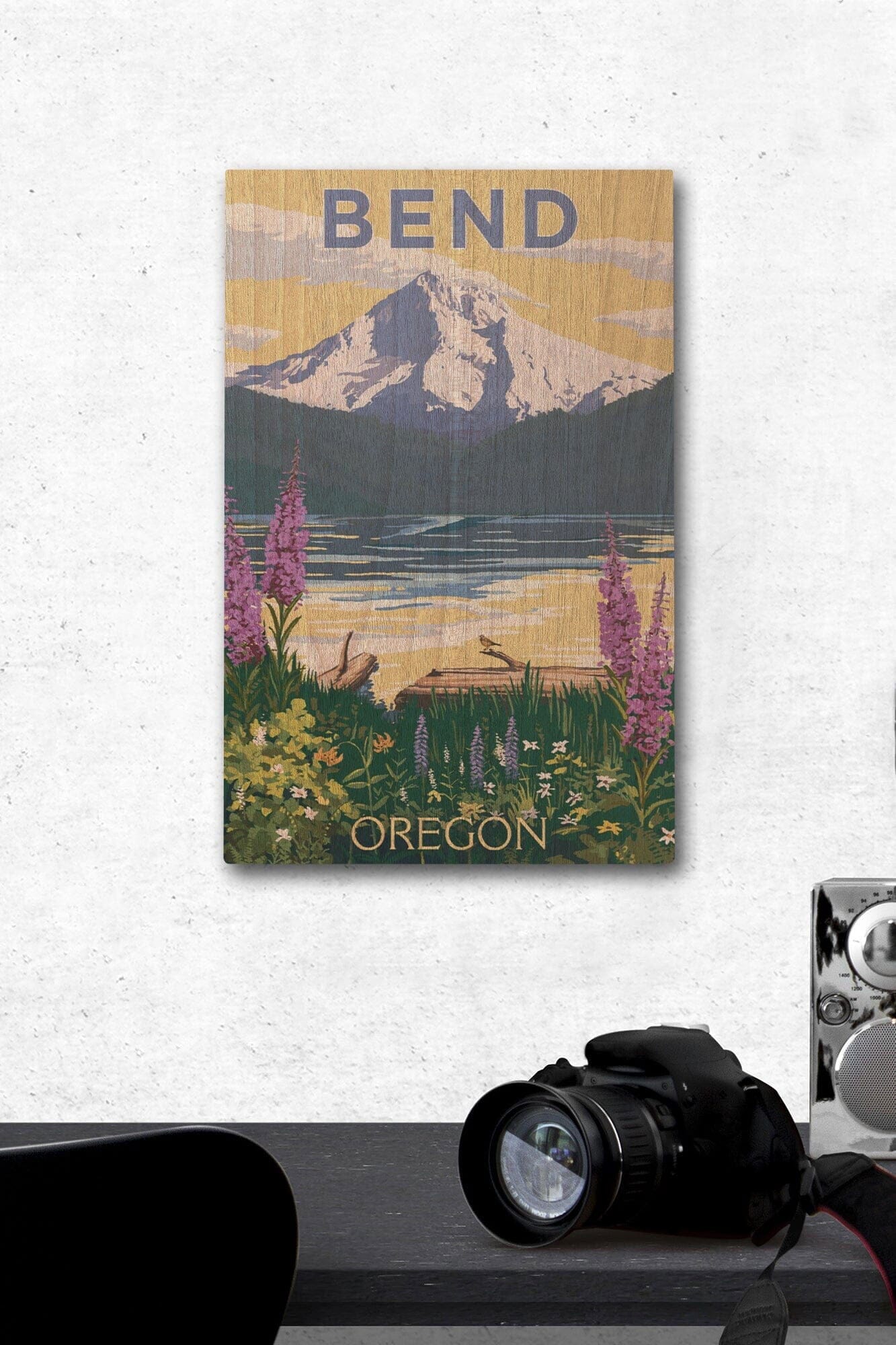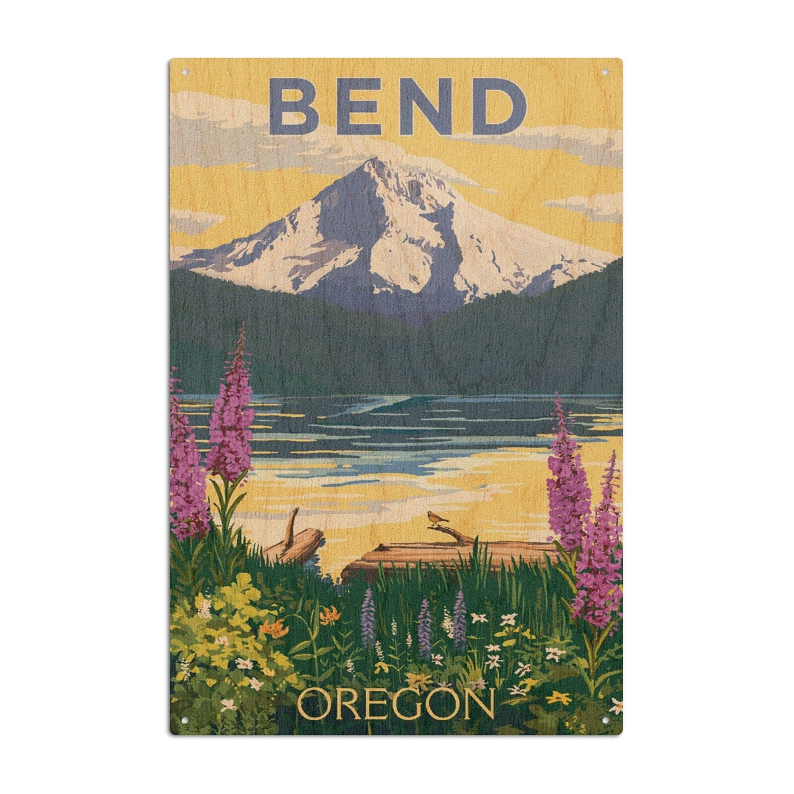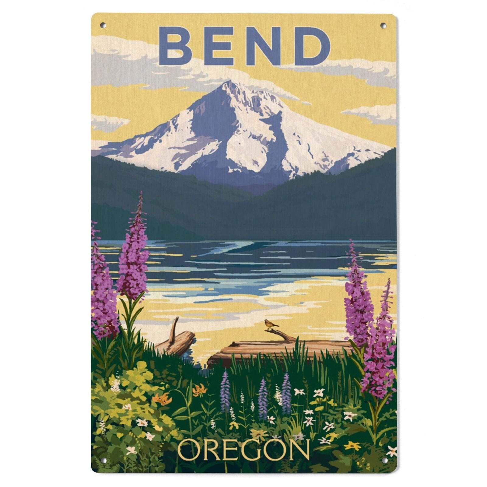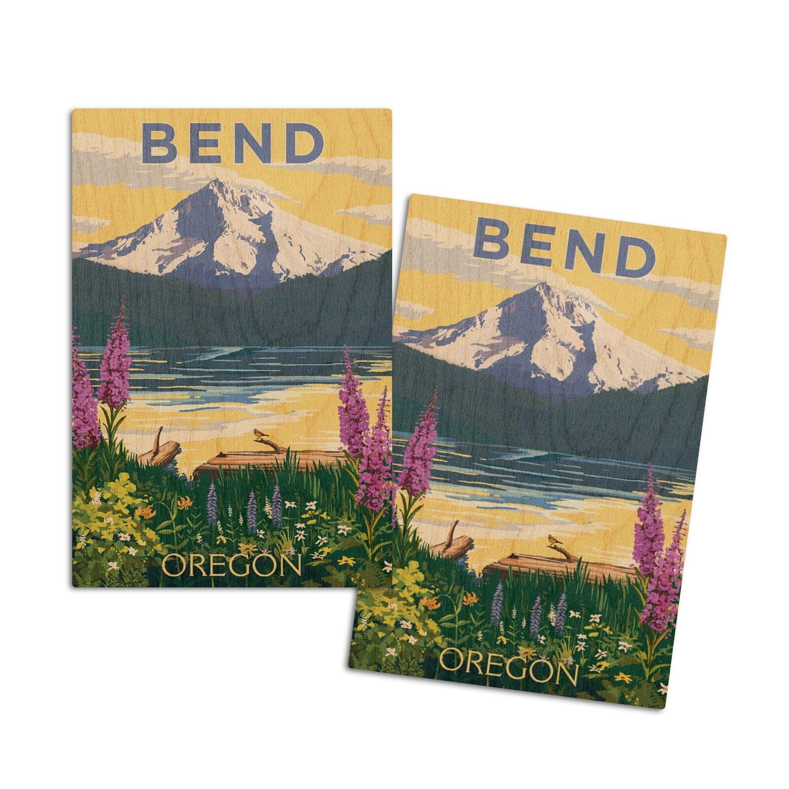 Bend, Oregon, Mountain & Lake Scene, Lantern Press Artwork, Wood Signs and Postcards Wood Lantern Press