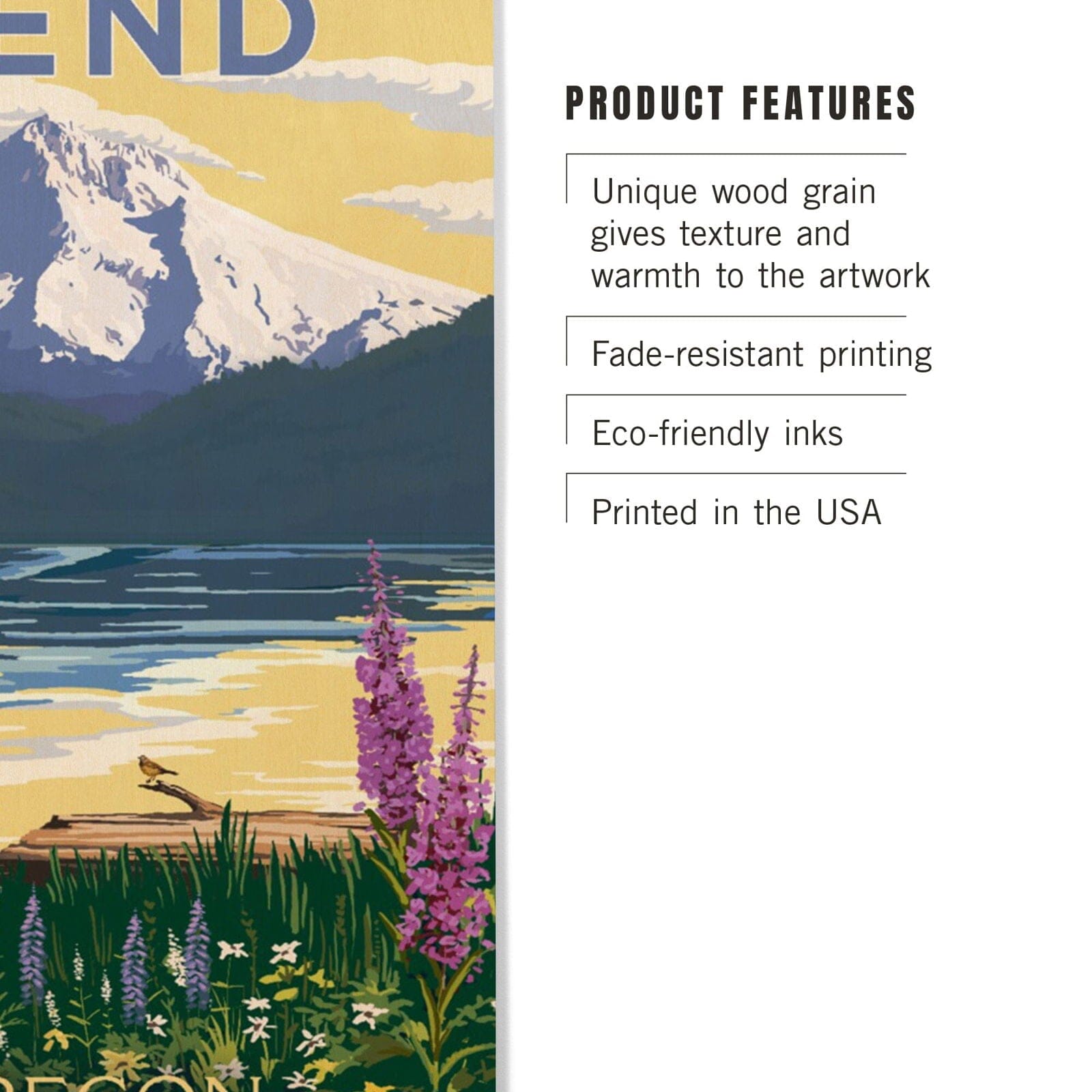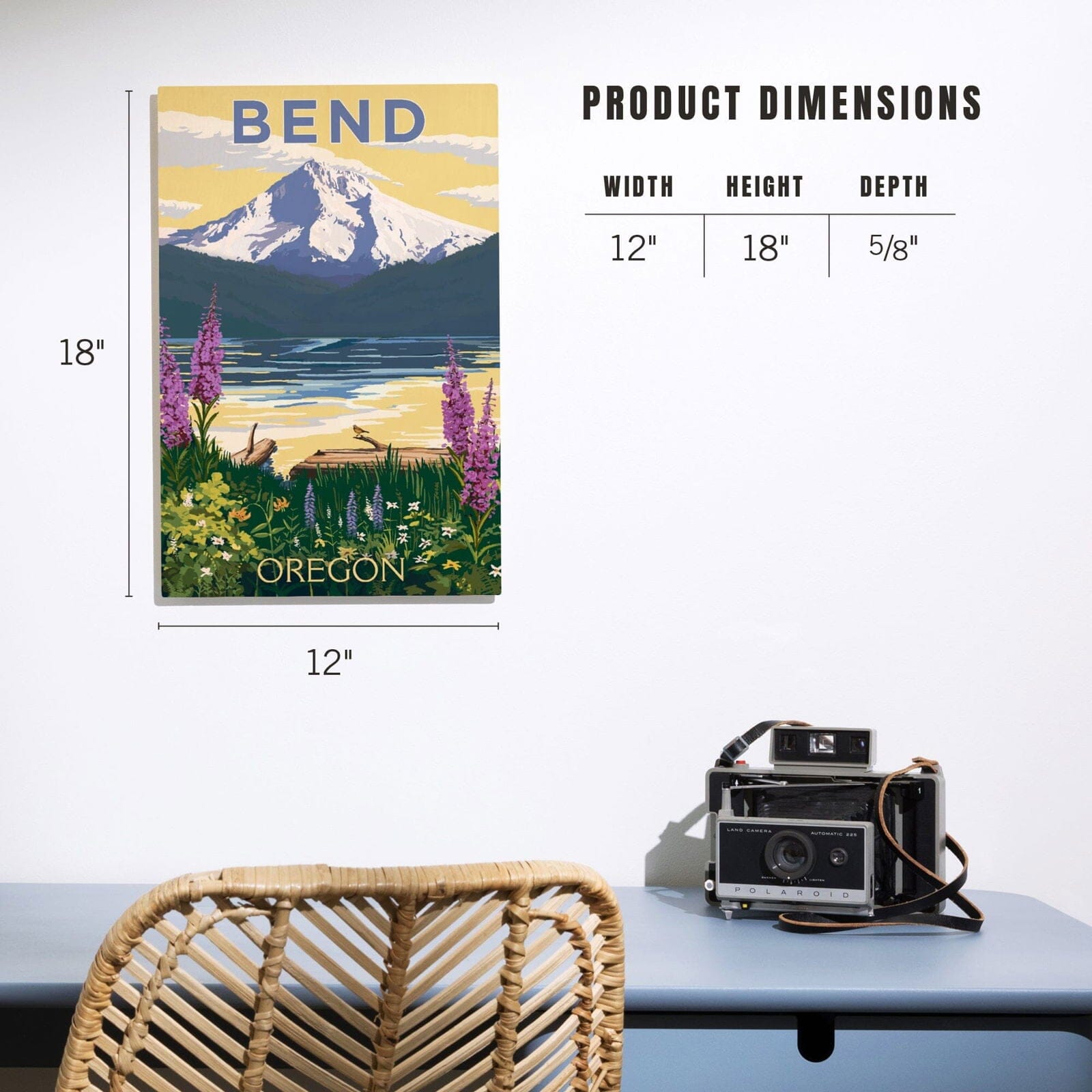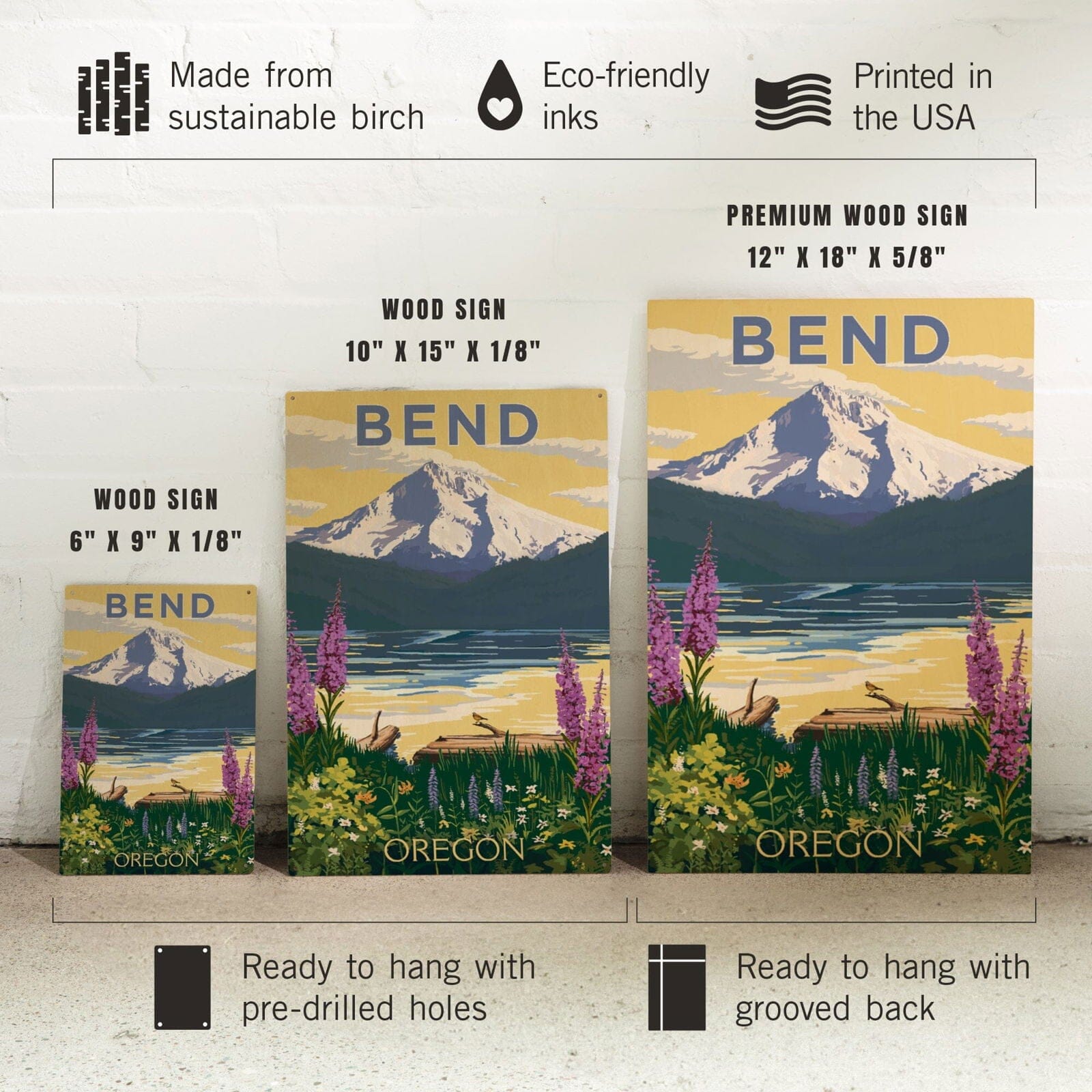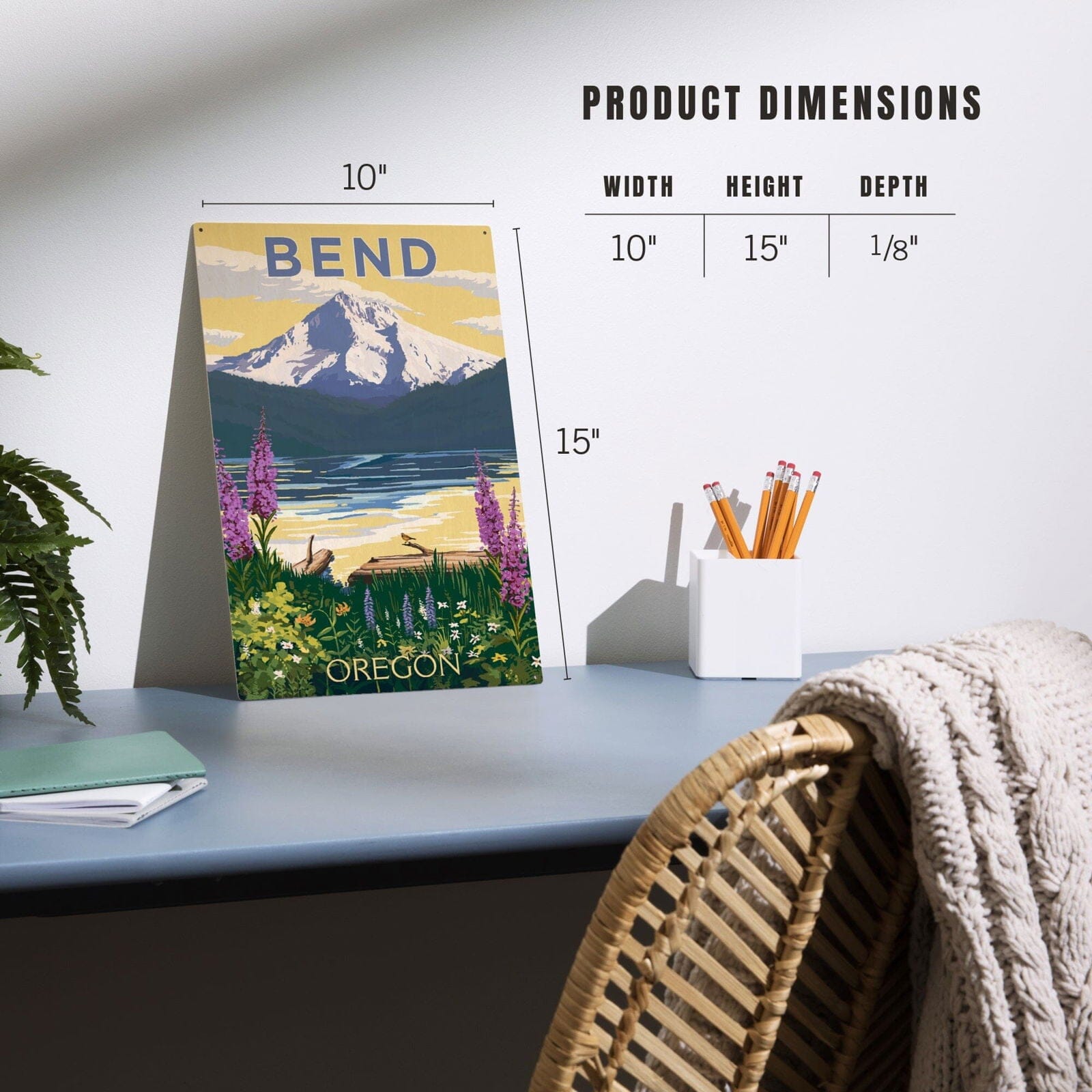 Bend, Oregon, Mountain & Lake Scene, Lantern Press Artwork, Wood Signs and Postcards Wood Lantern Press