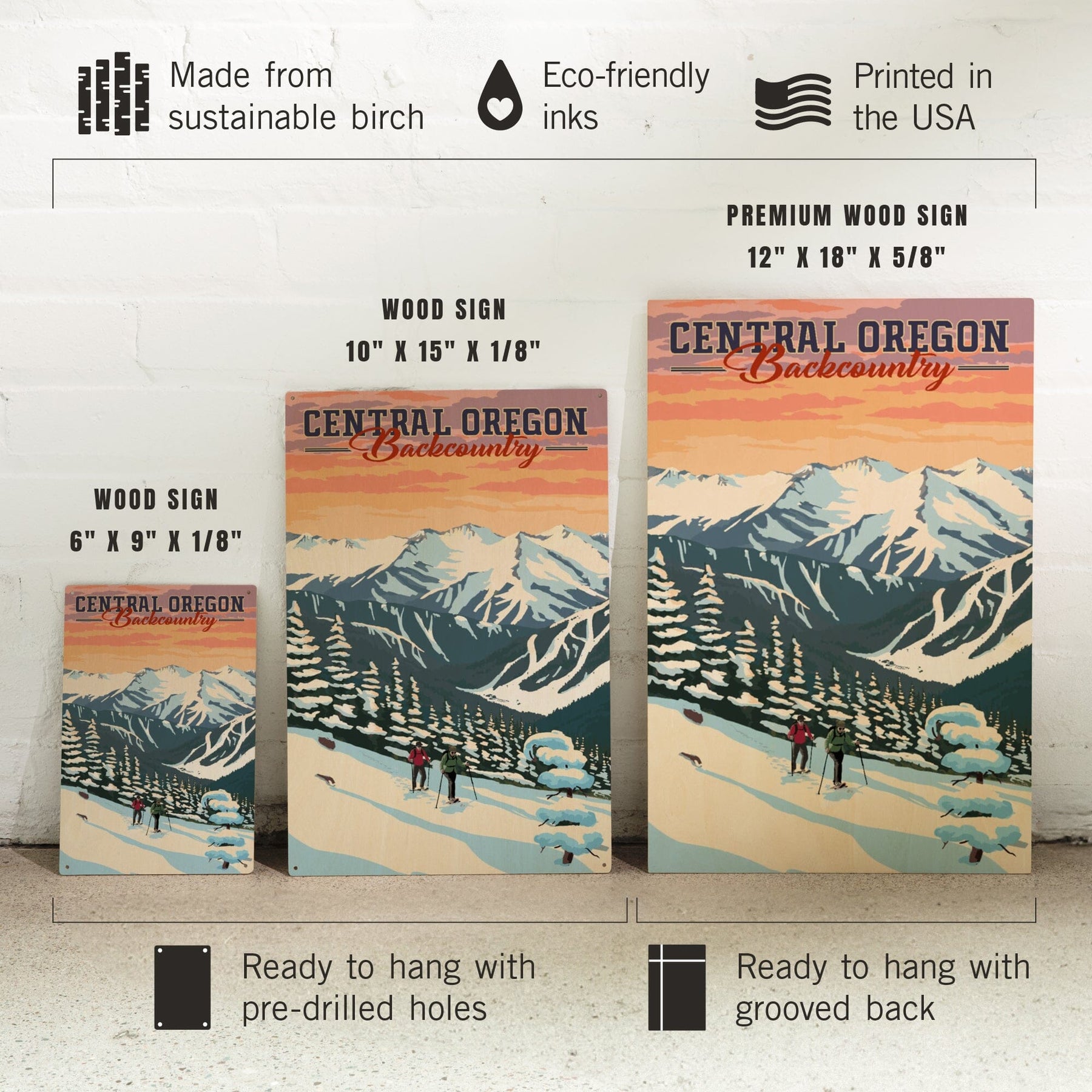 Central Oregon Backcountry, Winter Snowshoers, Lantern Press Artwork, Wood Signs and Postcards