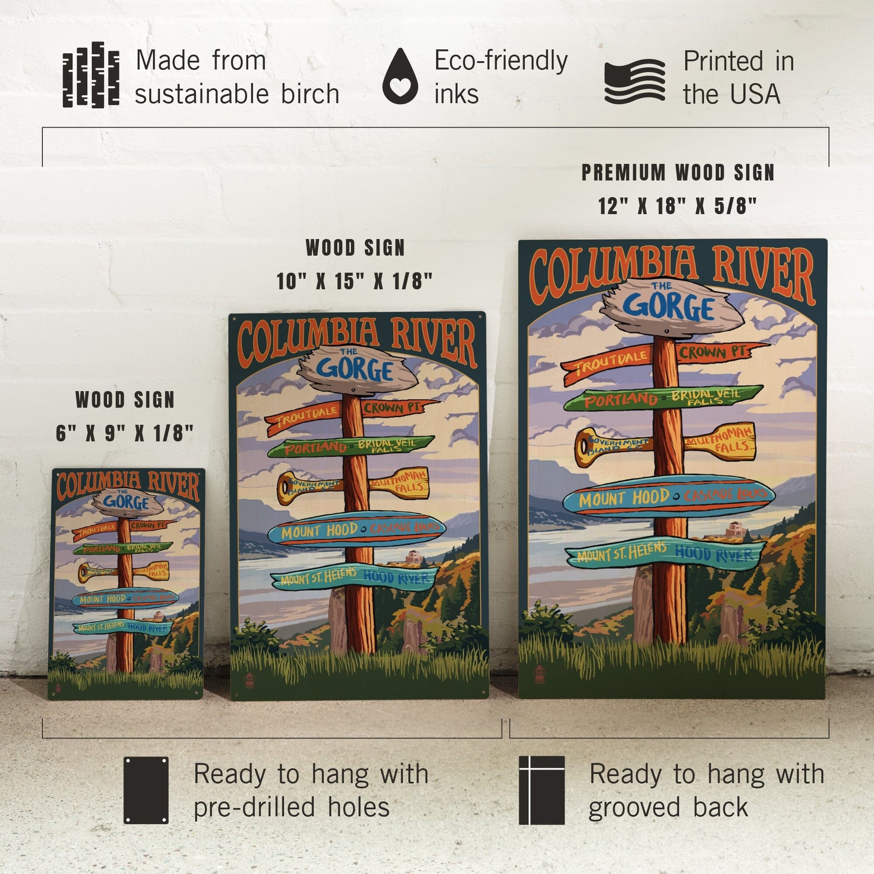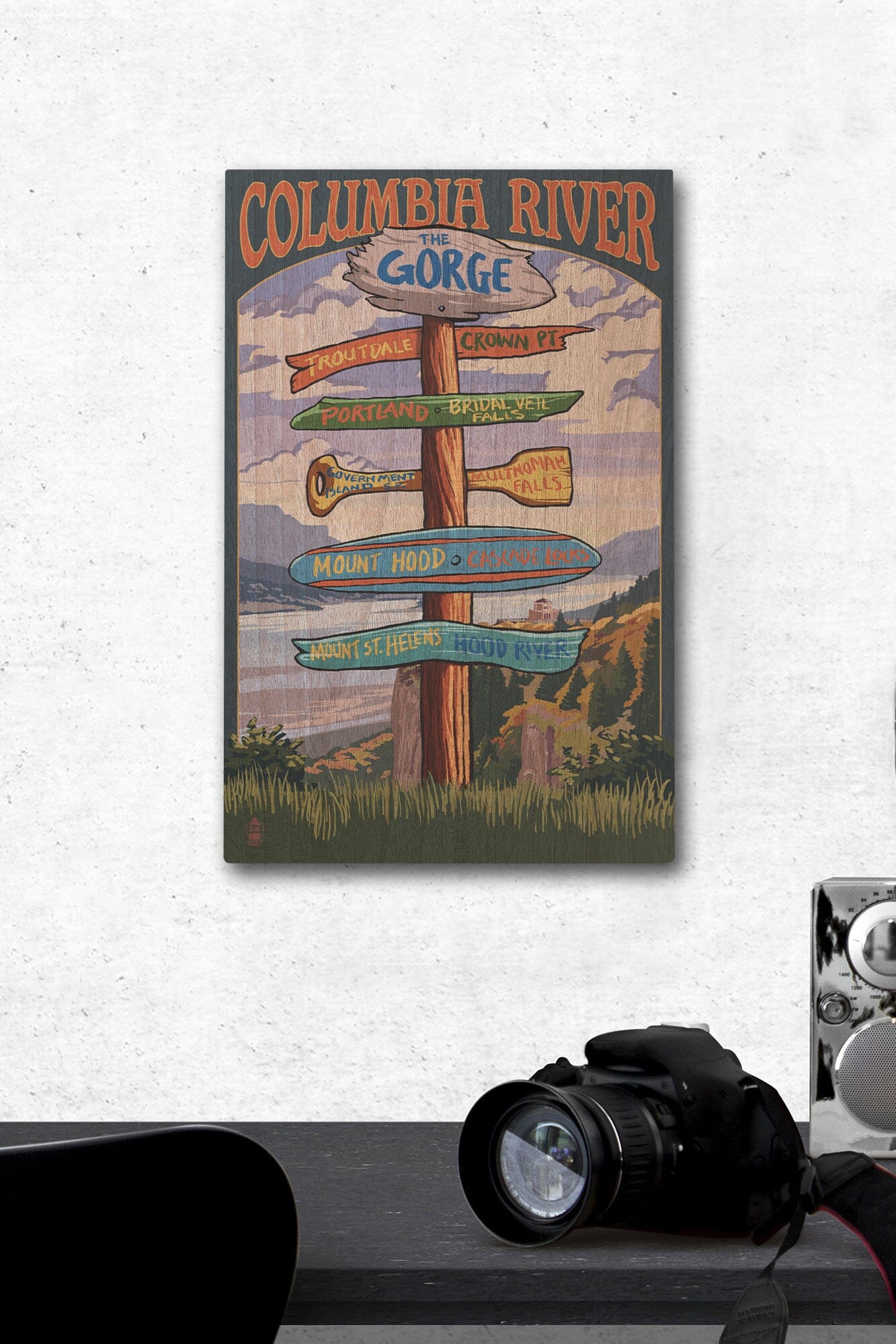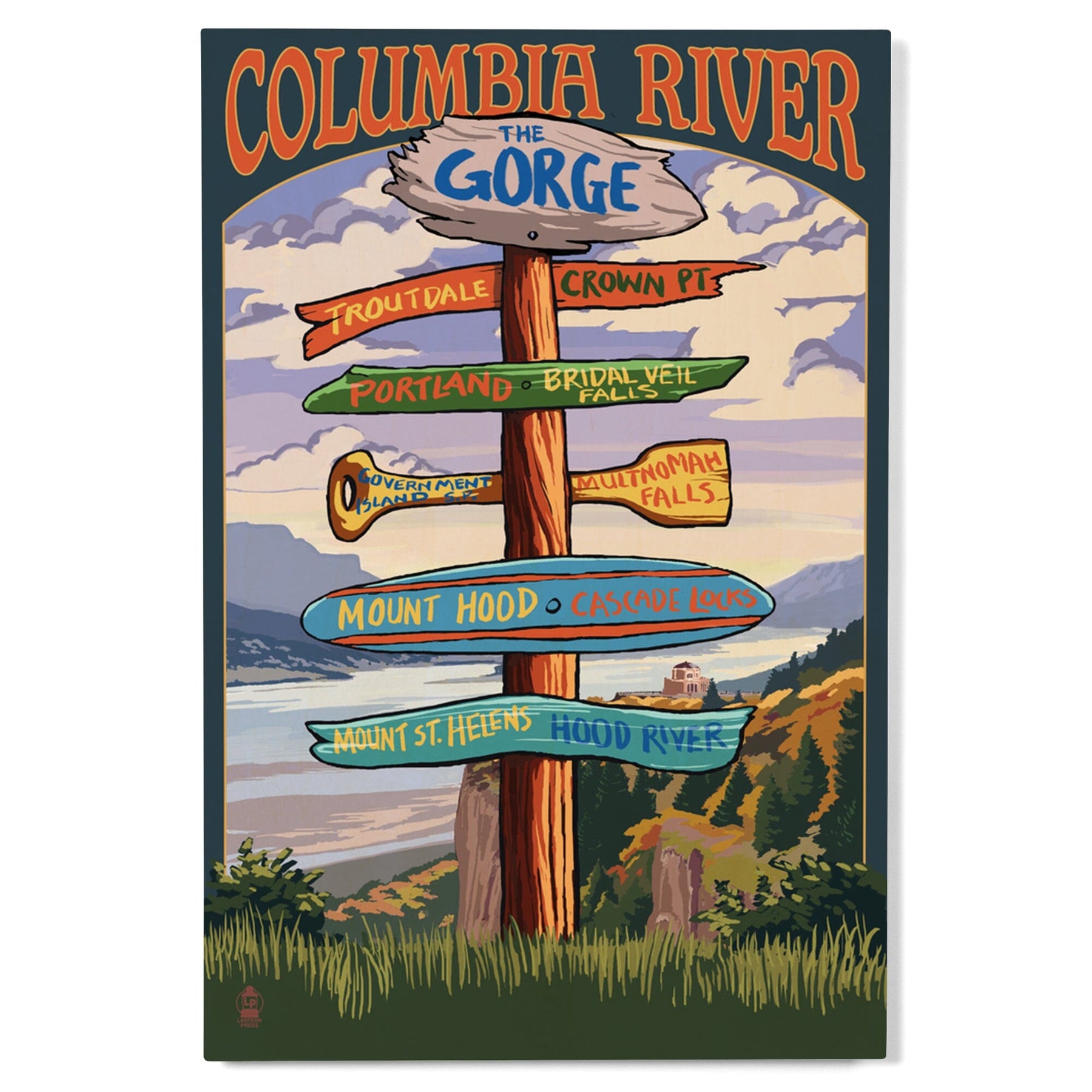 Columbia River Gorge, Oregon, Destinations Sign, Lantern Press Artwork, Wood Signs and Postcards