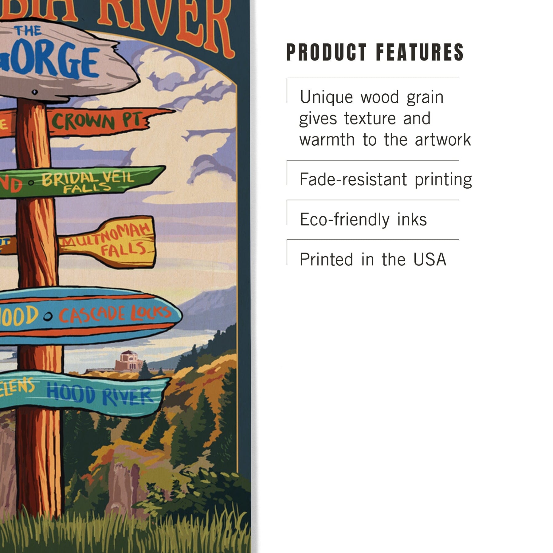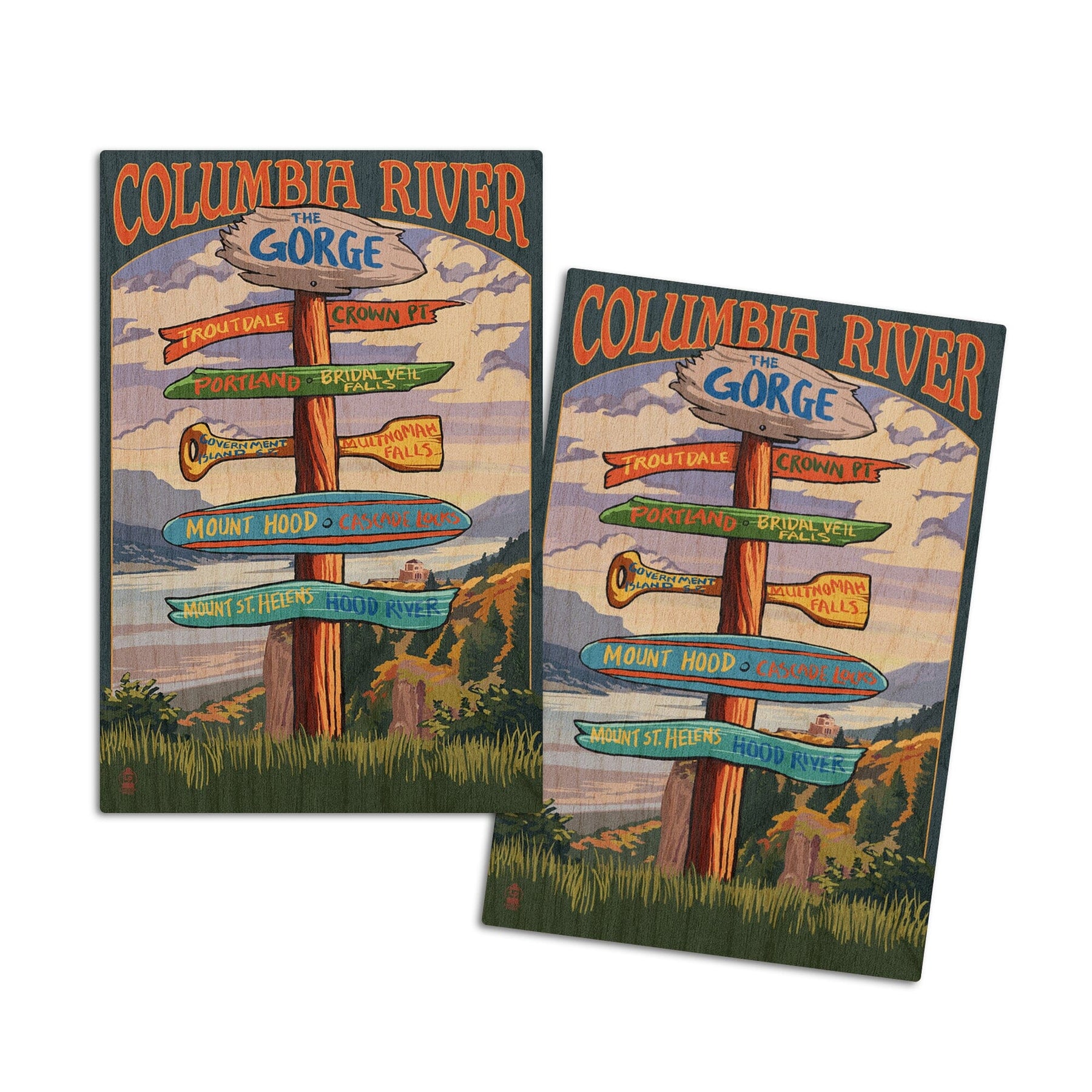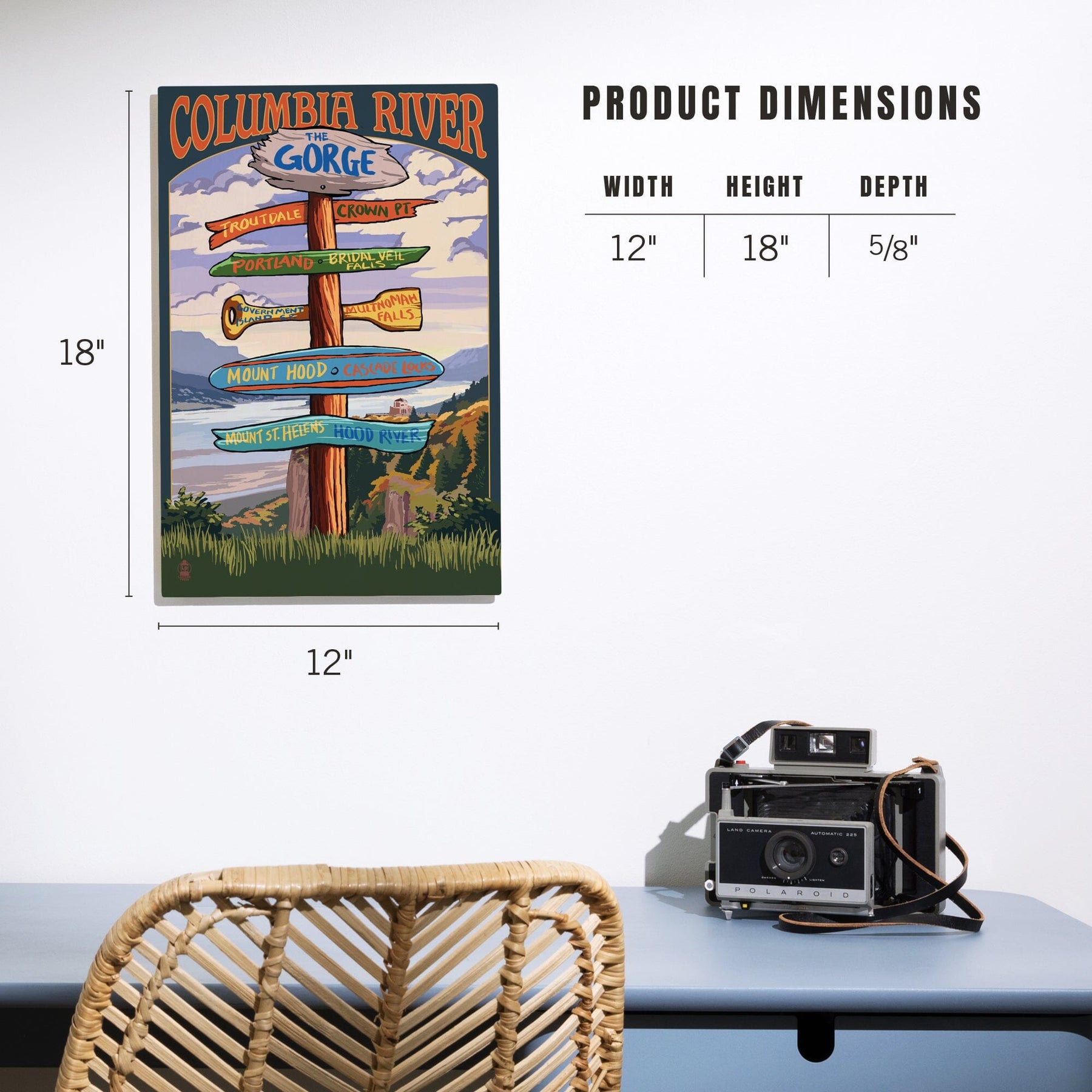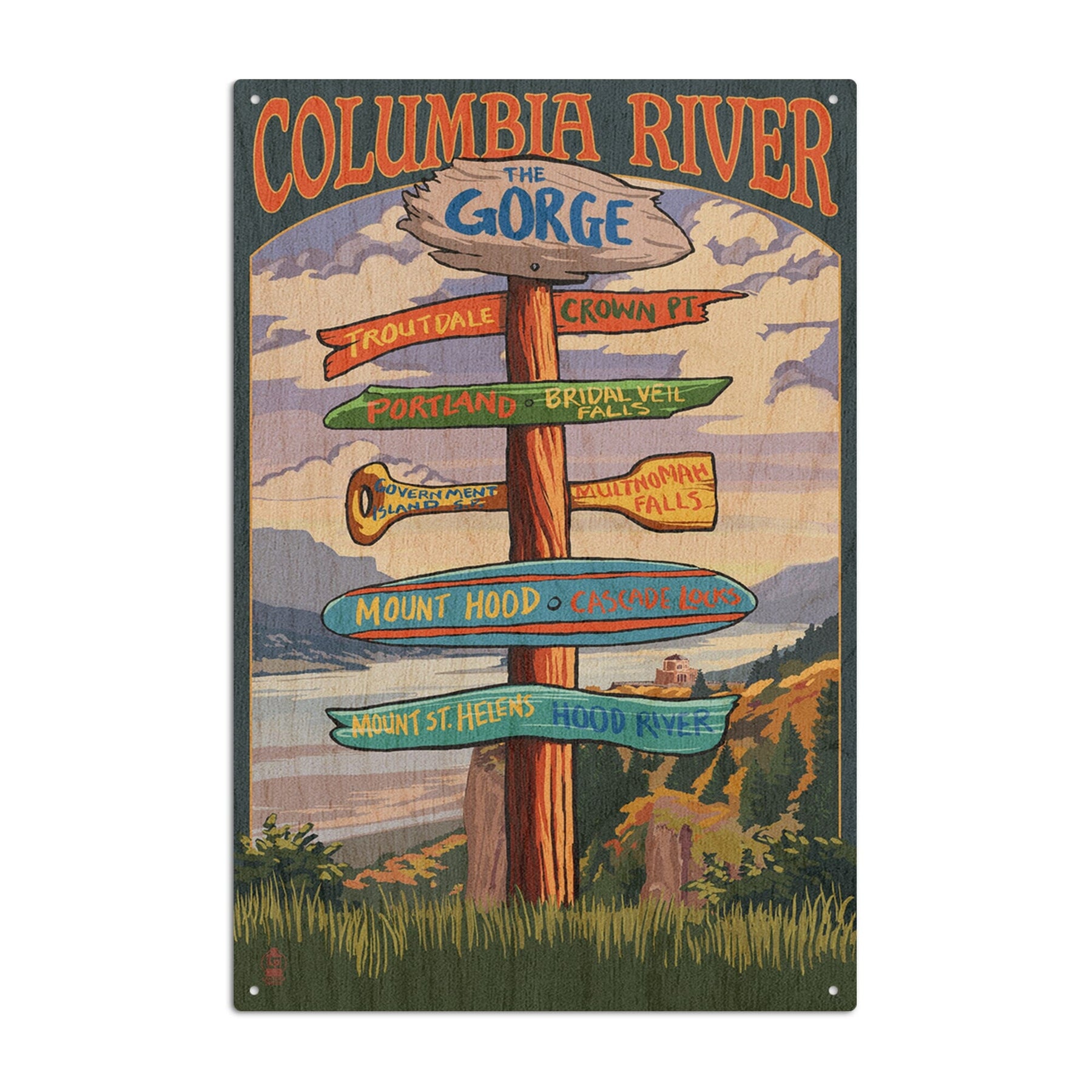 Columbia River Gorge, Oregon, Destinations Sign, Lantern Press Artwork, Wood Signs and Postcards