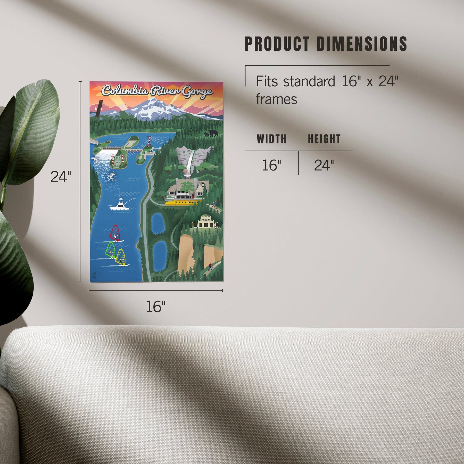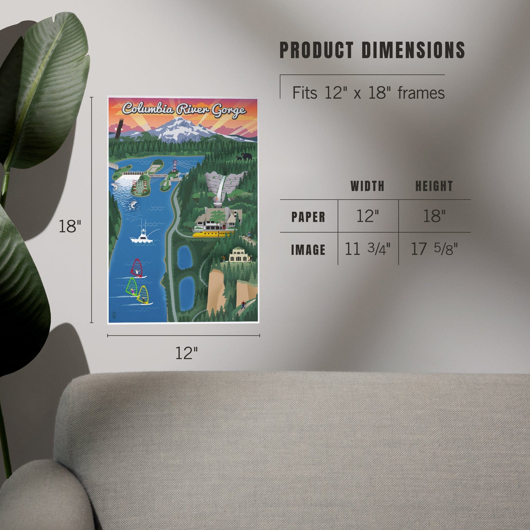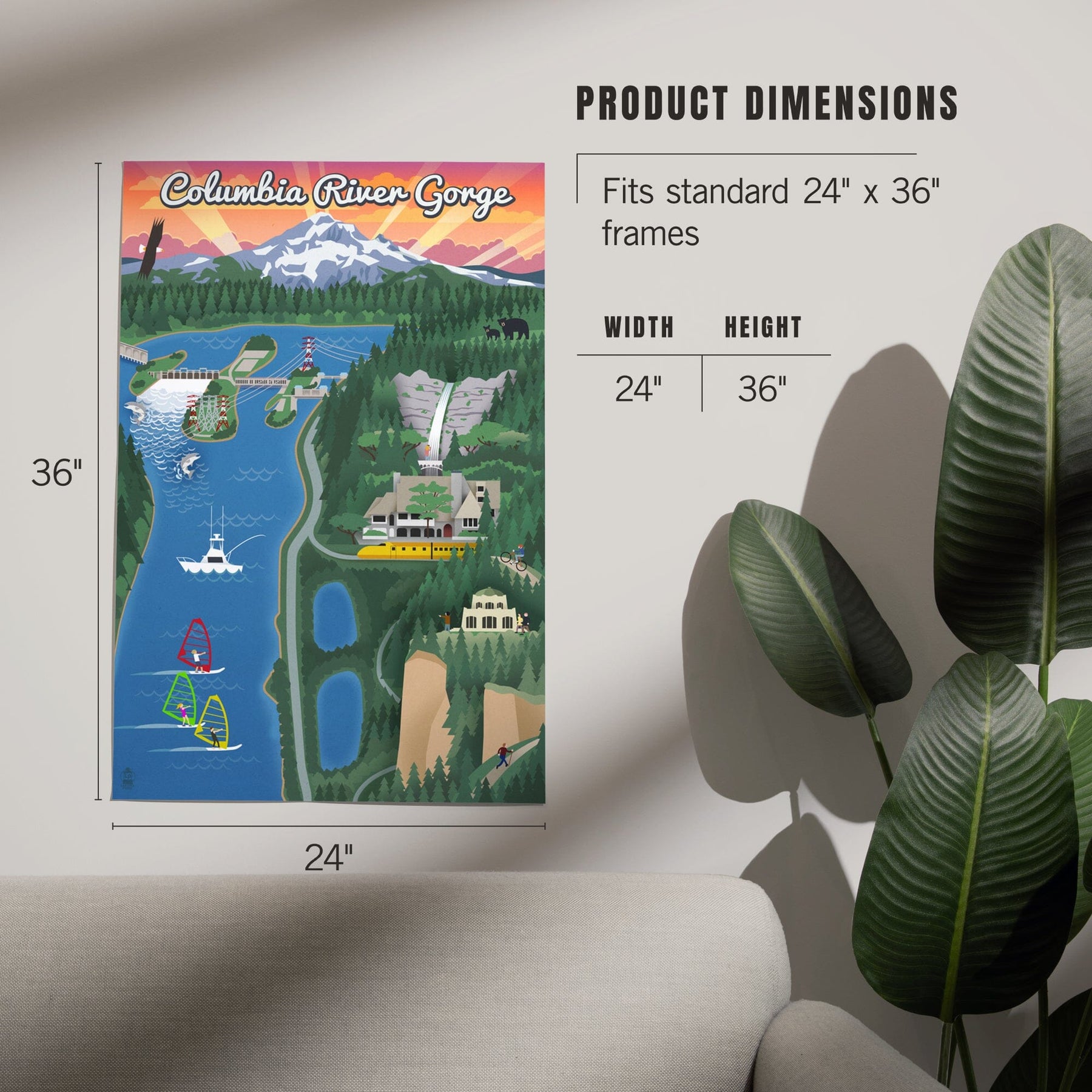 Columbia River Gorge, Oregon, Retro Scene, Art & Giclee Prints - Lantern Press