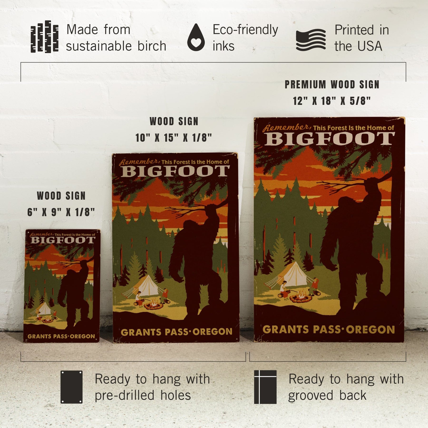 Grants Pass, Oregon, Home of Bigfoot, Lantern Press Artwork, Wood Signs and Postcards