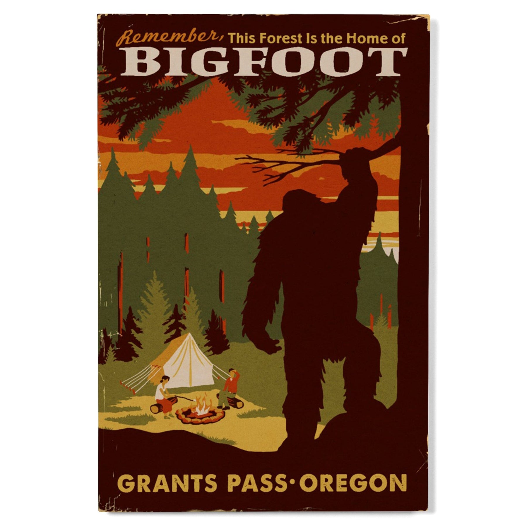 Grants Pass, Oregon, Home of Bigfoot, Lantern Press Artwork, Wood Signs and Postcards - Lantern Press