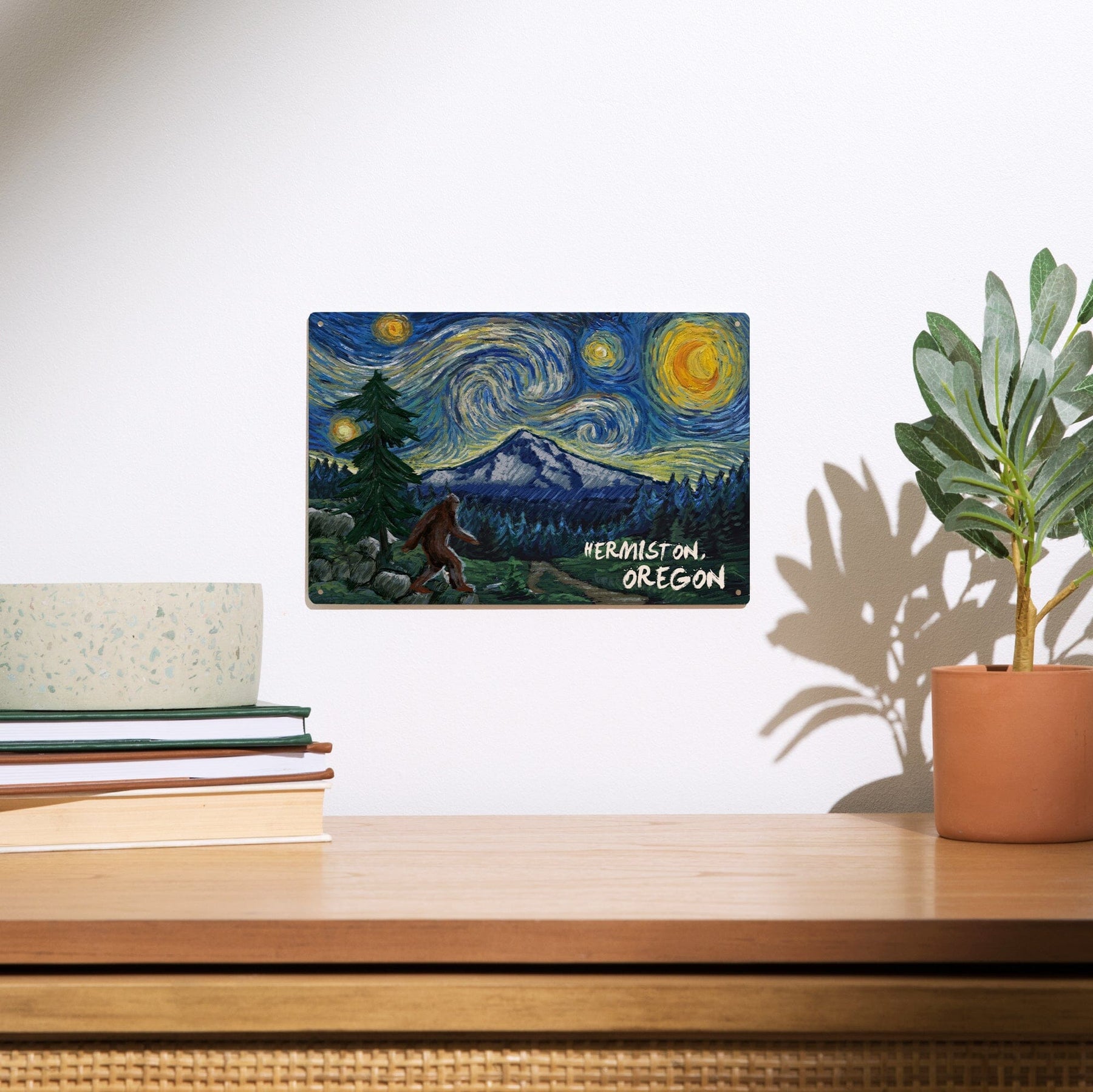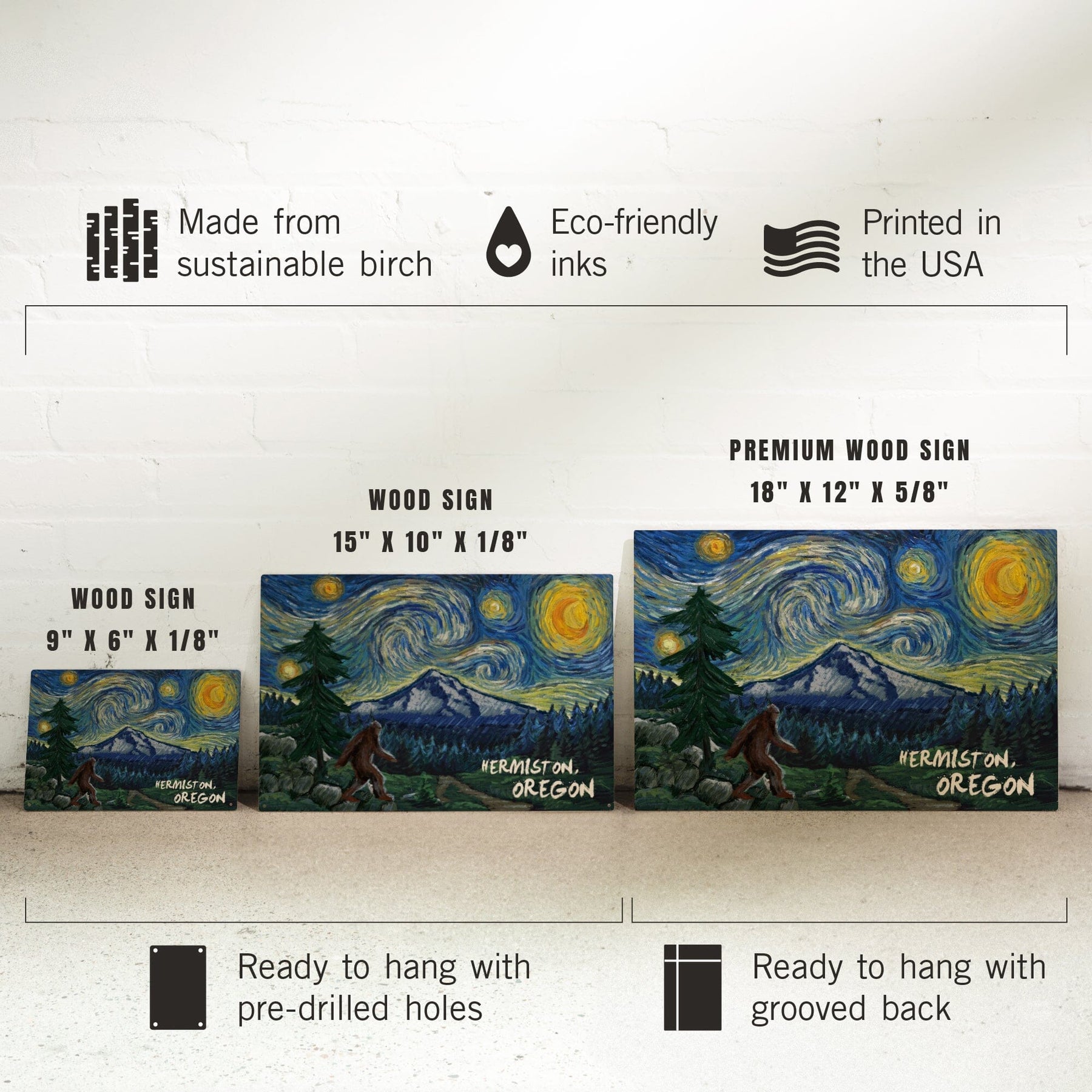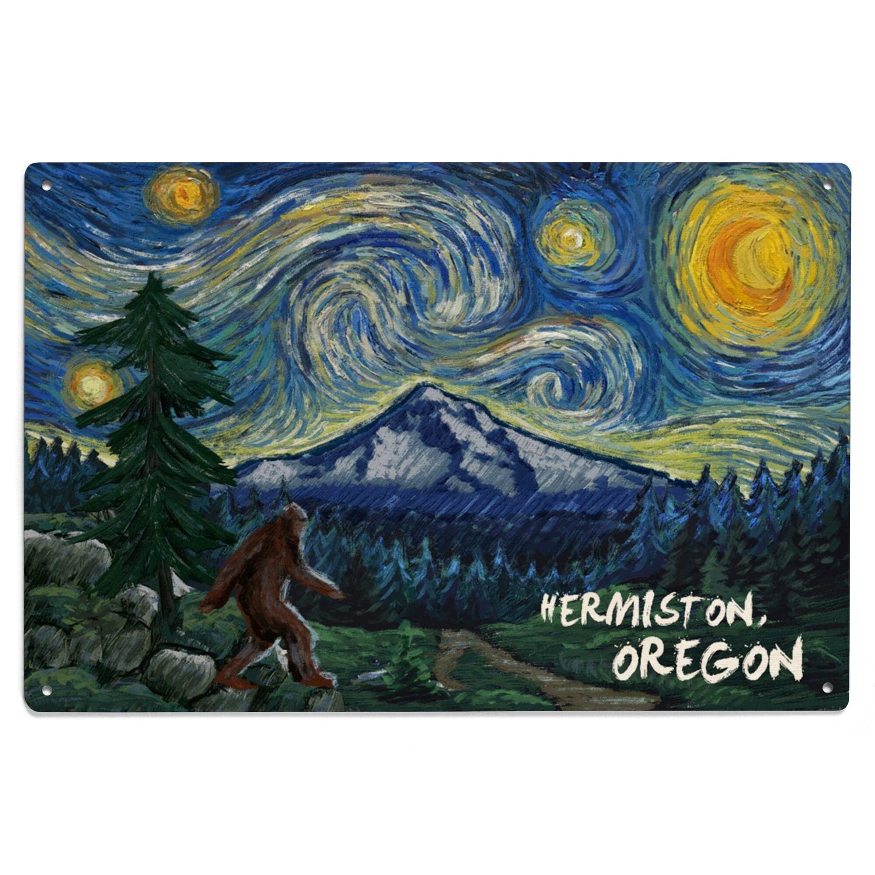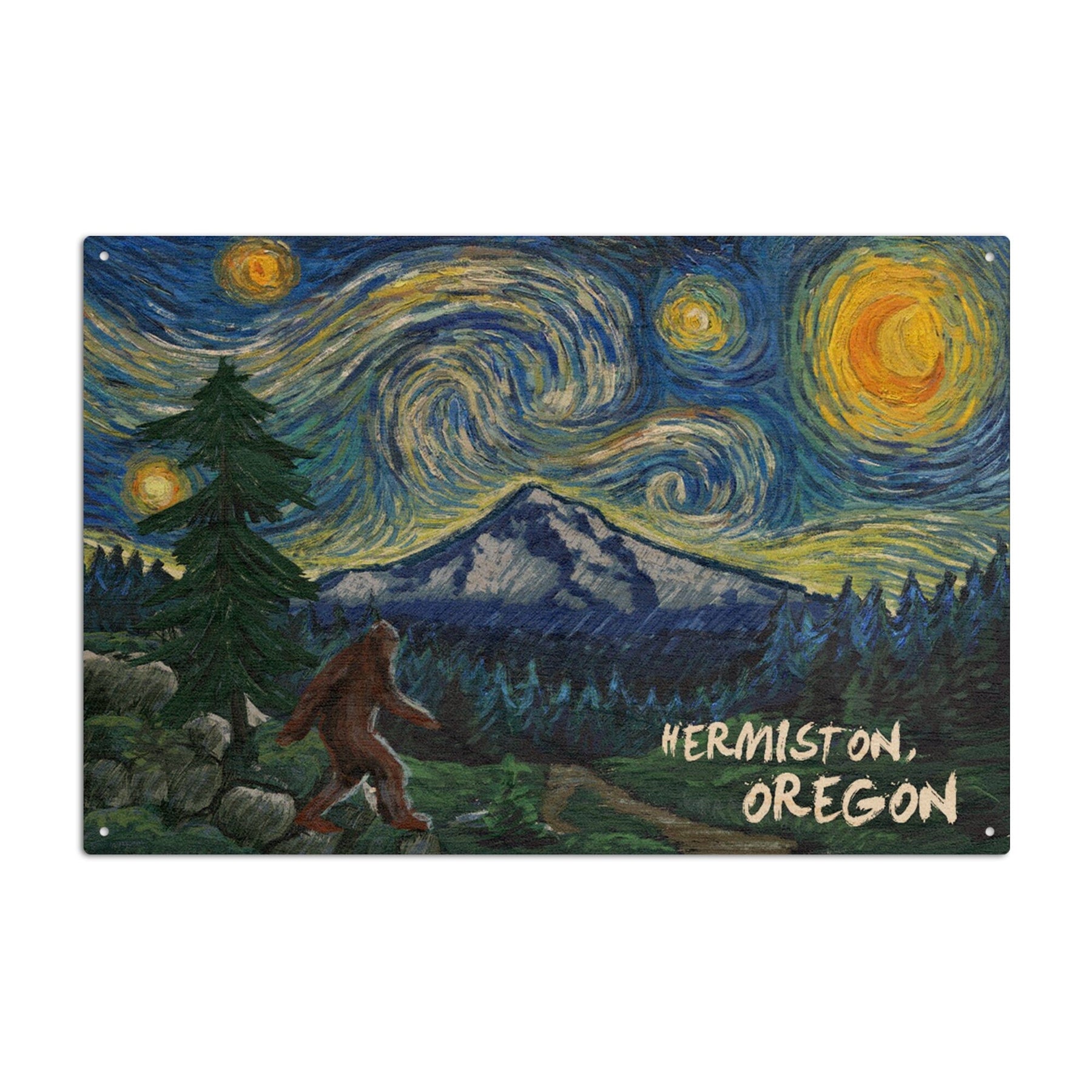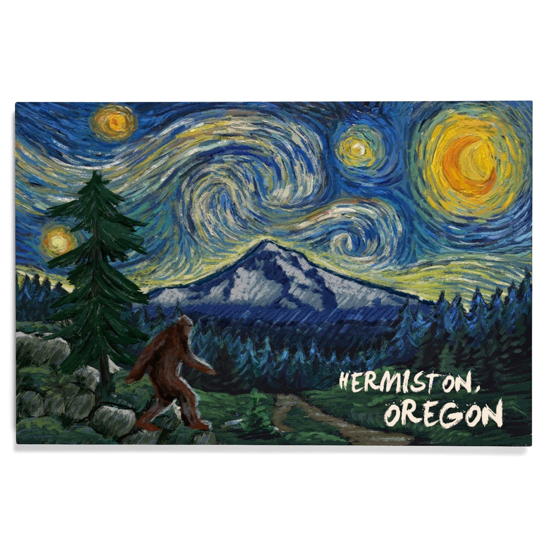 Hermiston, Oregon, Bigfoot, Starry Night, Lantern Press Artwork, Wood Signs and Postcards