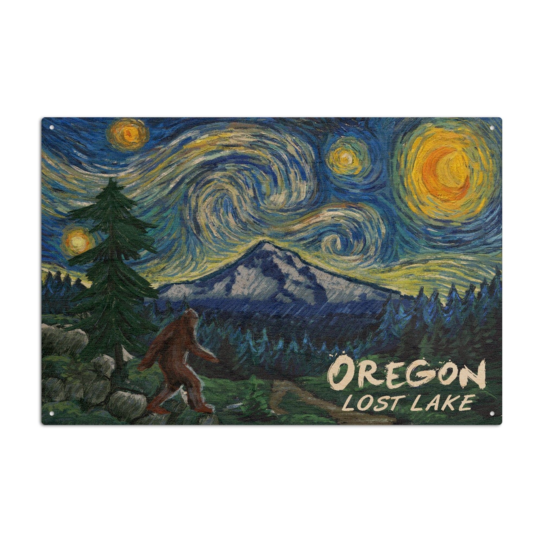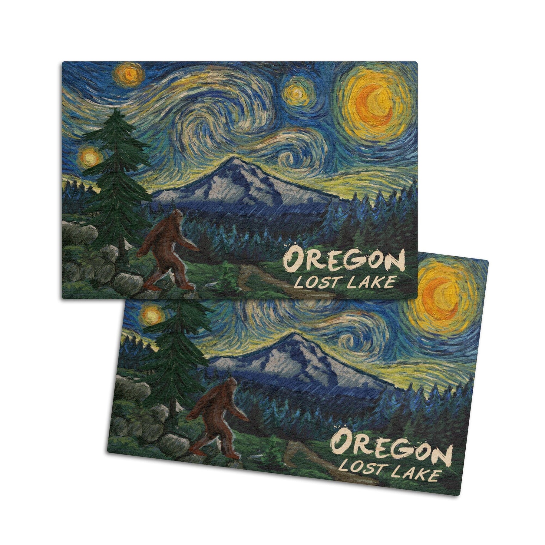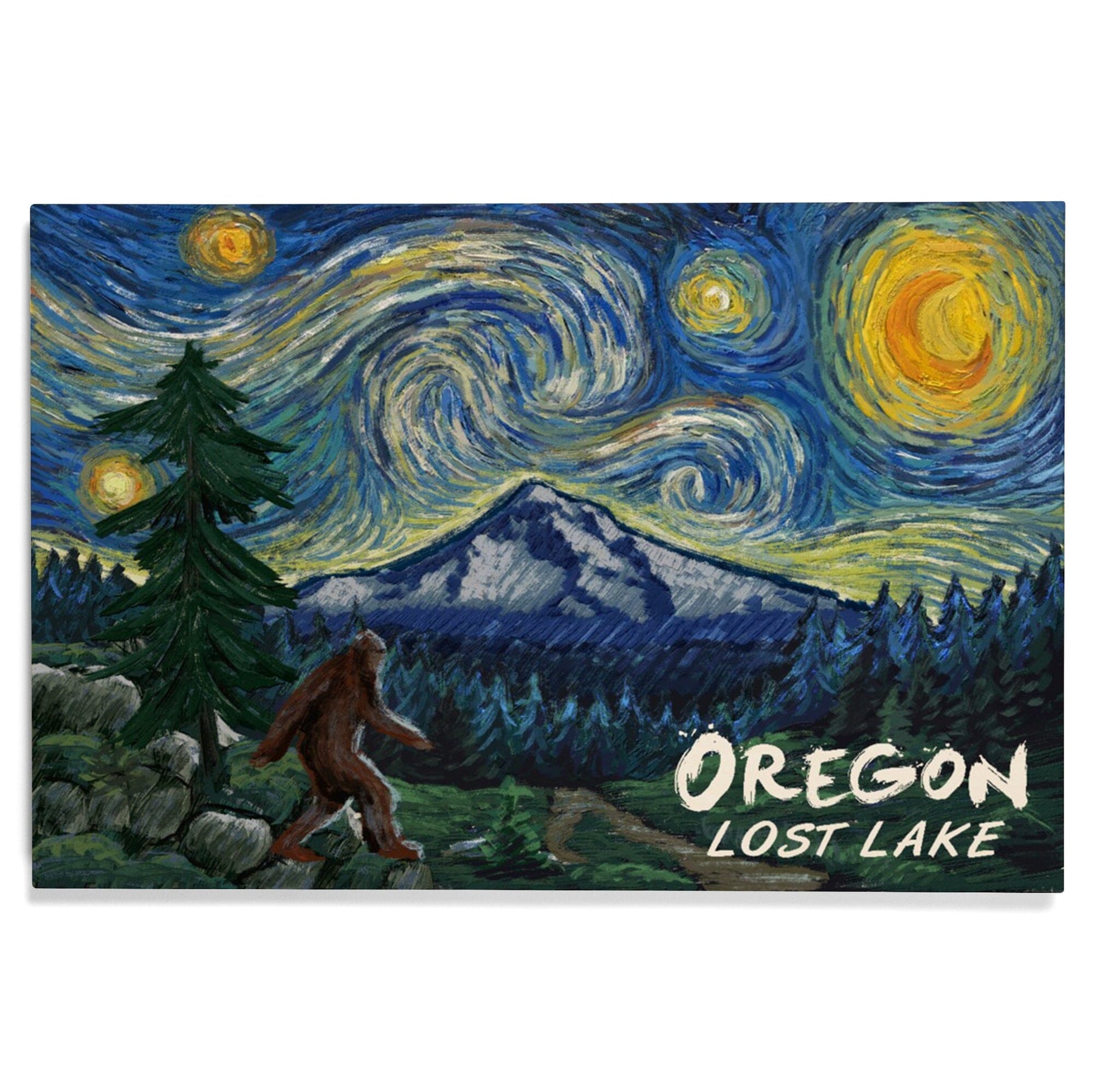 Lost Lake, Oregon, Bigfoot, Mt Hood, Starry Night, Lantern Press Artwork, Wood Signs and Postcards