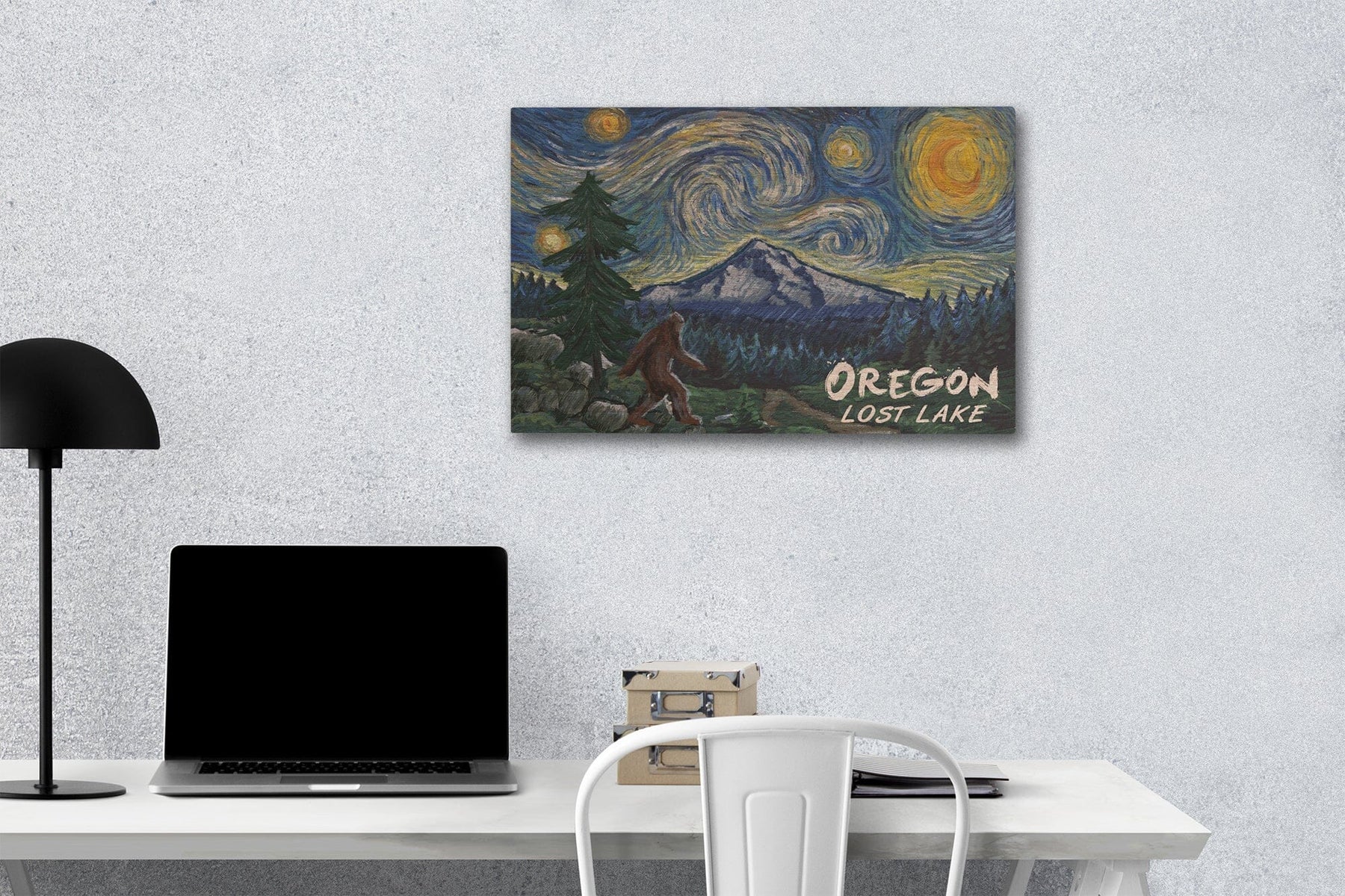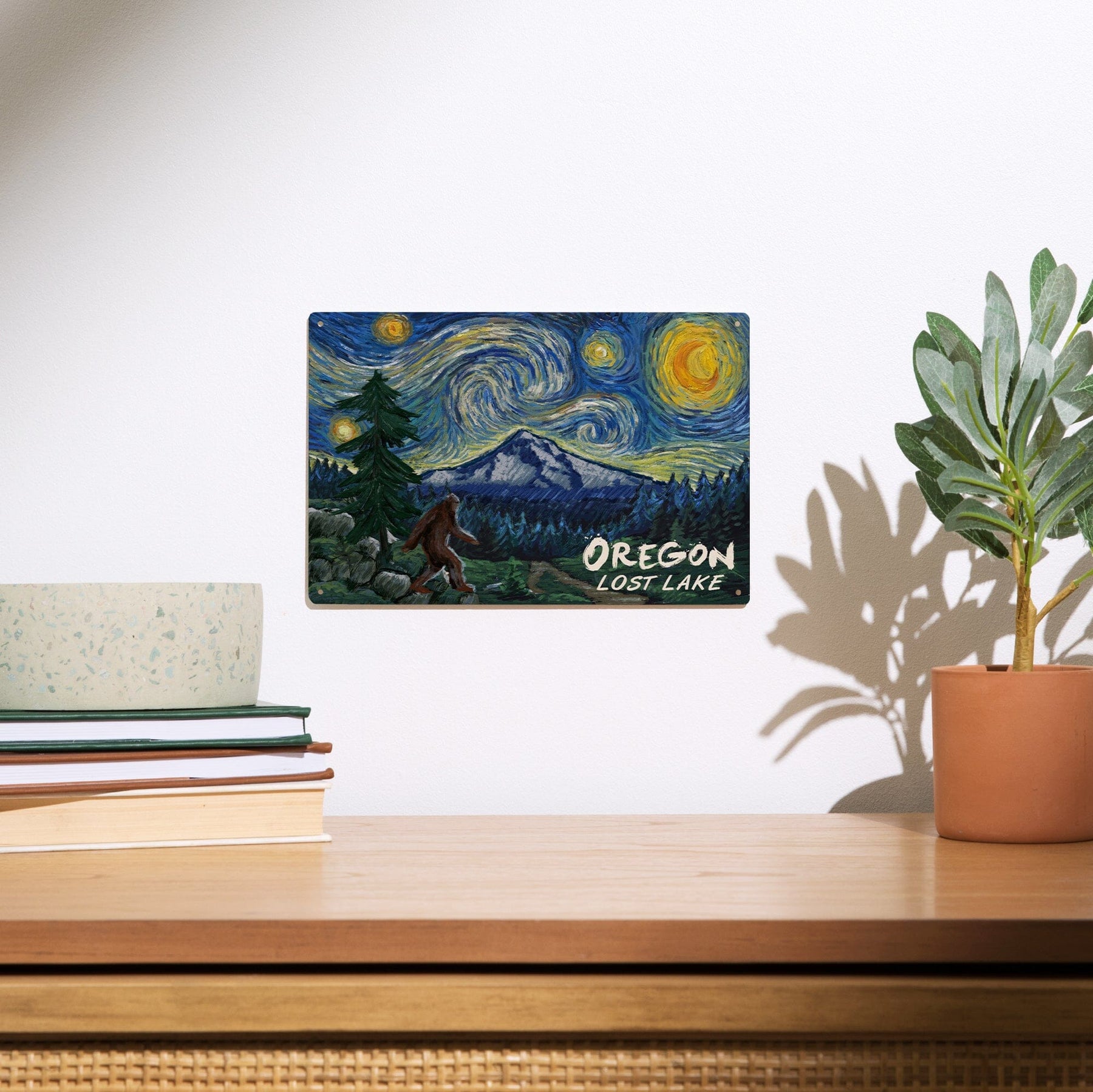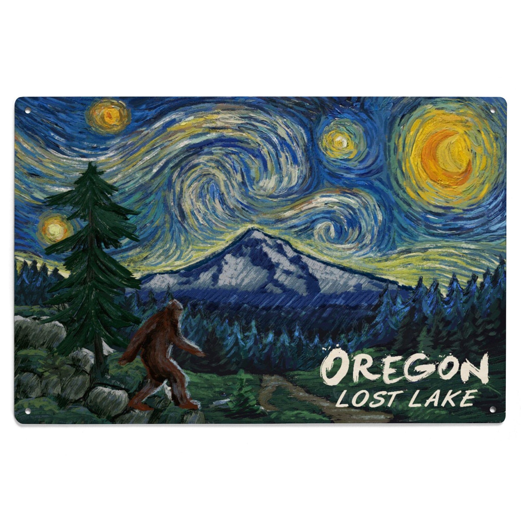 Lost Lake, Oregon, Bigfoot, Mt Hood, Starry Night, Lantern Press Artwork, Wood Signs and Postcards