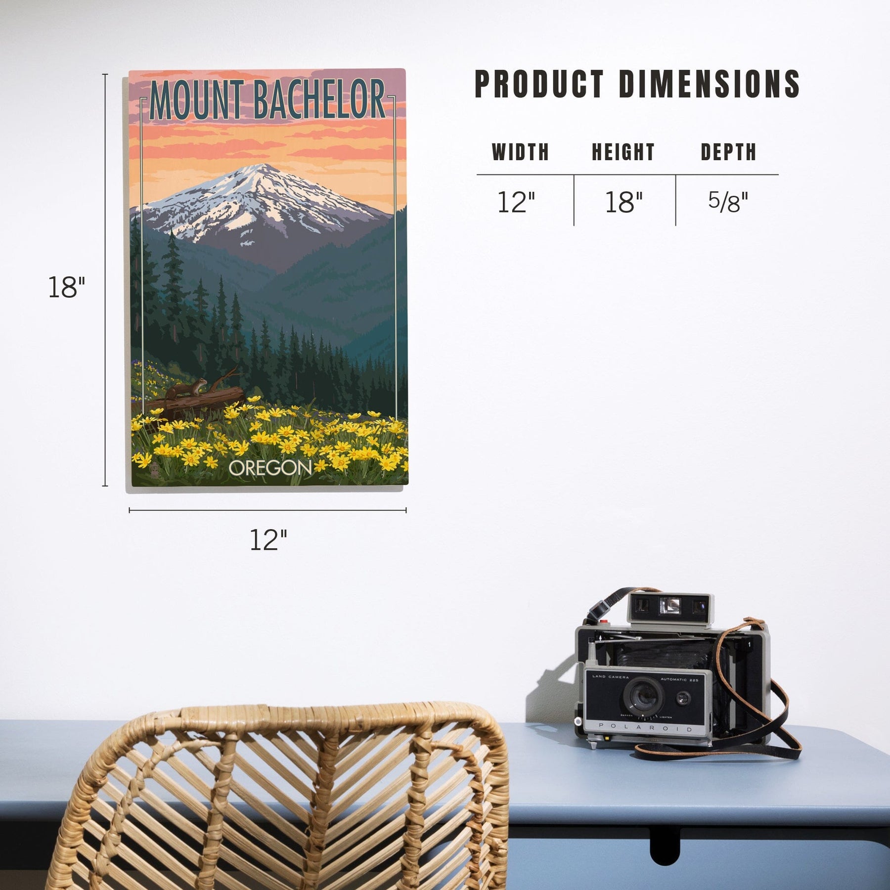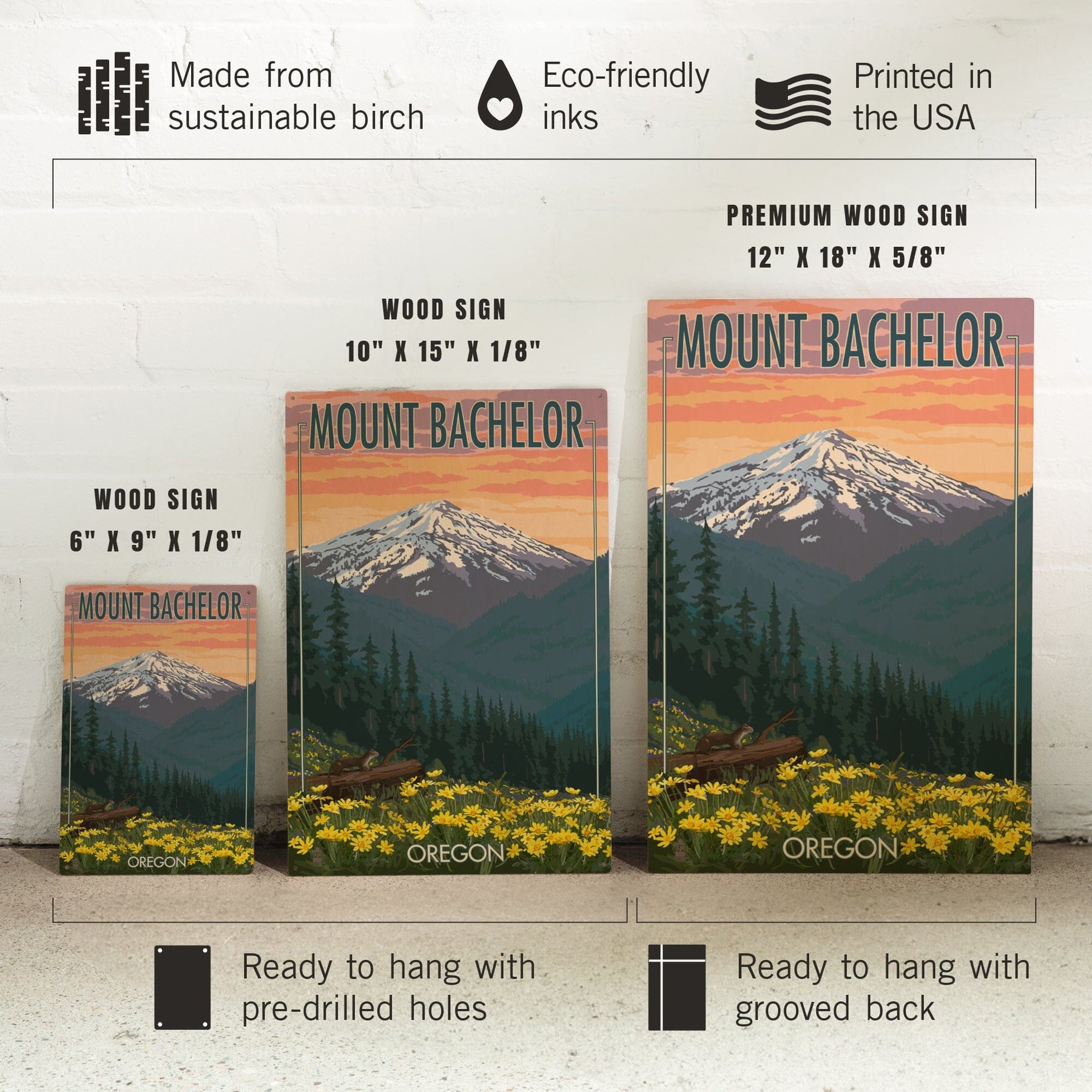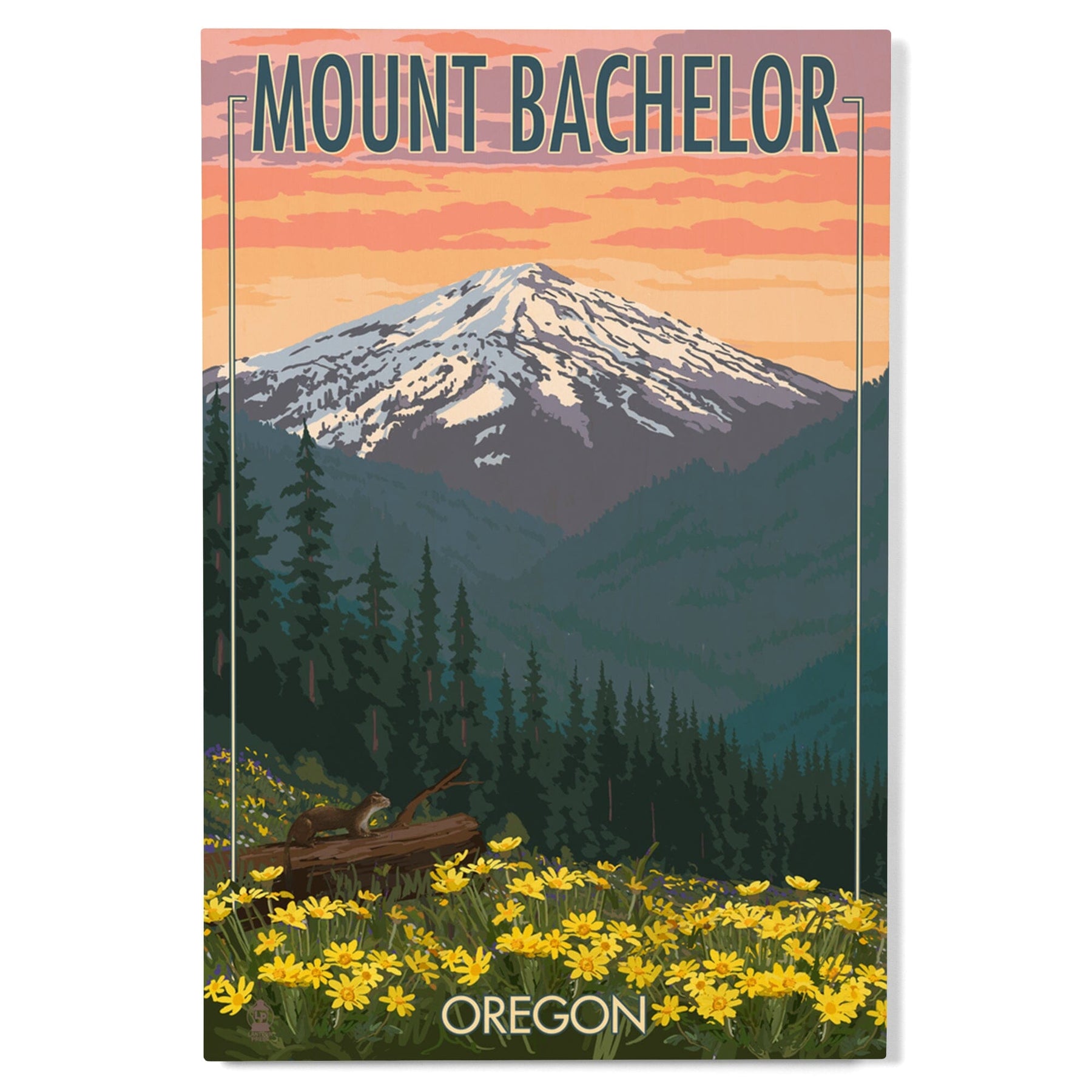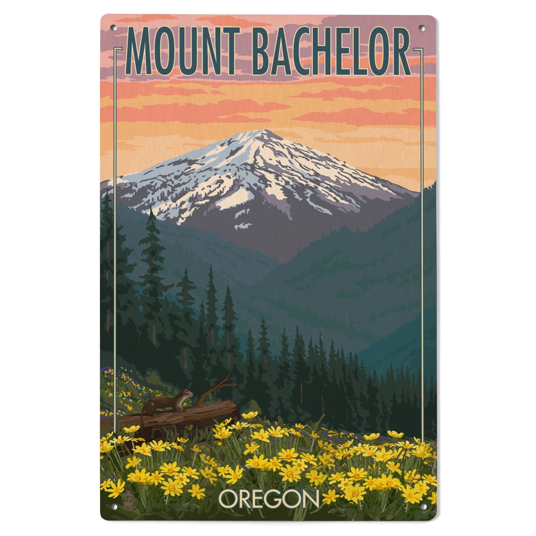 Mt. Bachelor, Oregon, Pine Martin and Flowers, Lantern Press Artwork, Wood Signs and Postcards