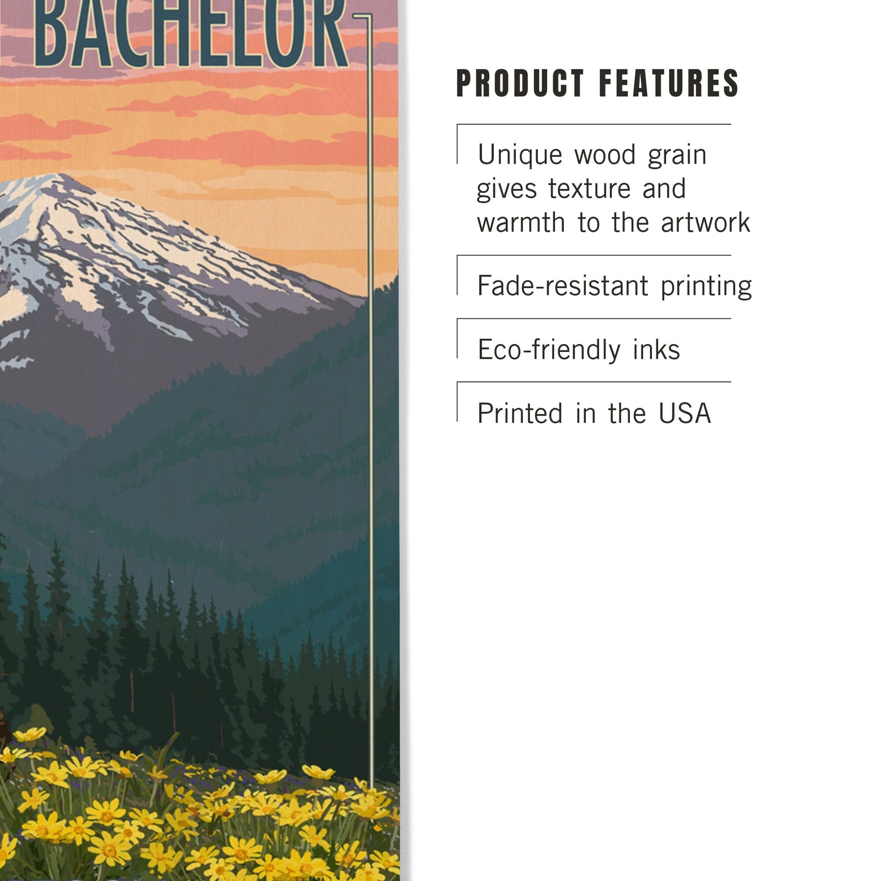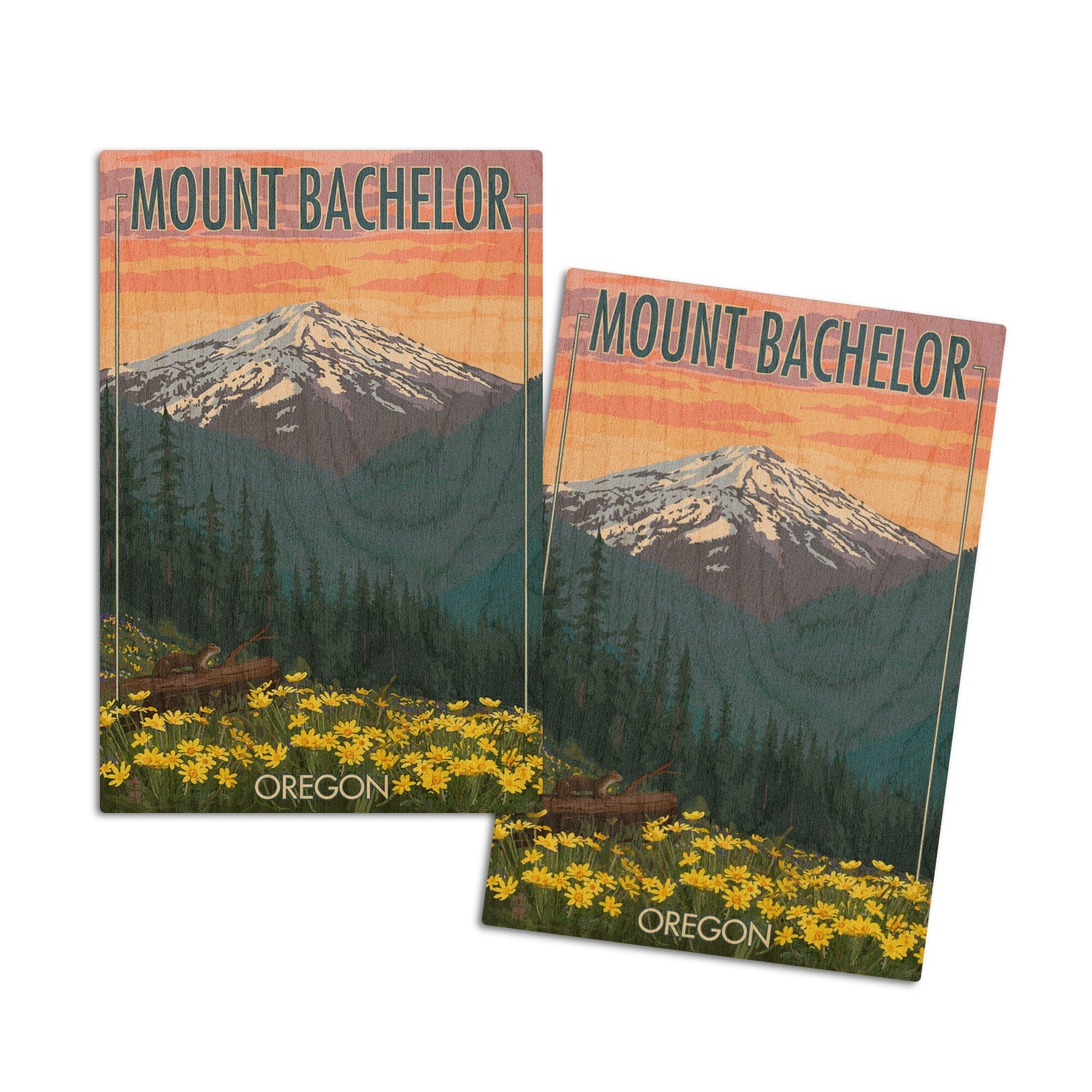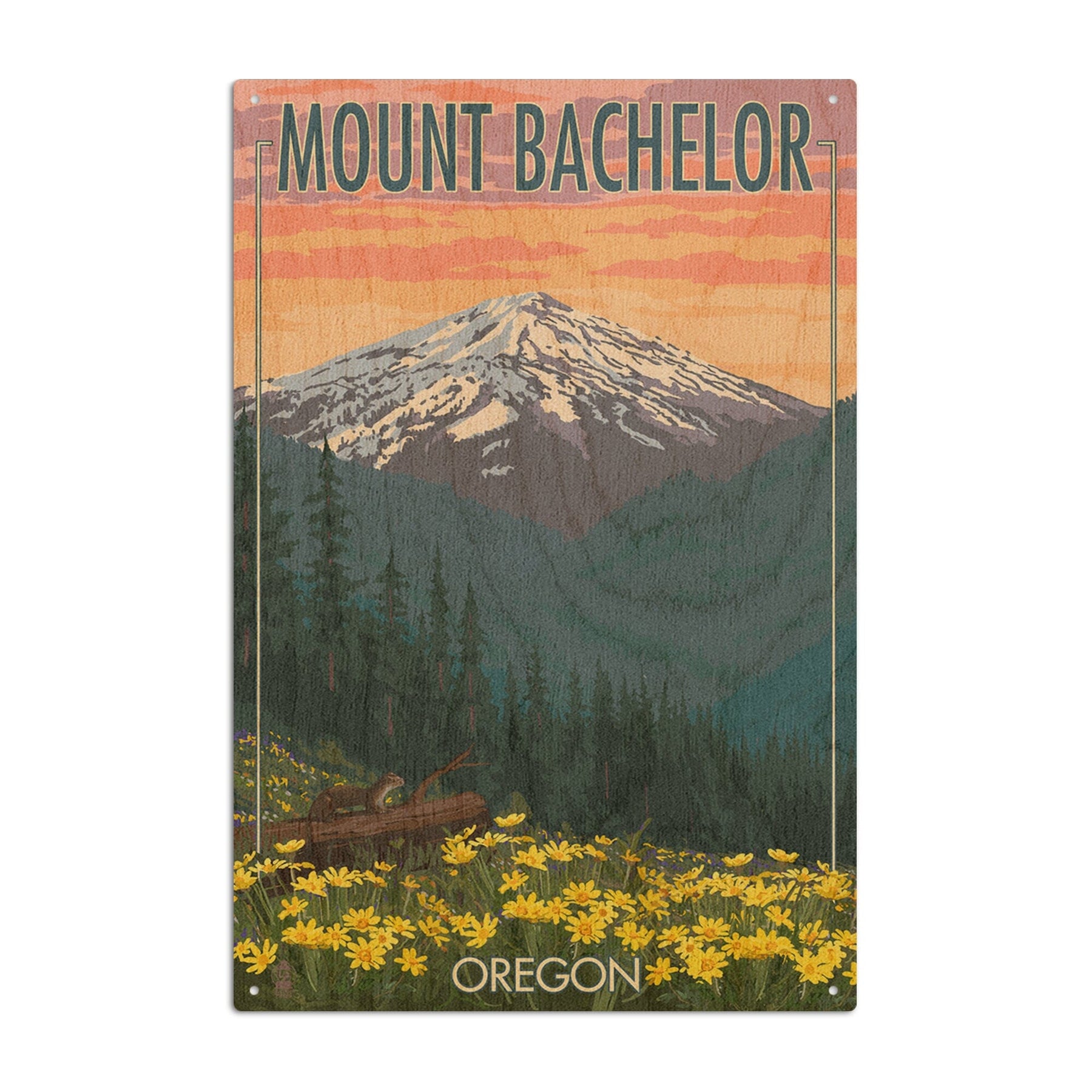 Mt. Bachelor, Oregon, Pine Martin and Flowers, Lantern Press Artwork, Wood Signs and Postcards Wood Lantern Press