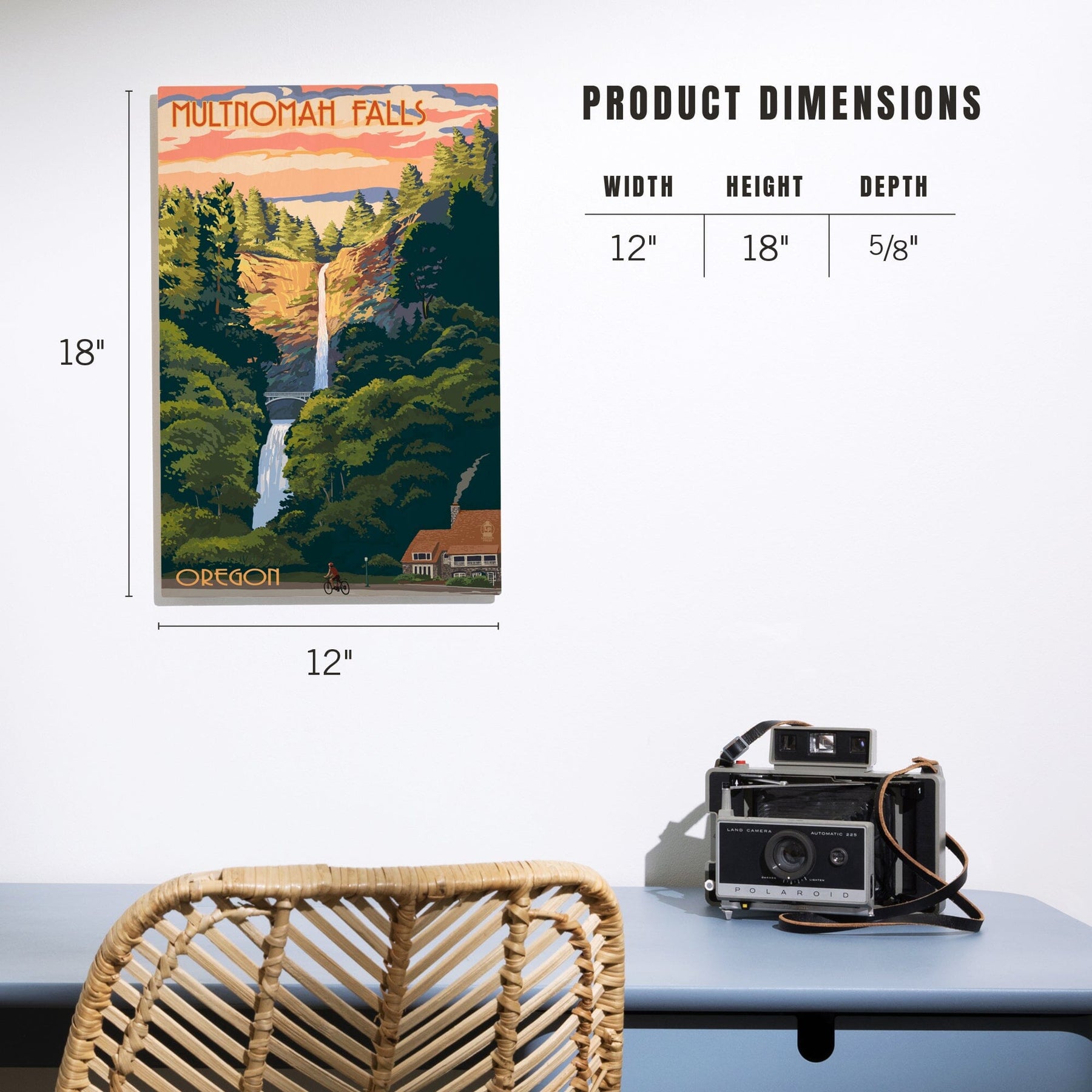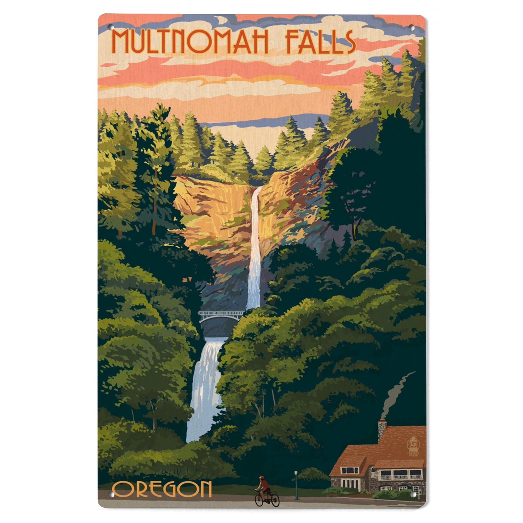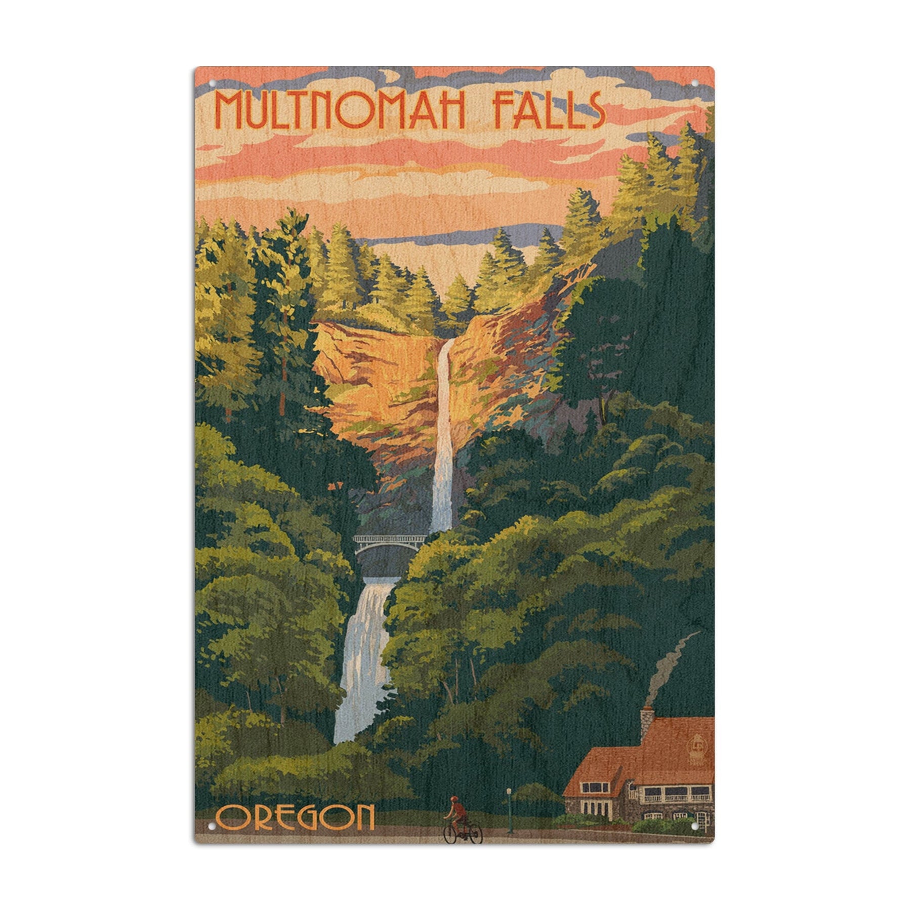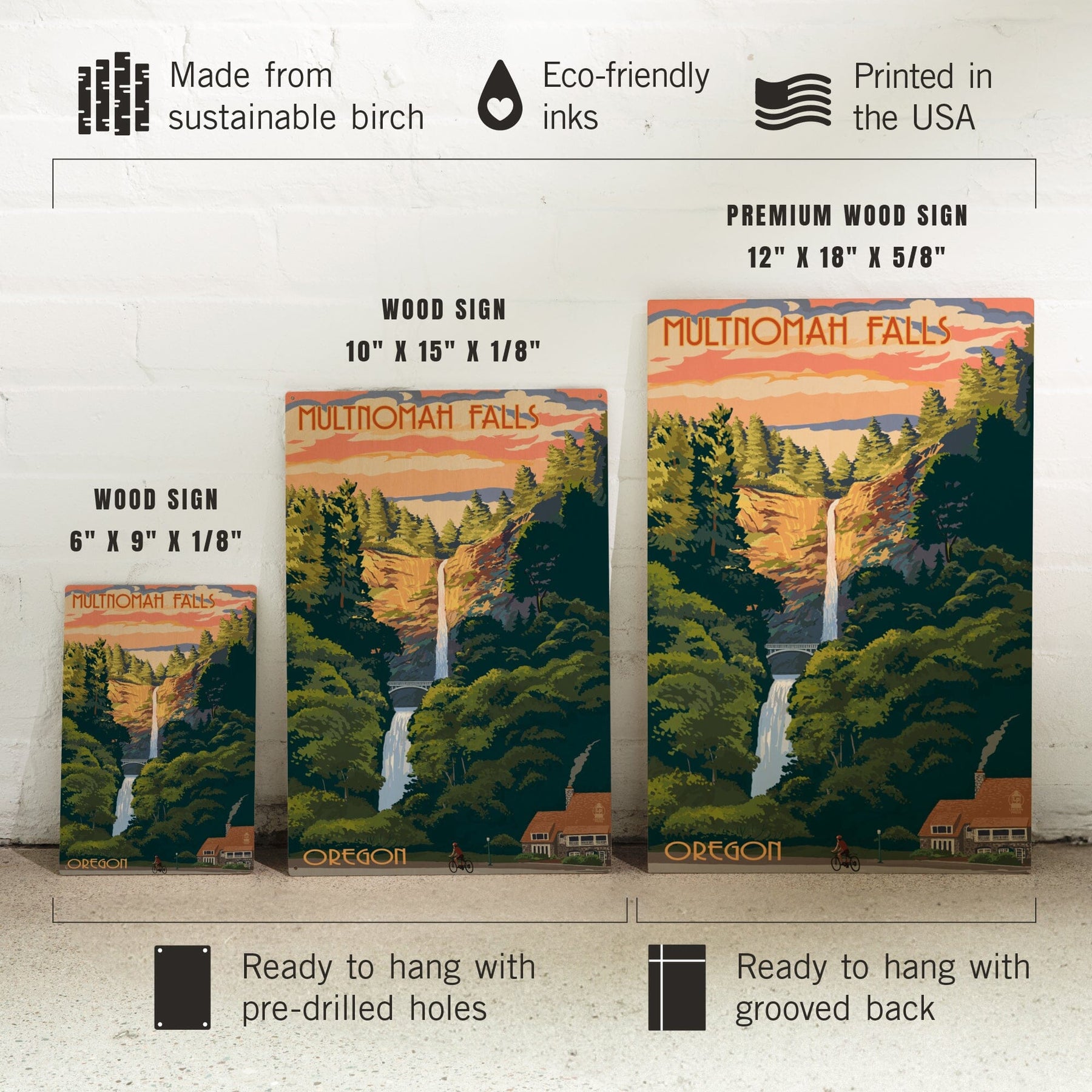 Multnomah Falls, Oregon, Sunset, Lantern Press Artwork, Wood Signs and Postcards