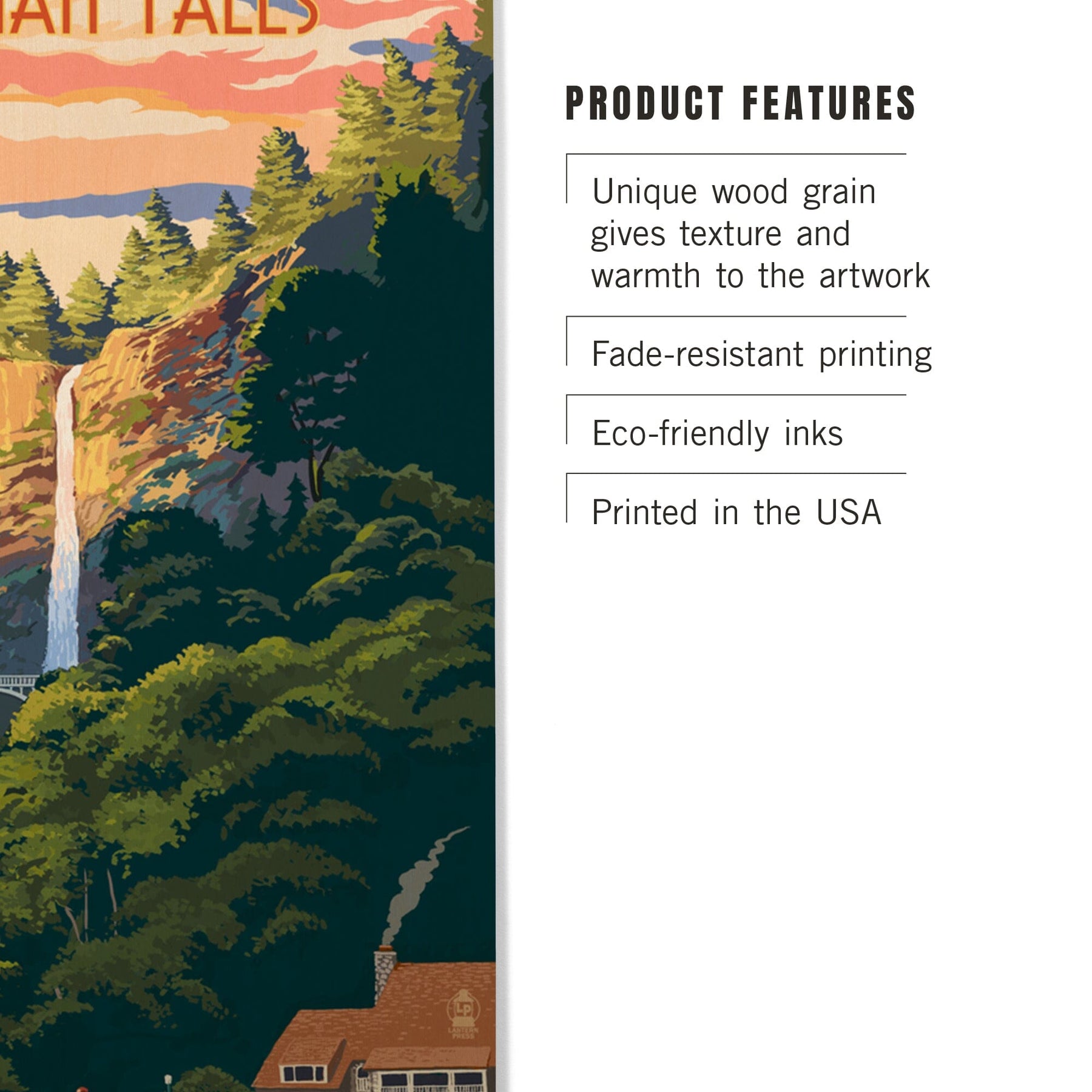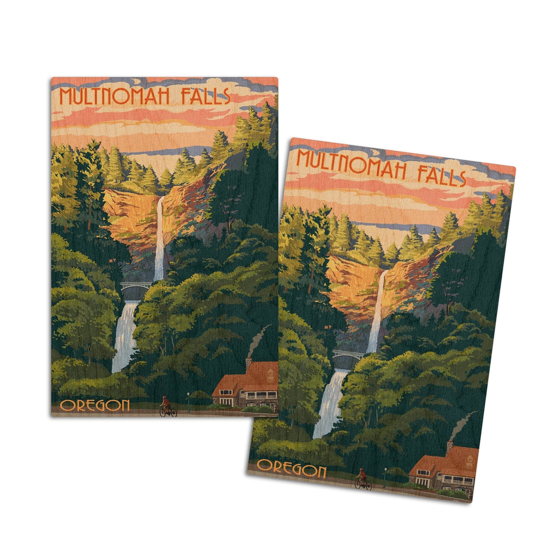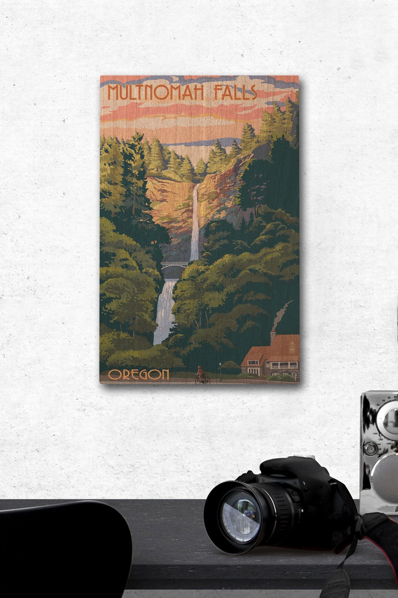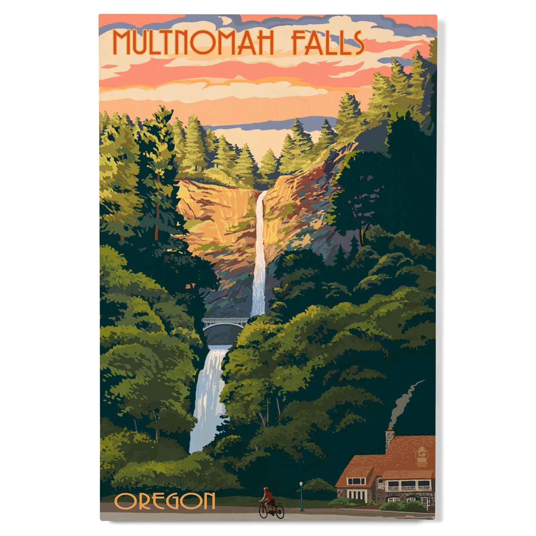 Multnomah Falls, Oregon, Sunset, Lantern Press Artwork, Wood Signs and Postcards Wood Lantern Press
