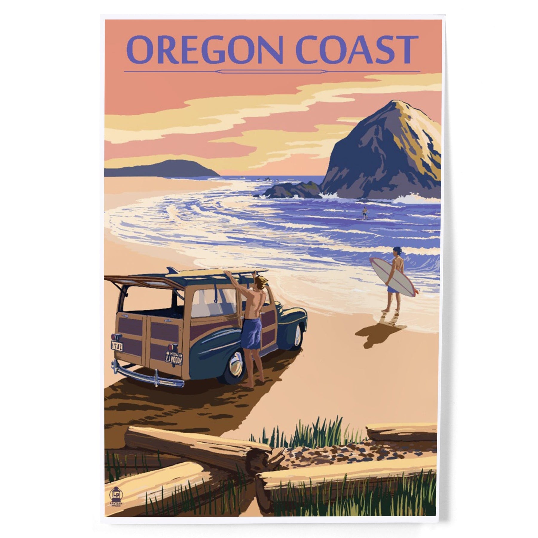 Oregon Coast, Woody with Haystack Rock, Art & Giclee Prints Art Lantern Press