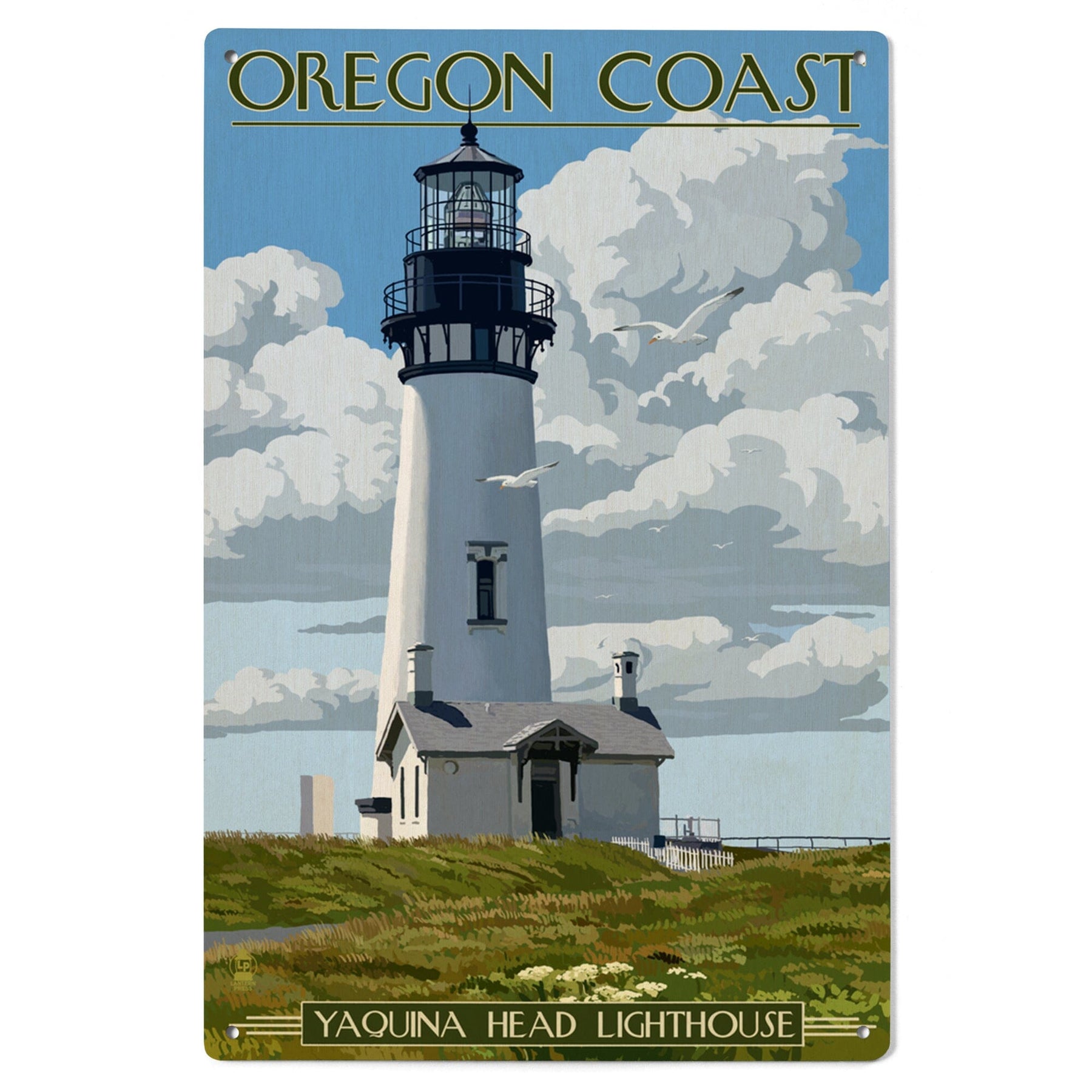 Oregon Coast, Yaquina Head Lighthouse, Lantern Press Artwork, Wood Signs and Postcards