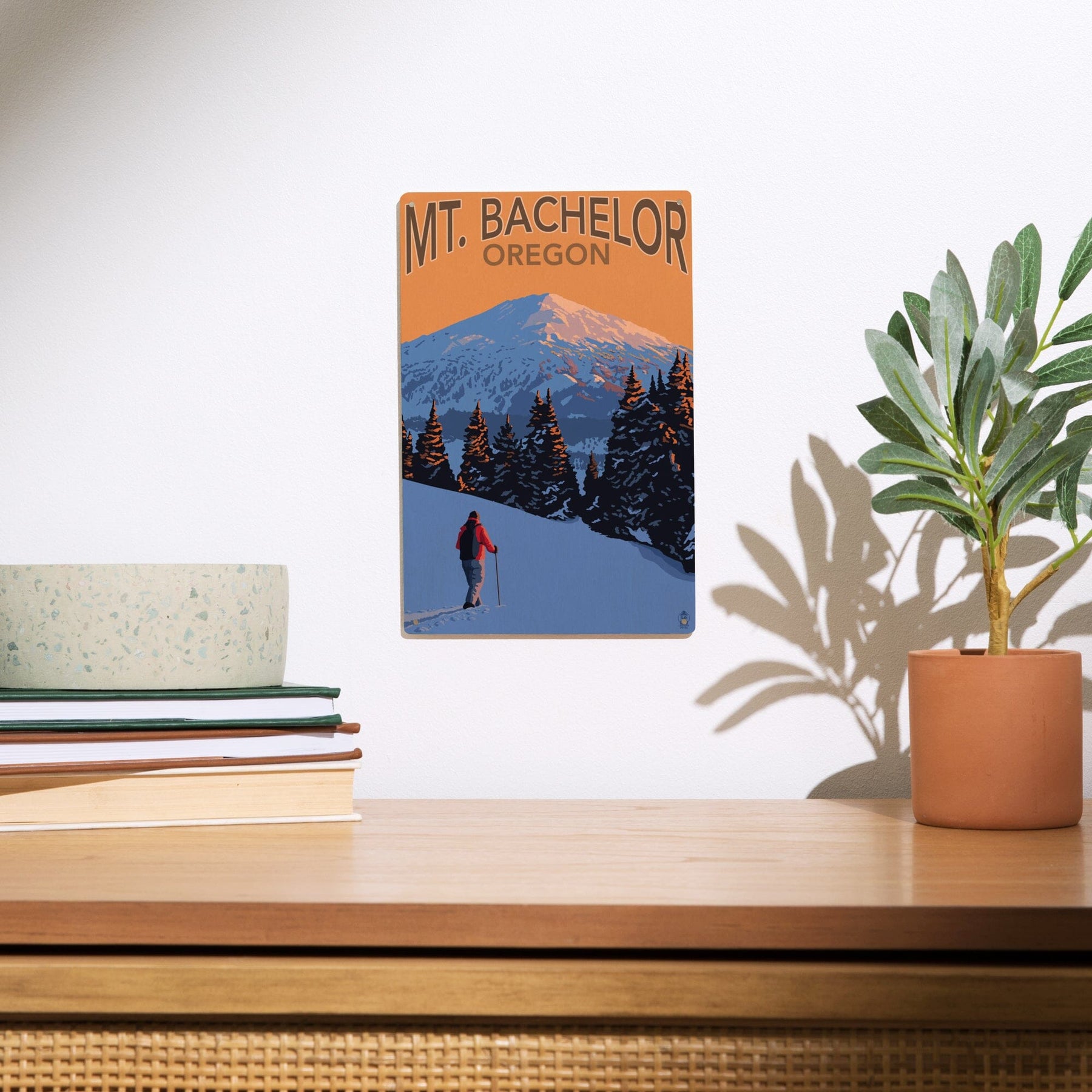 Oregon, Mt. Bachelor and Skier, Lantern Press Artwork, Wood Signs and Postcards Wood Lantern Press