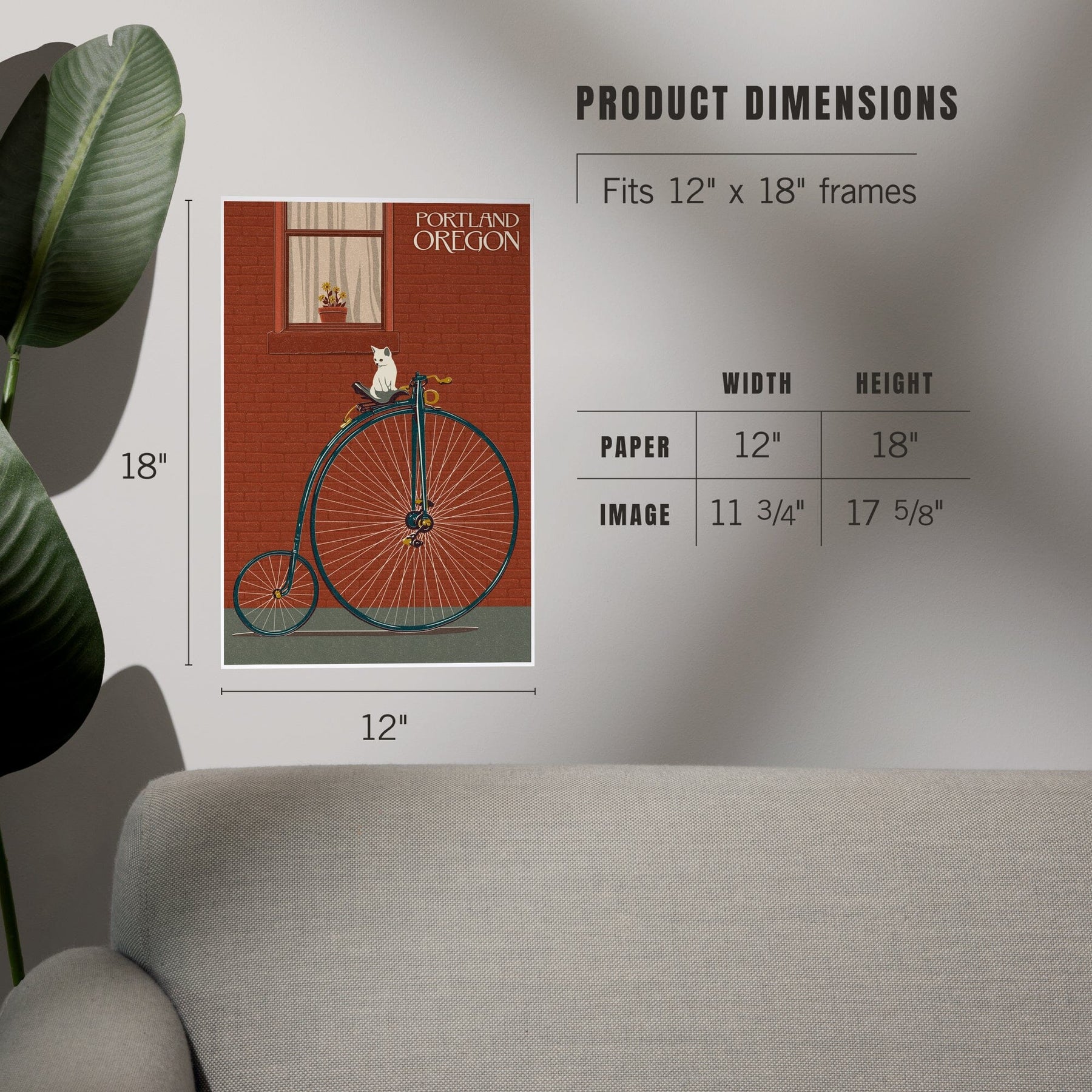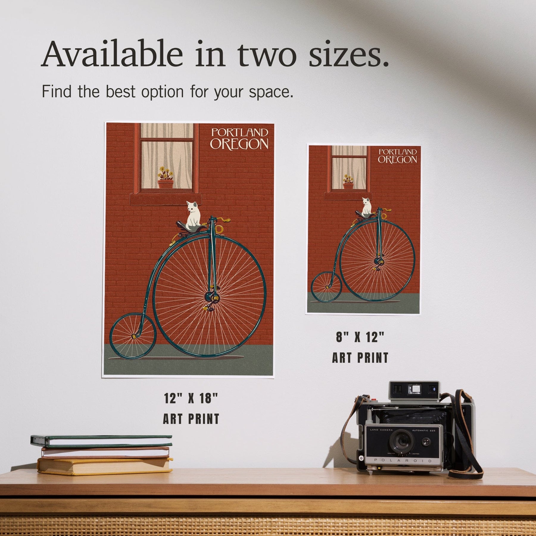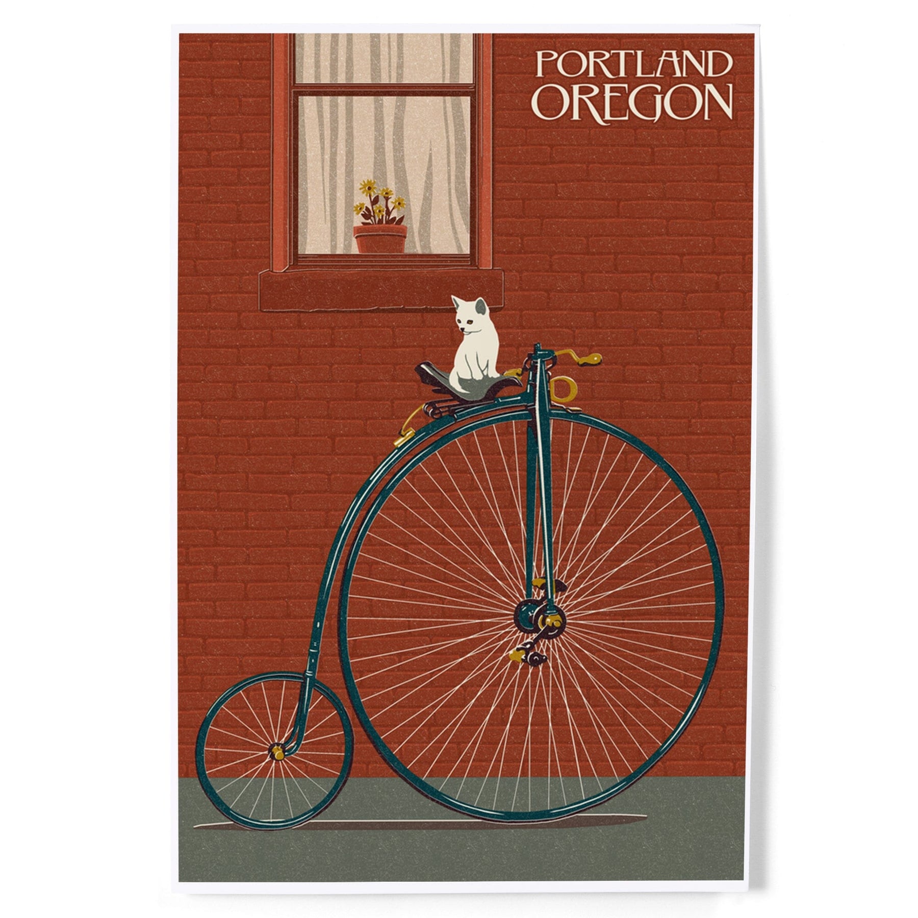 Portland, Oregon, Bicycle and Cat Letterpress, Art & Giclee Prints