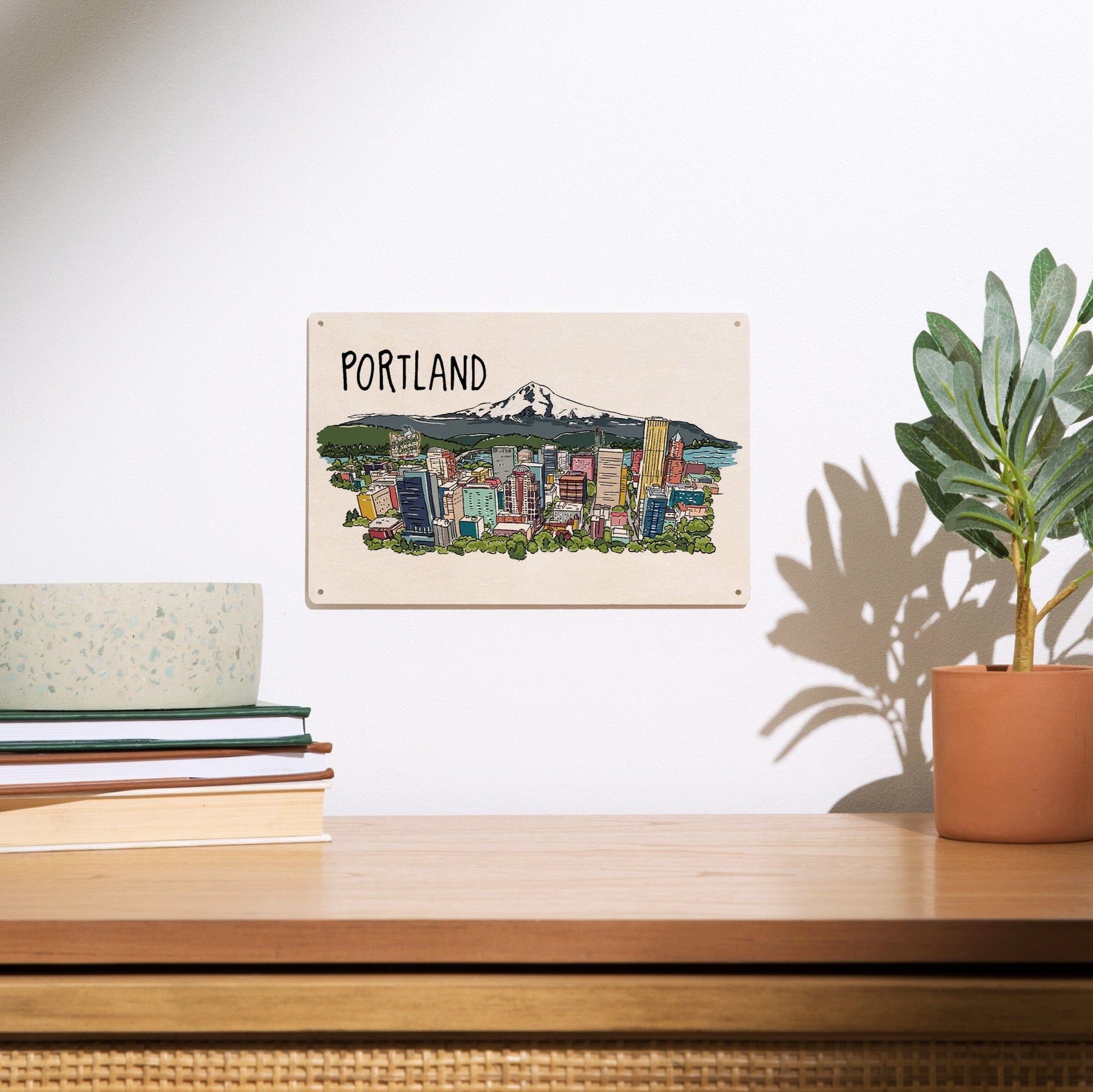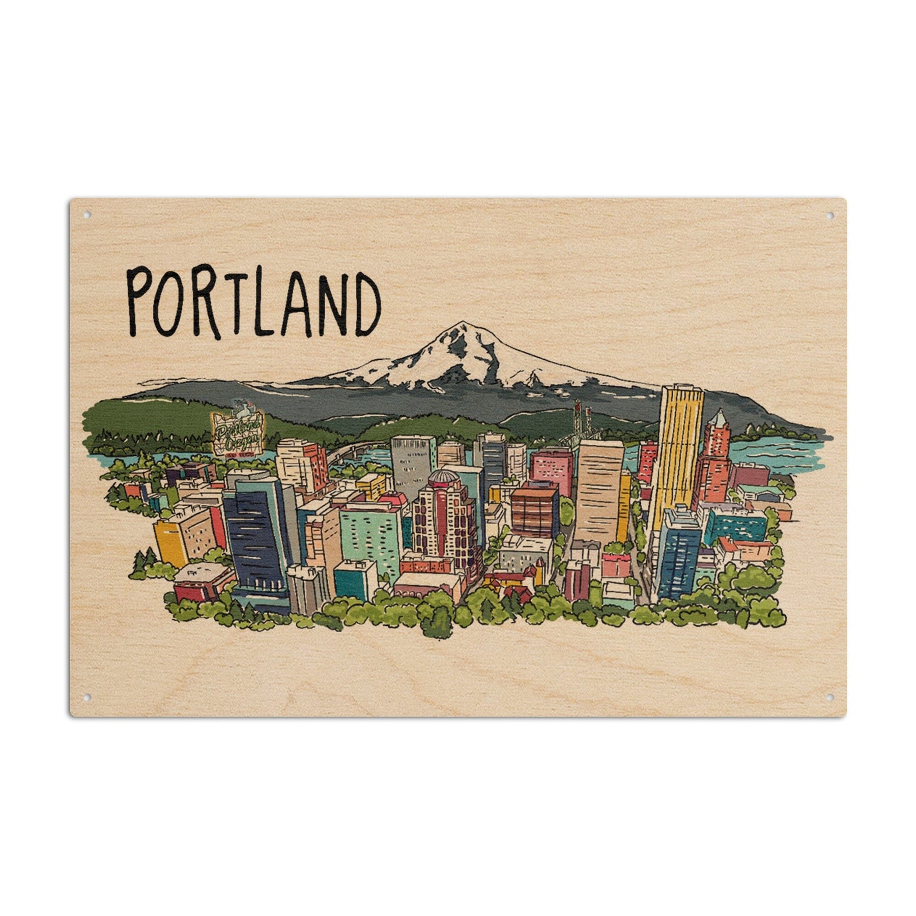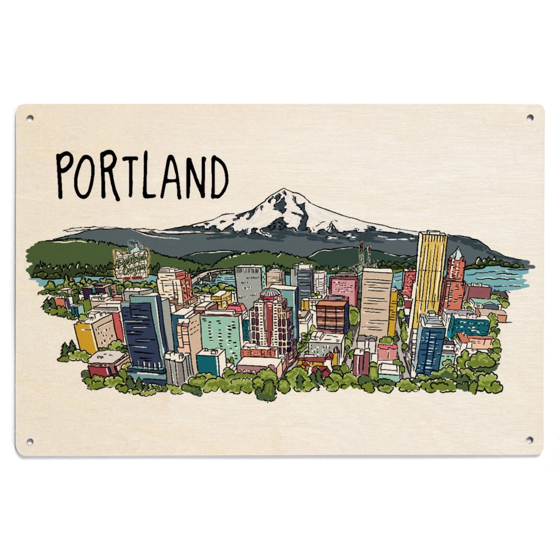 Portland, Oregon, Cityscape, Line Drawing, Lantern Press Artwork, Wood Signs and Postcards Wood Lantern Press