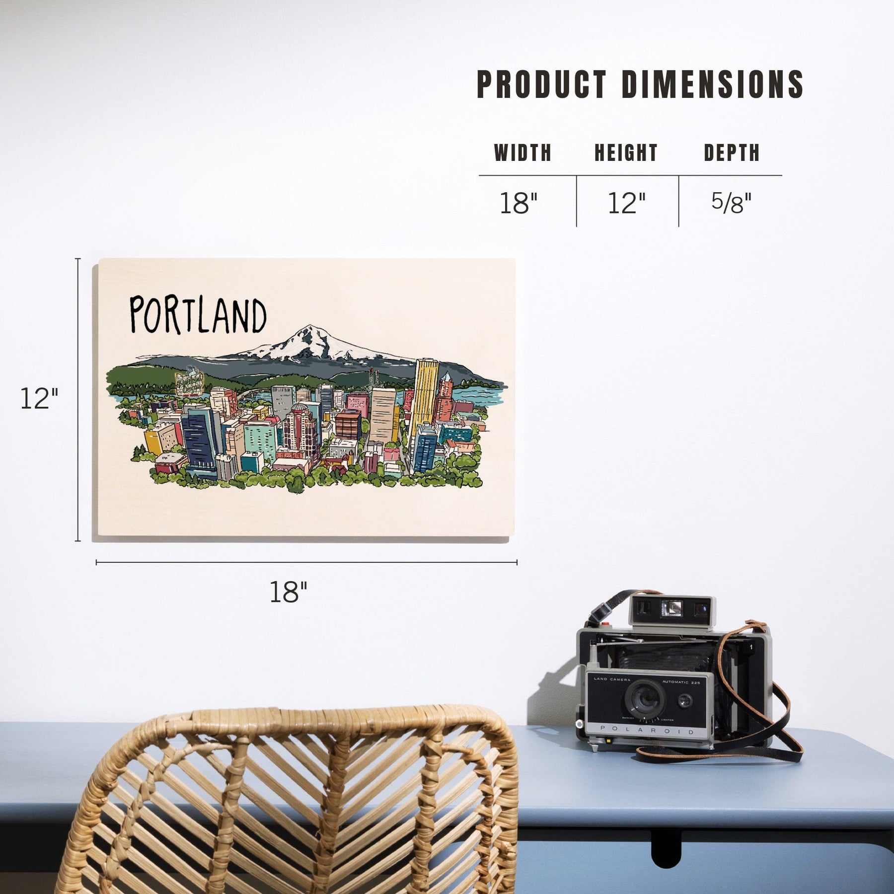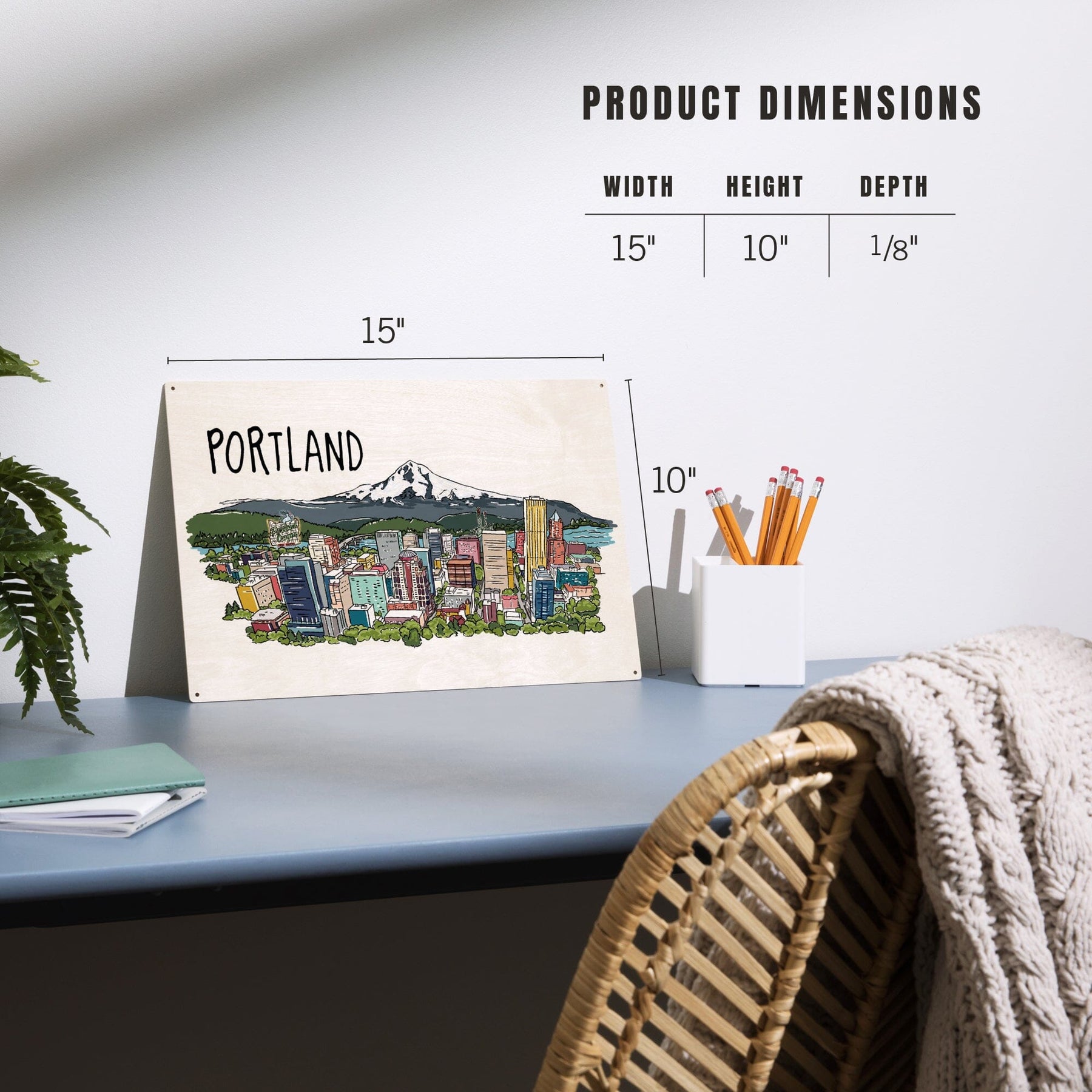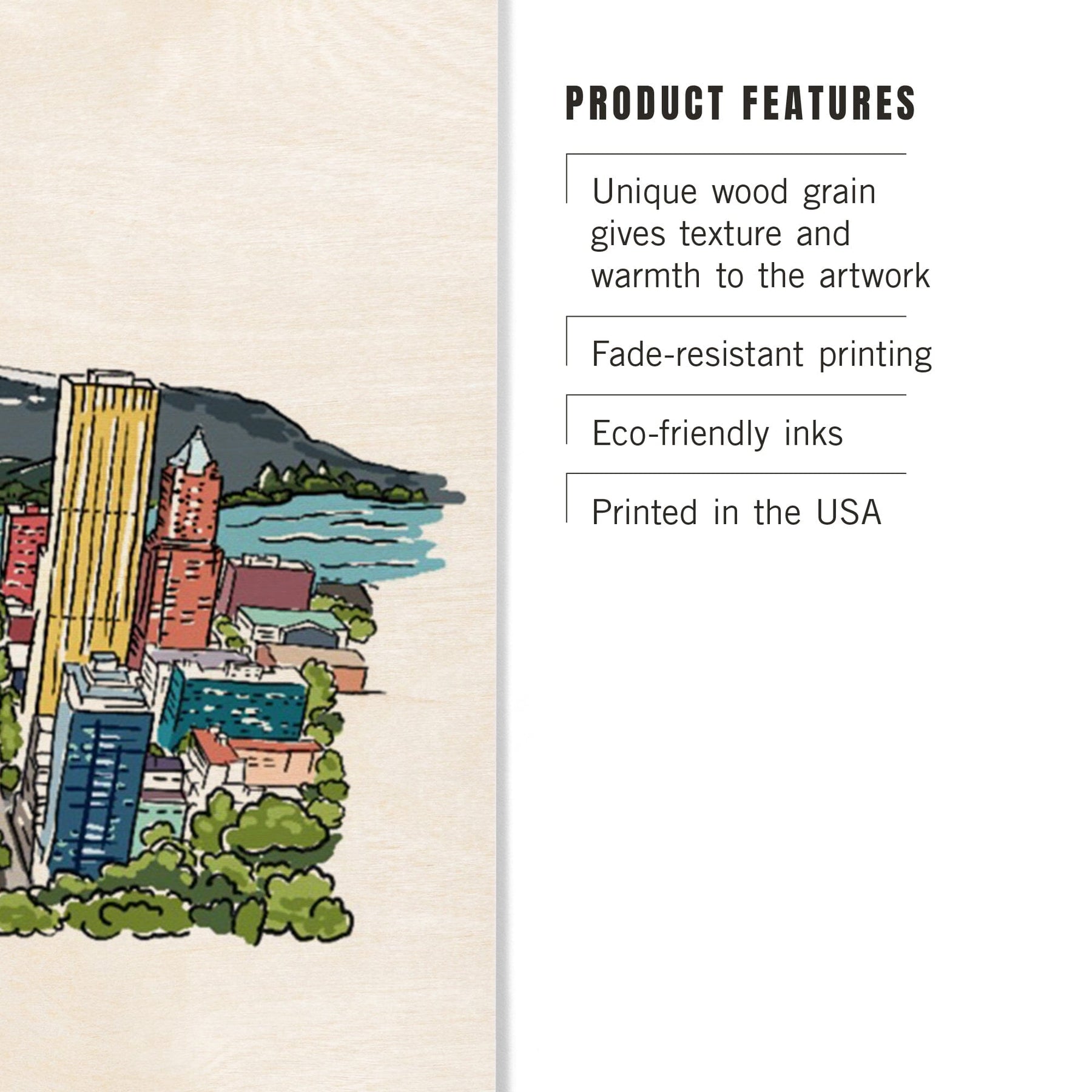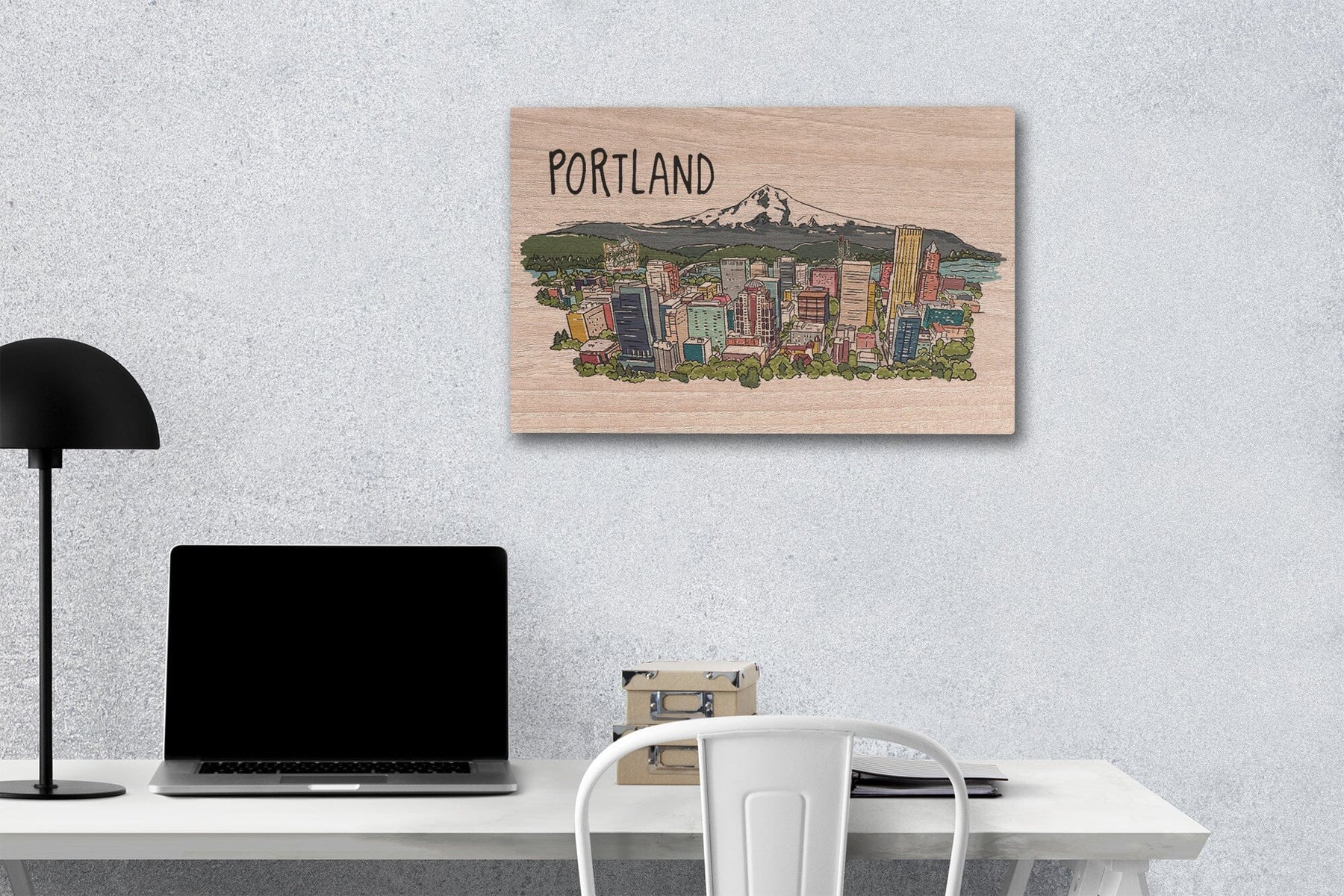 Portland, Oregon, Cityscape, Line Drawing, Lantern Press Artwork, Wood Signs and Postcards Wood Lantern Press