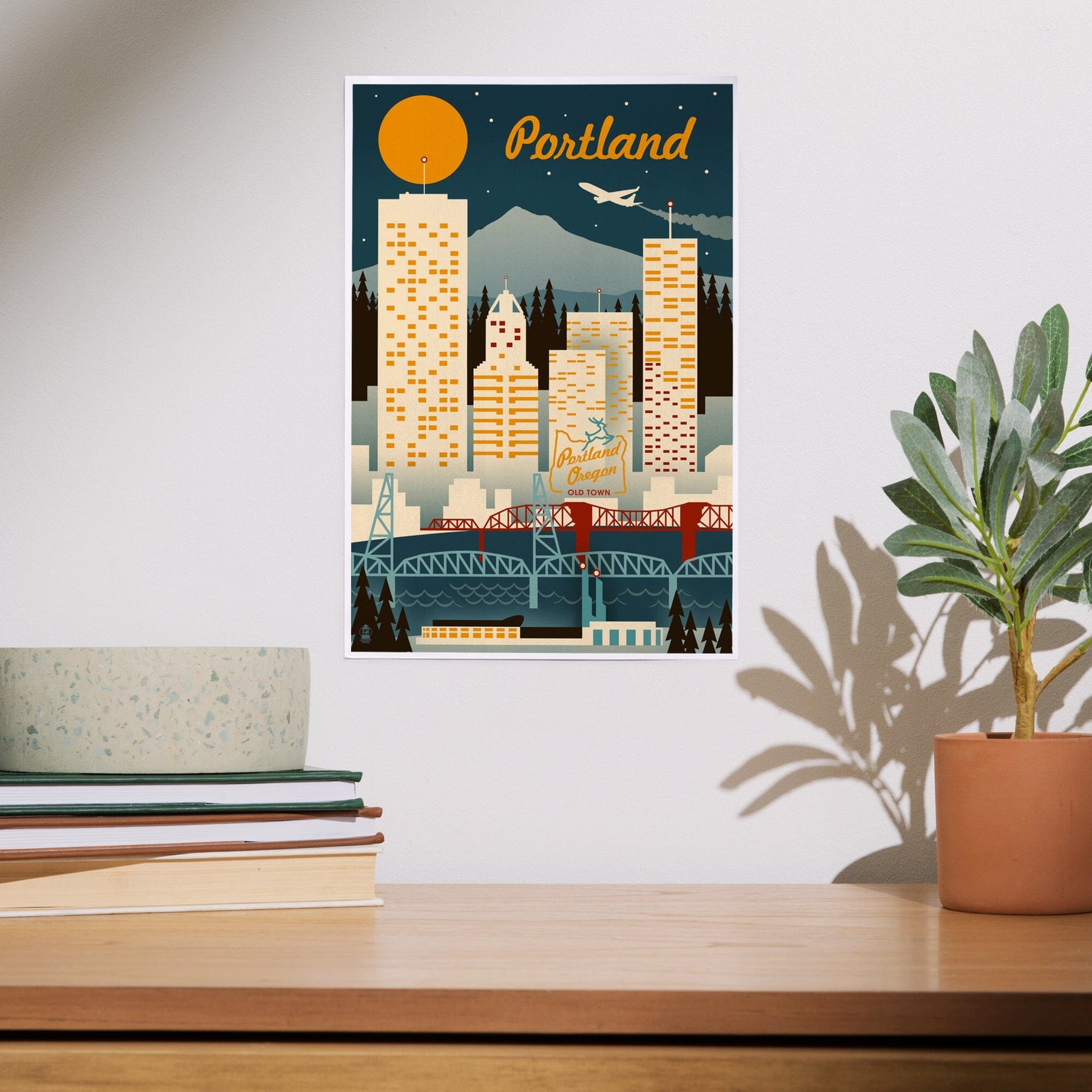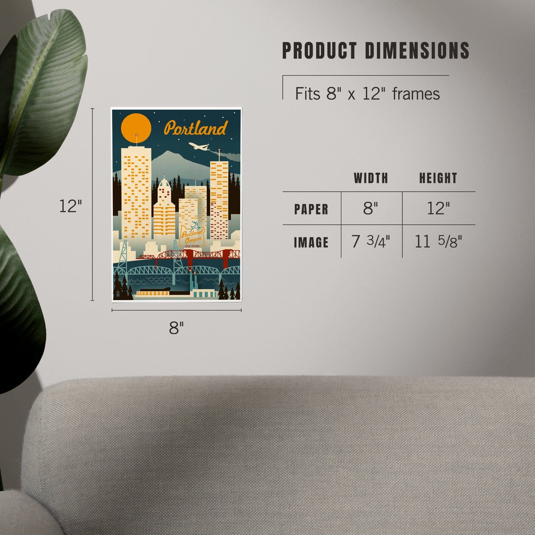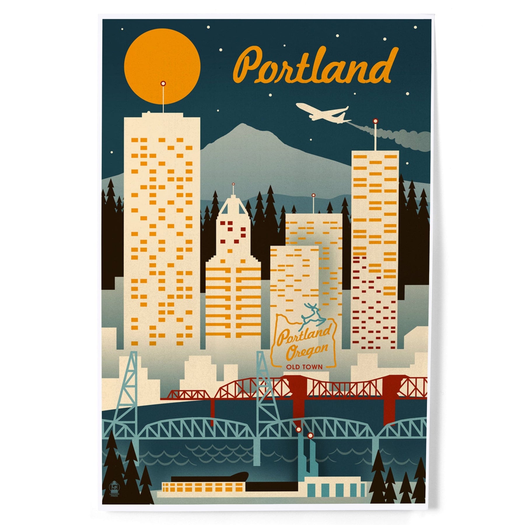 Portland, Oregon, Retro Skyline, Art & Giclee Prints Art Lantern Press