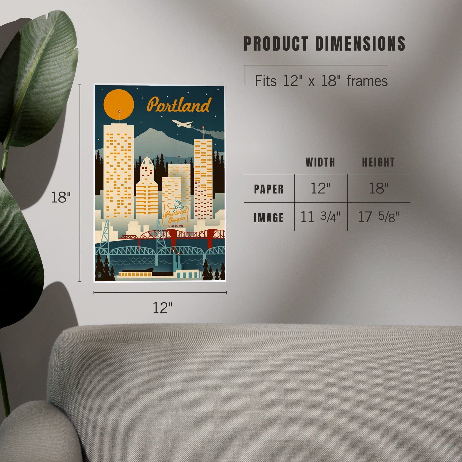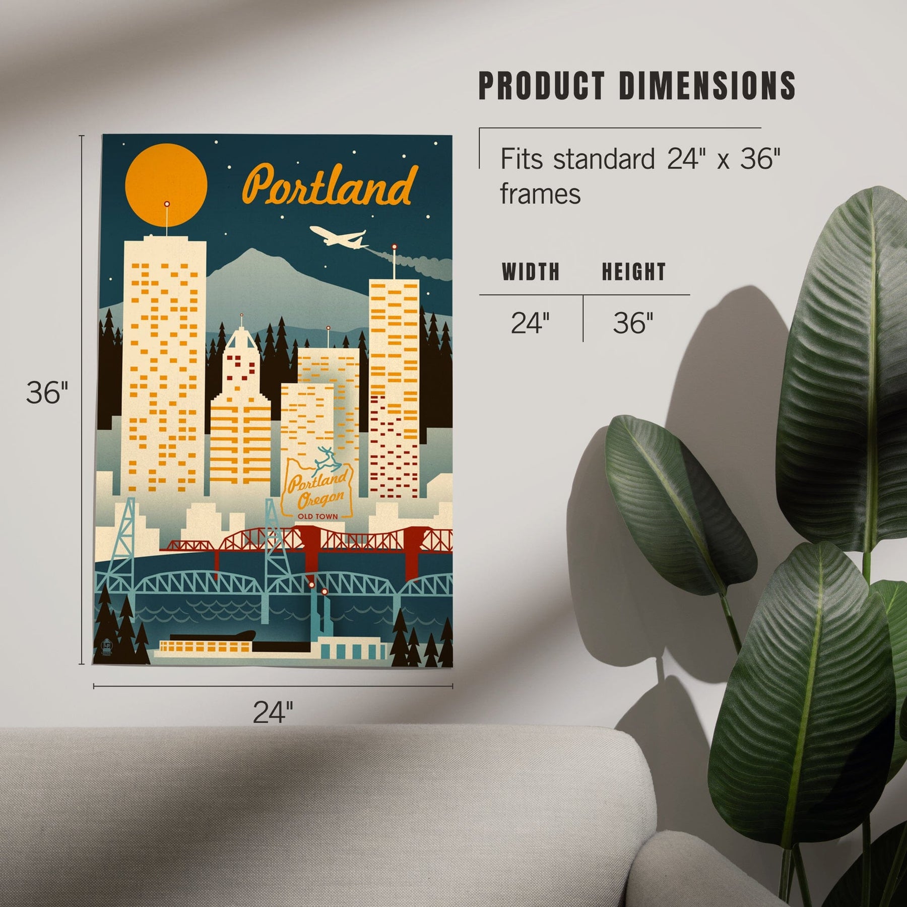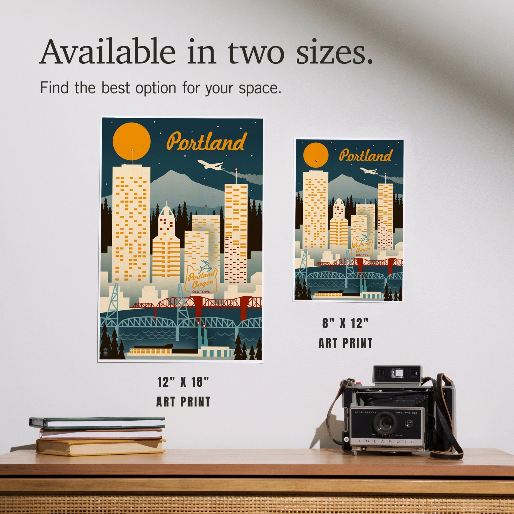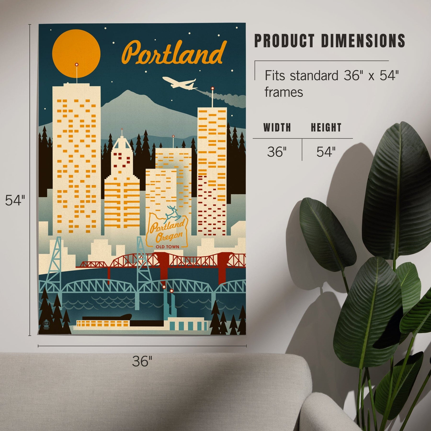 Portland, Oregon, Retro Skyline, Art & Giclee Prints Art Lantern Press