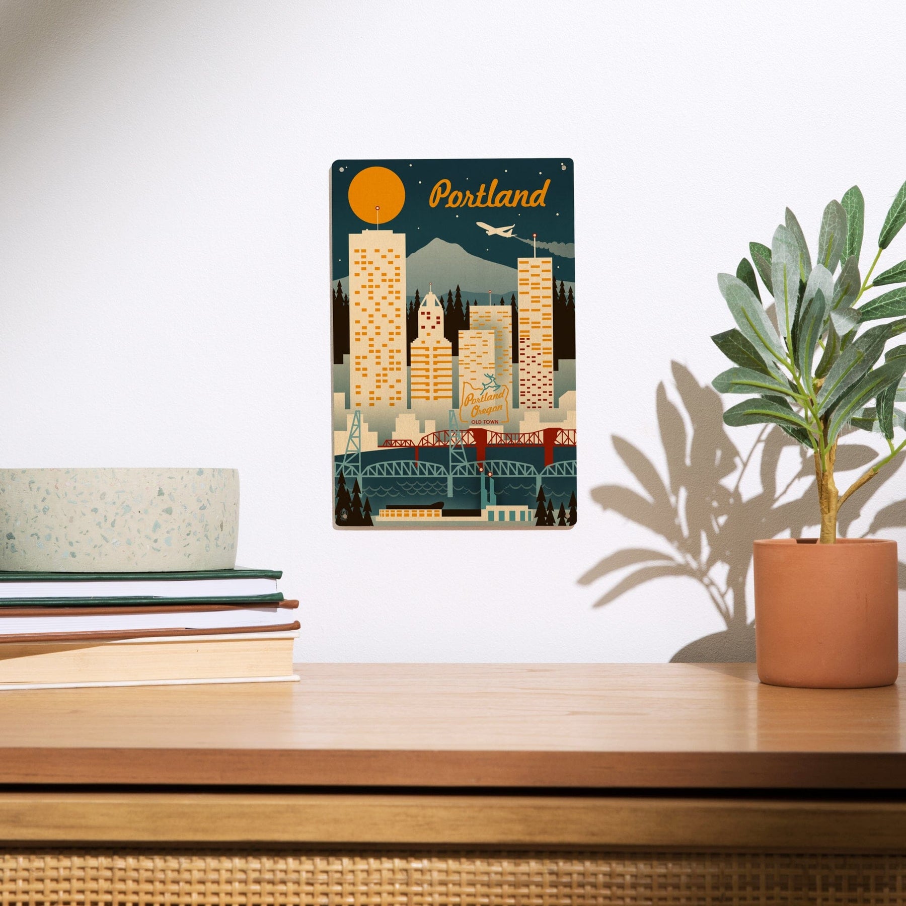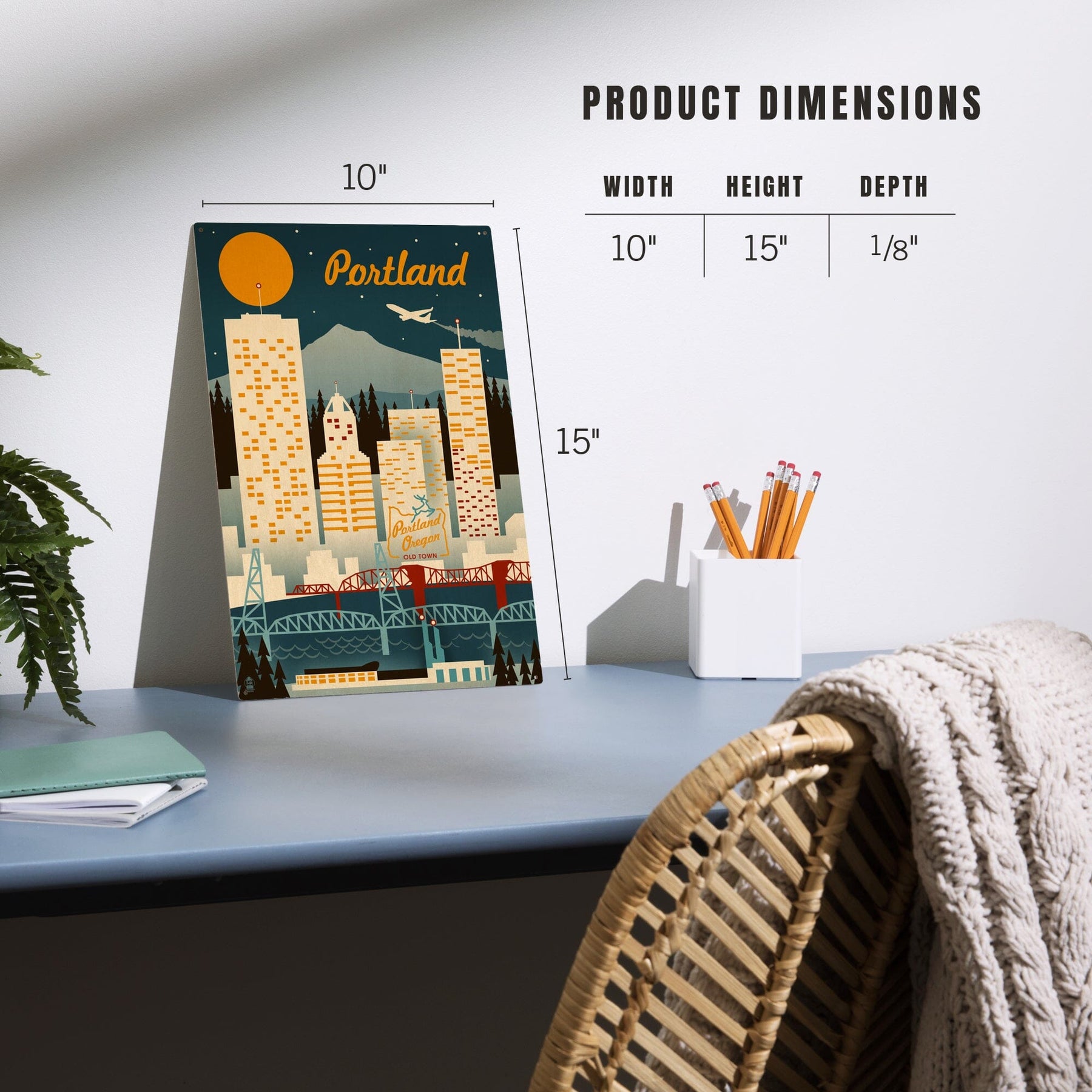 Portland, Oregon, Retro Skyline, Lantern Press Artwork, Wood Signs and Postcards