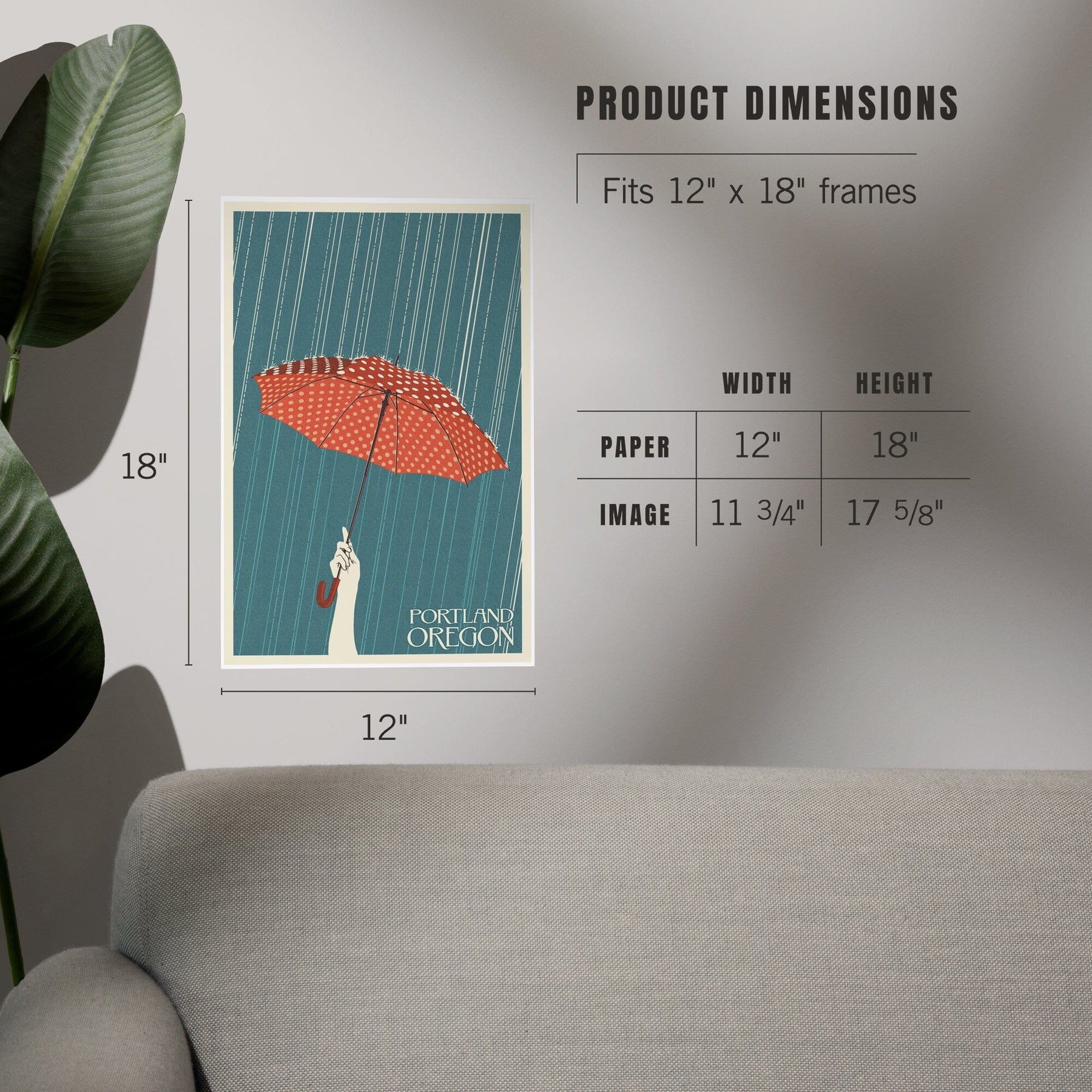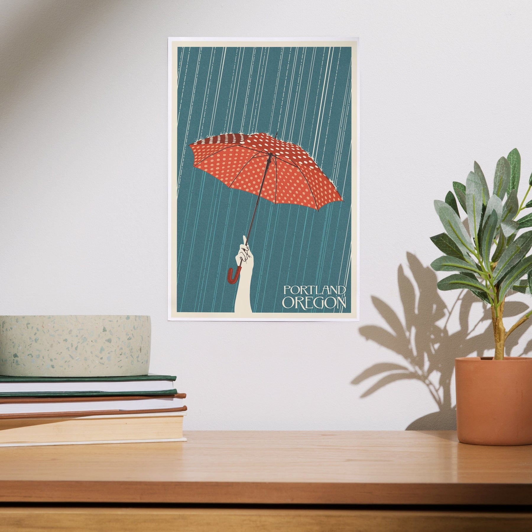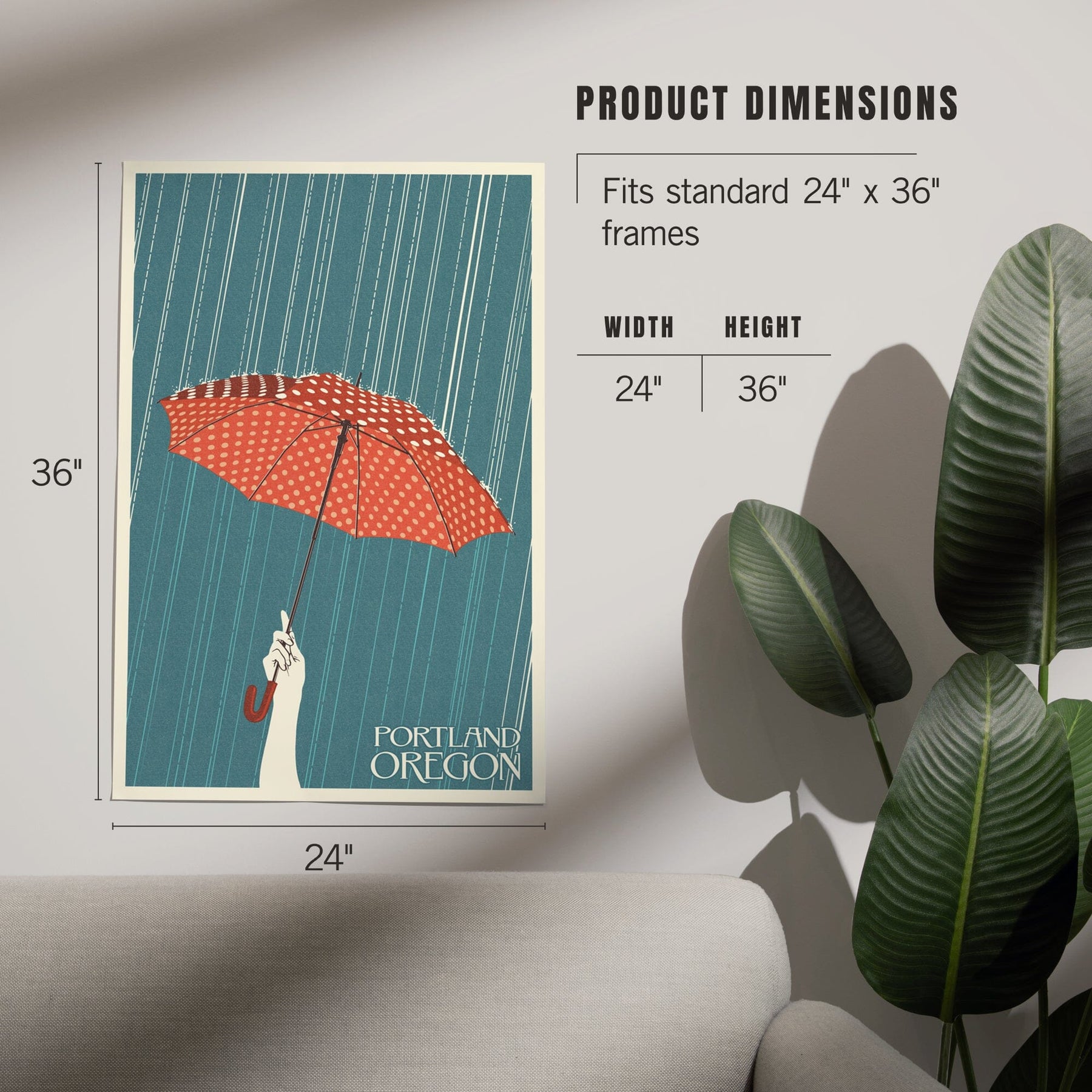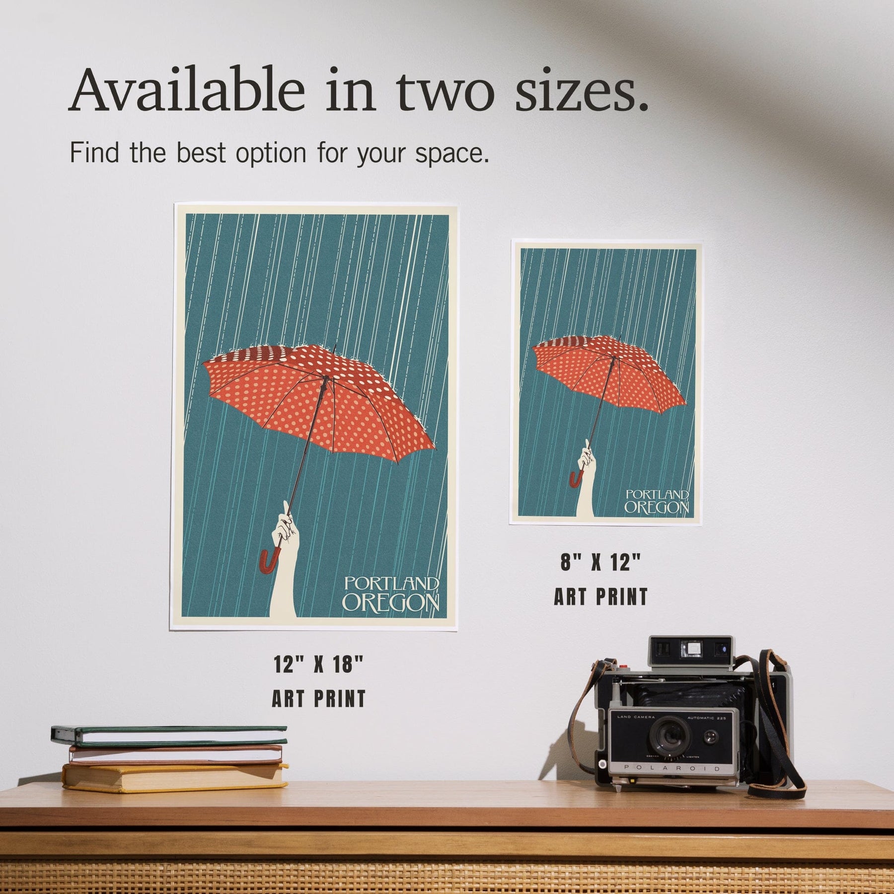 Portland, Oregon, Umbrella, Letterpress, Art & Giclee Prints Art Lantern Press