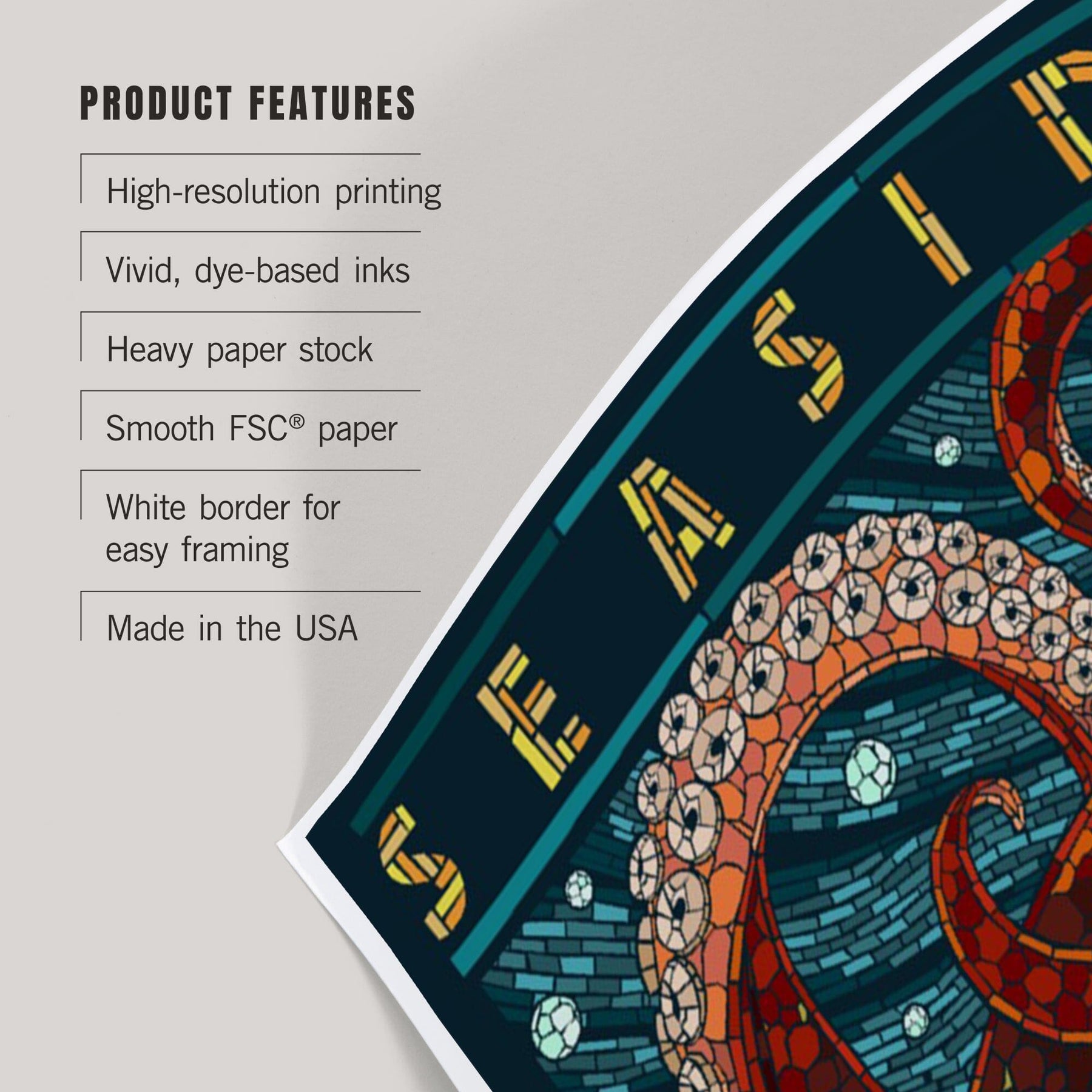 Seaside, Oregon Coast, Octopus, Mosaic, Art & Giclee Prints Art Lantern Press