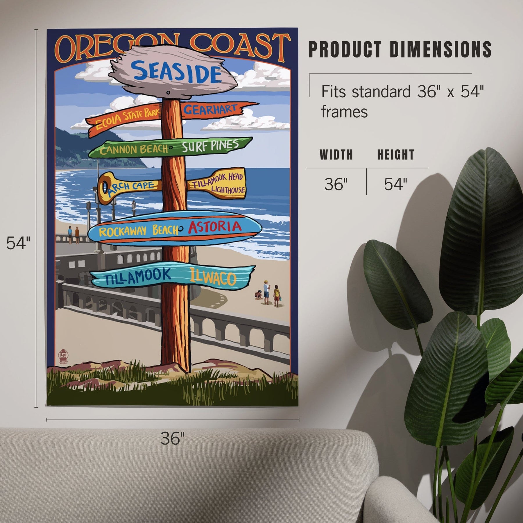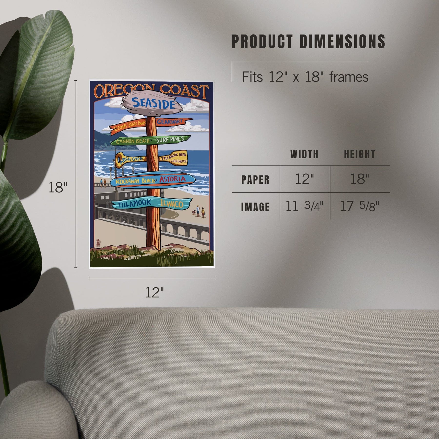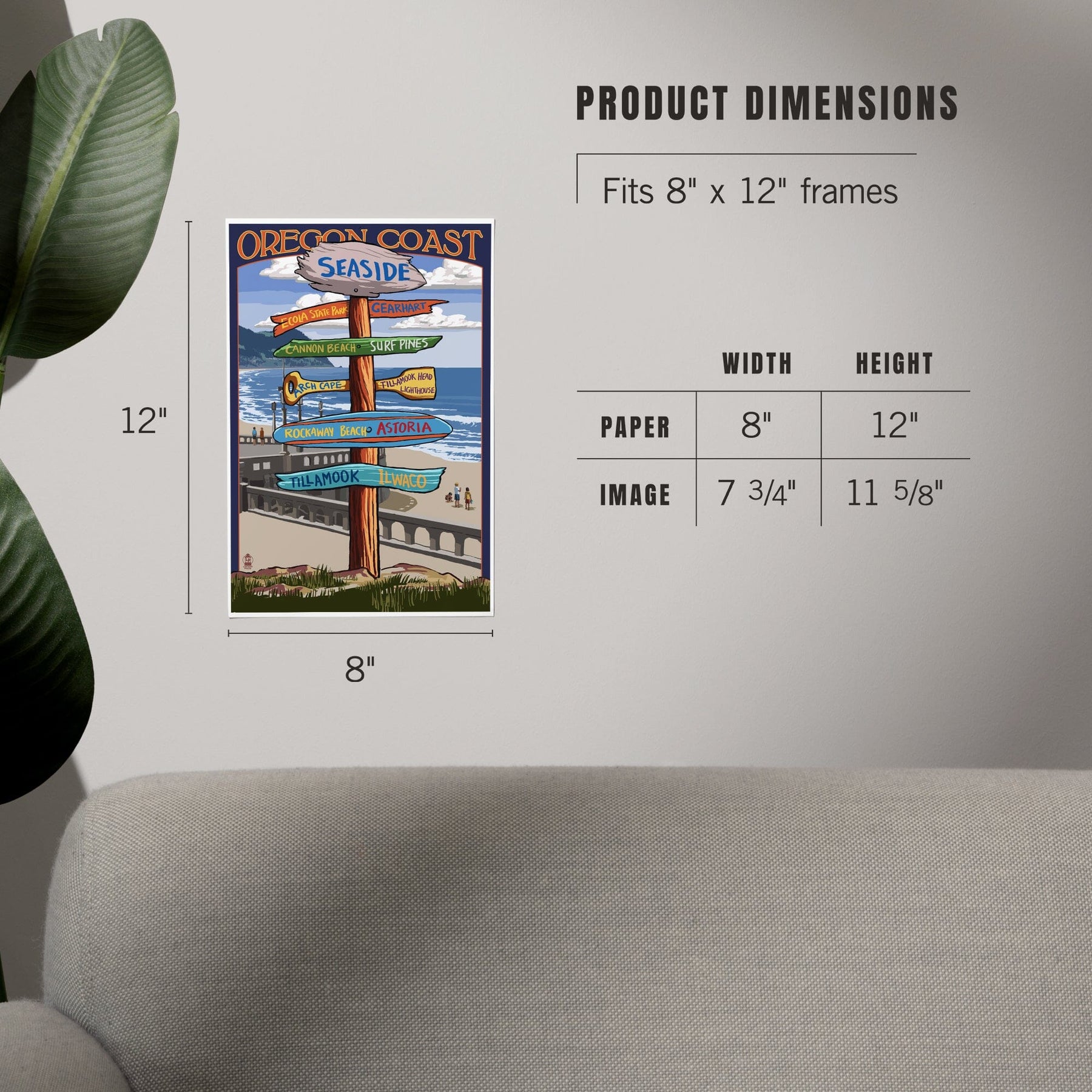 Seaside, Oregon, Signpost, Art & Giclee Prints Art Lantern Press