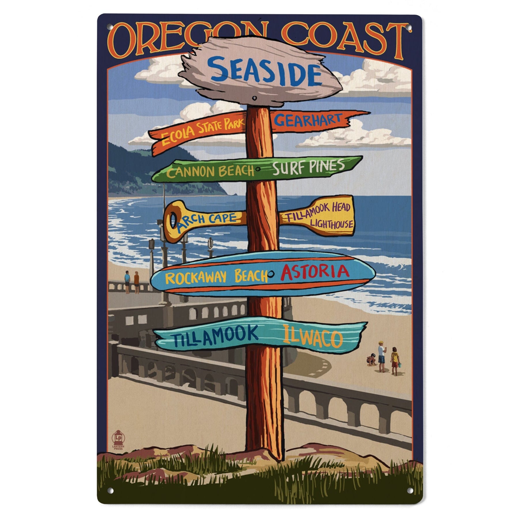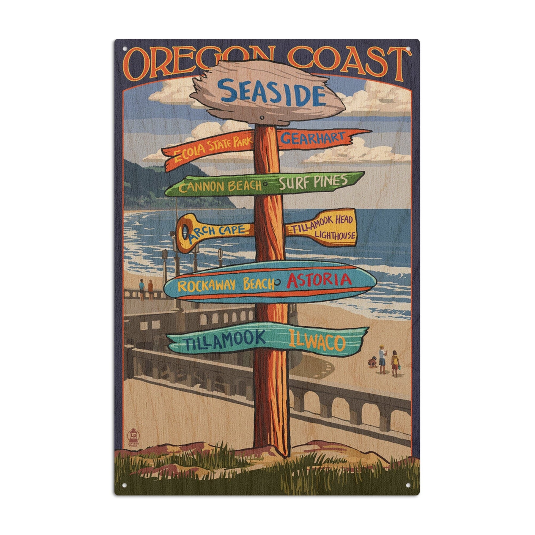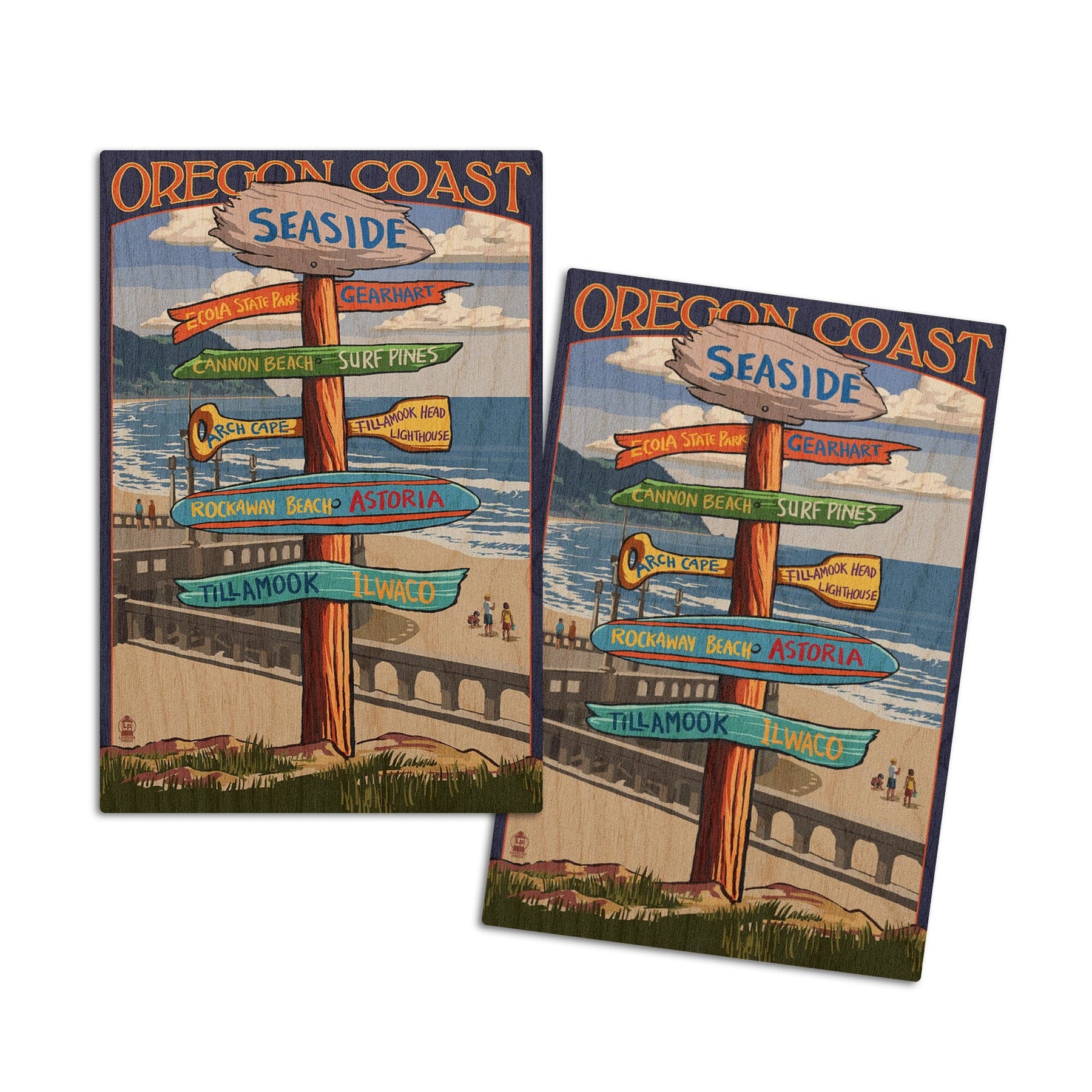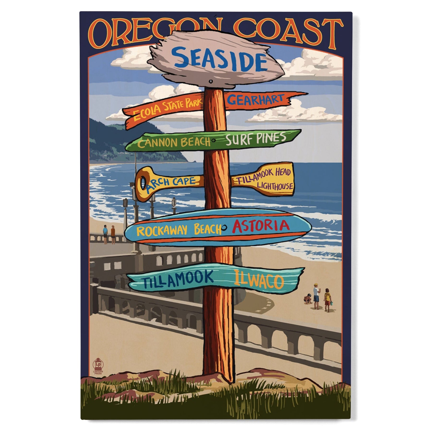 Seaside, Oregon, Signpost, Lantern Press Artwork, Wood Signs and Postcards