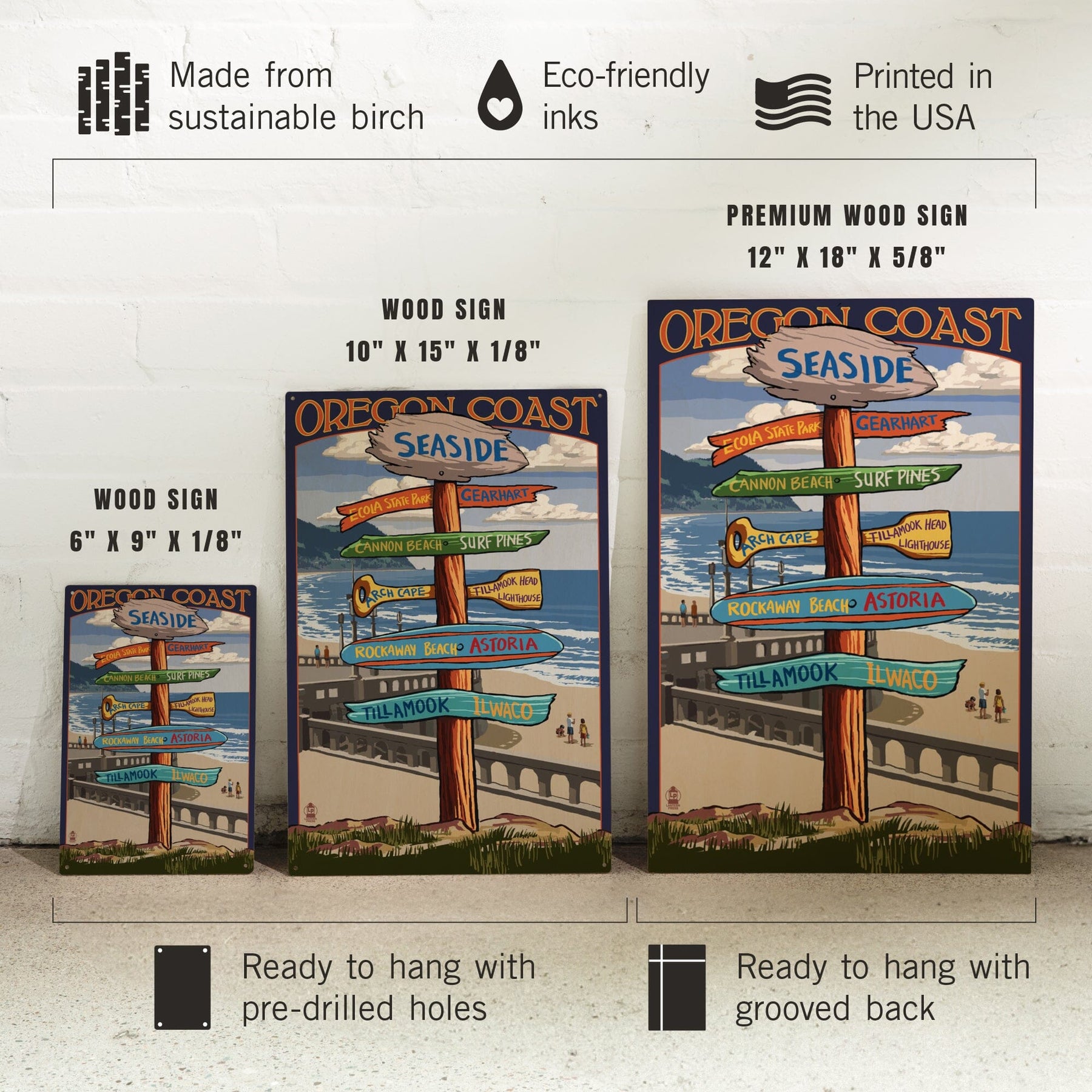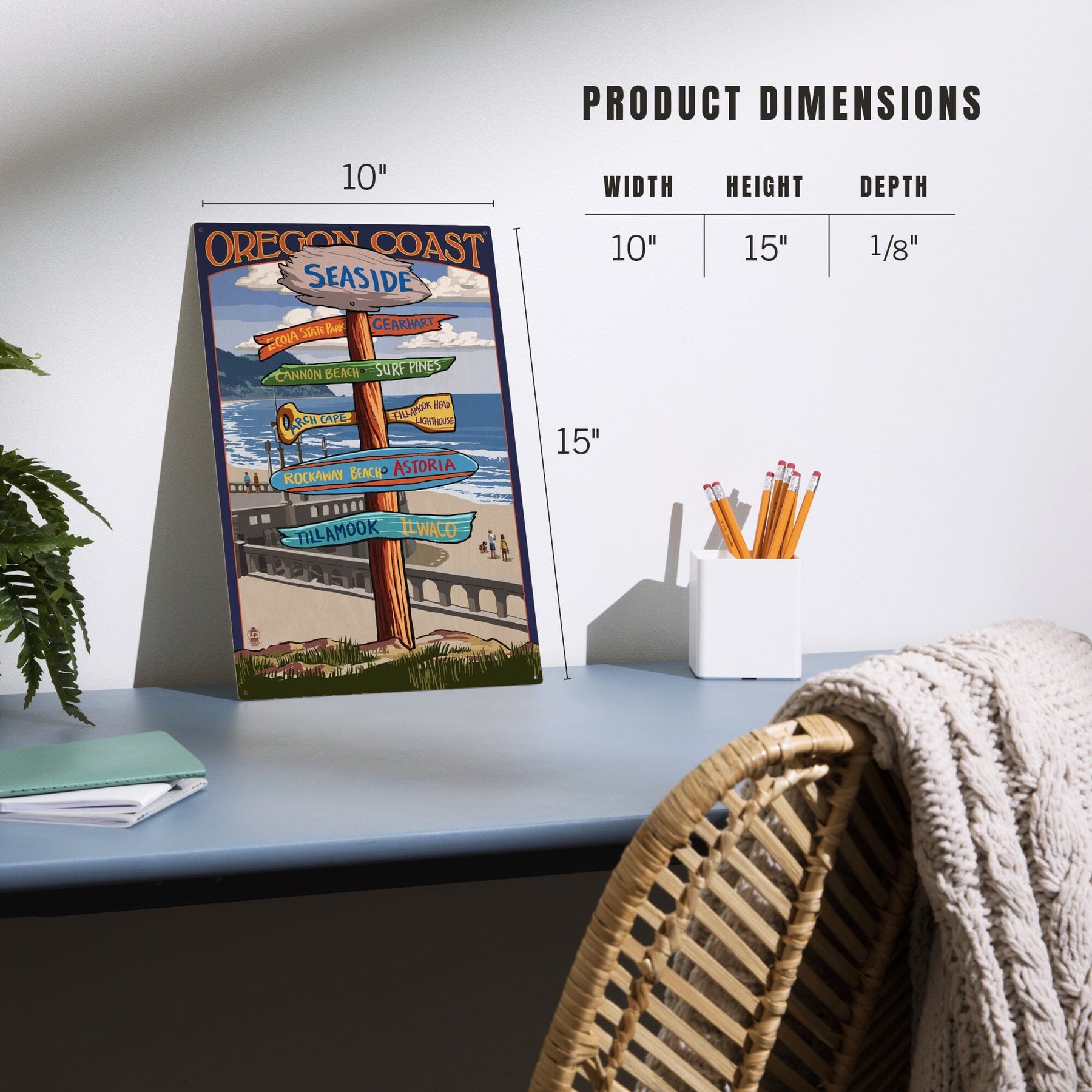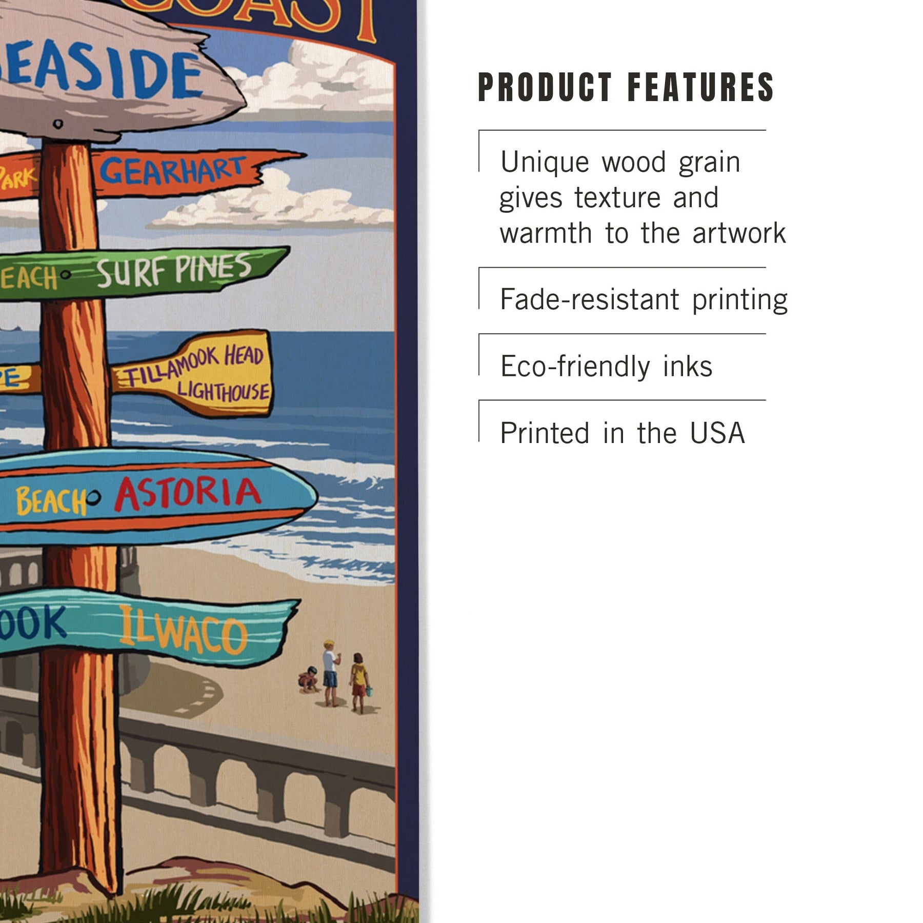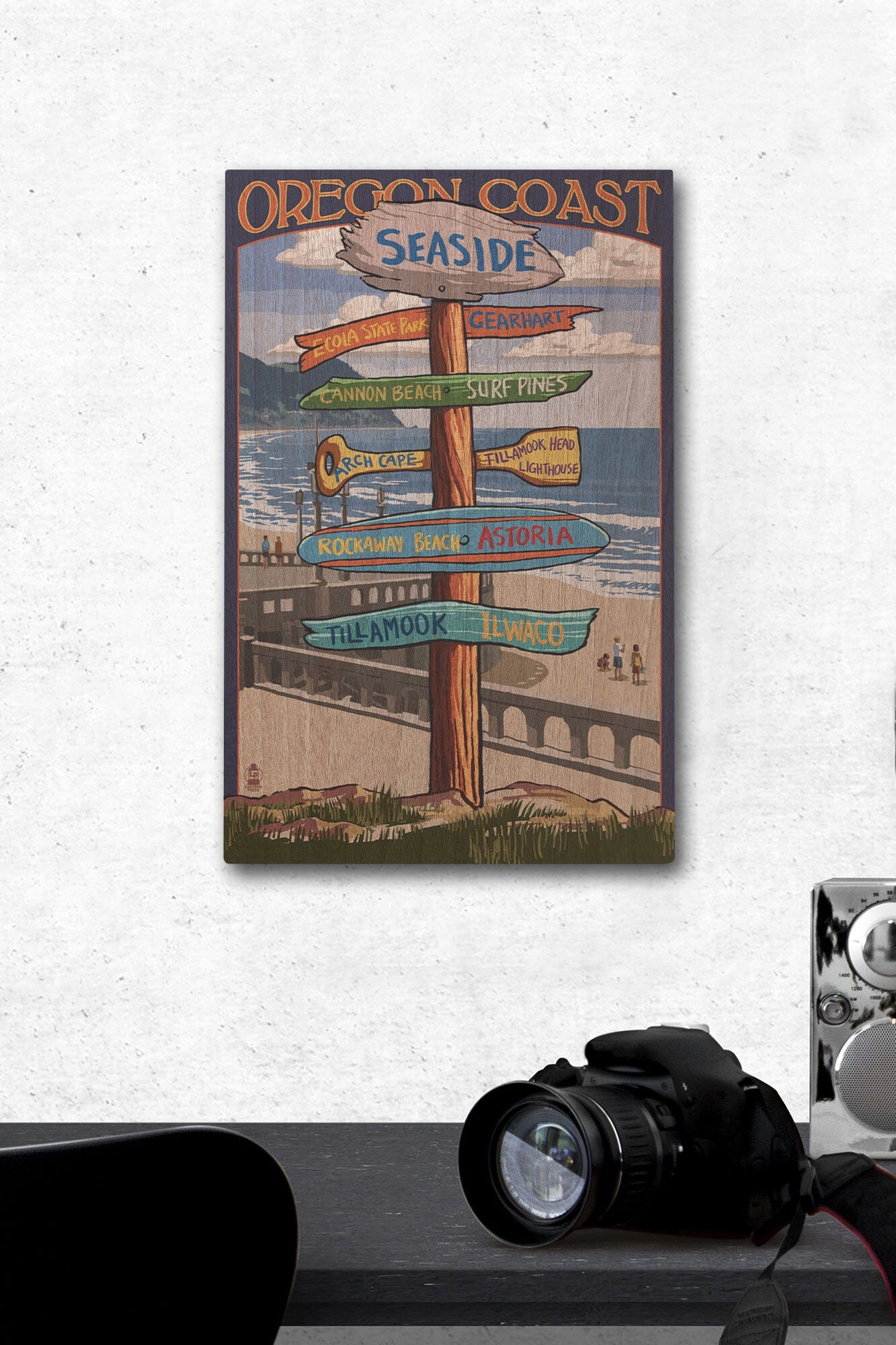 Seaside, Oregon, Signpost, Lantern Press Artwork, Wood Signs and Postcards