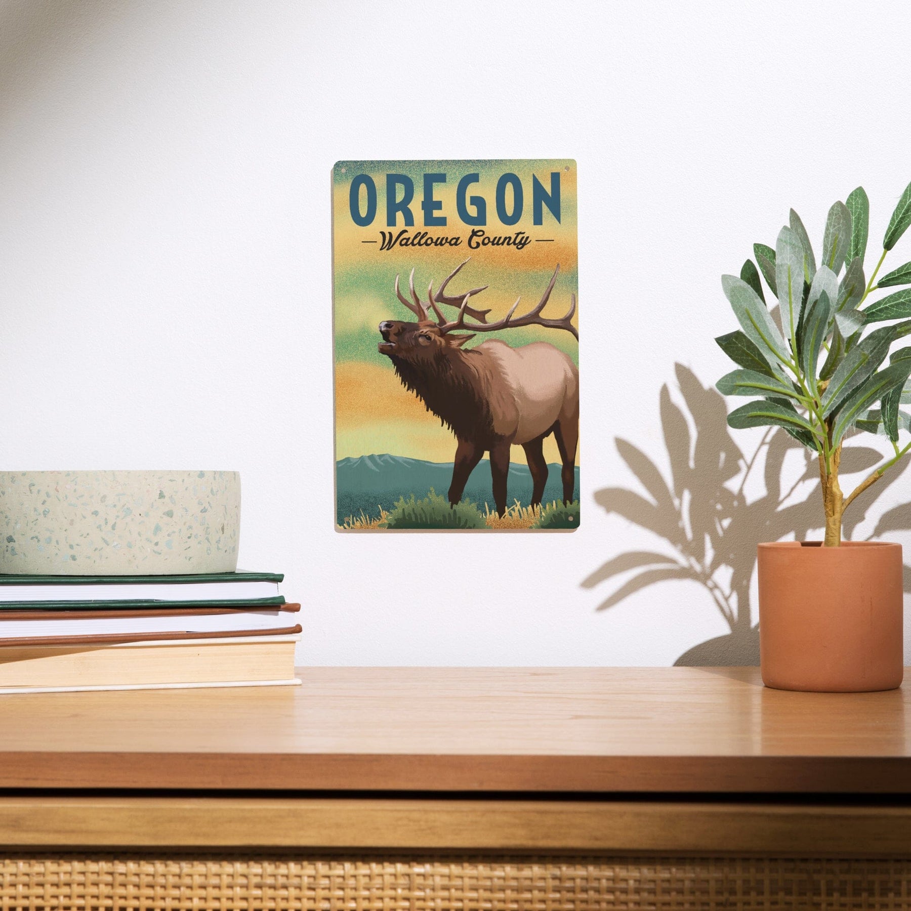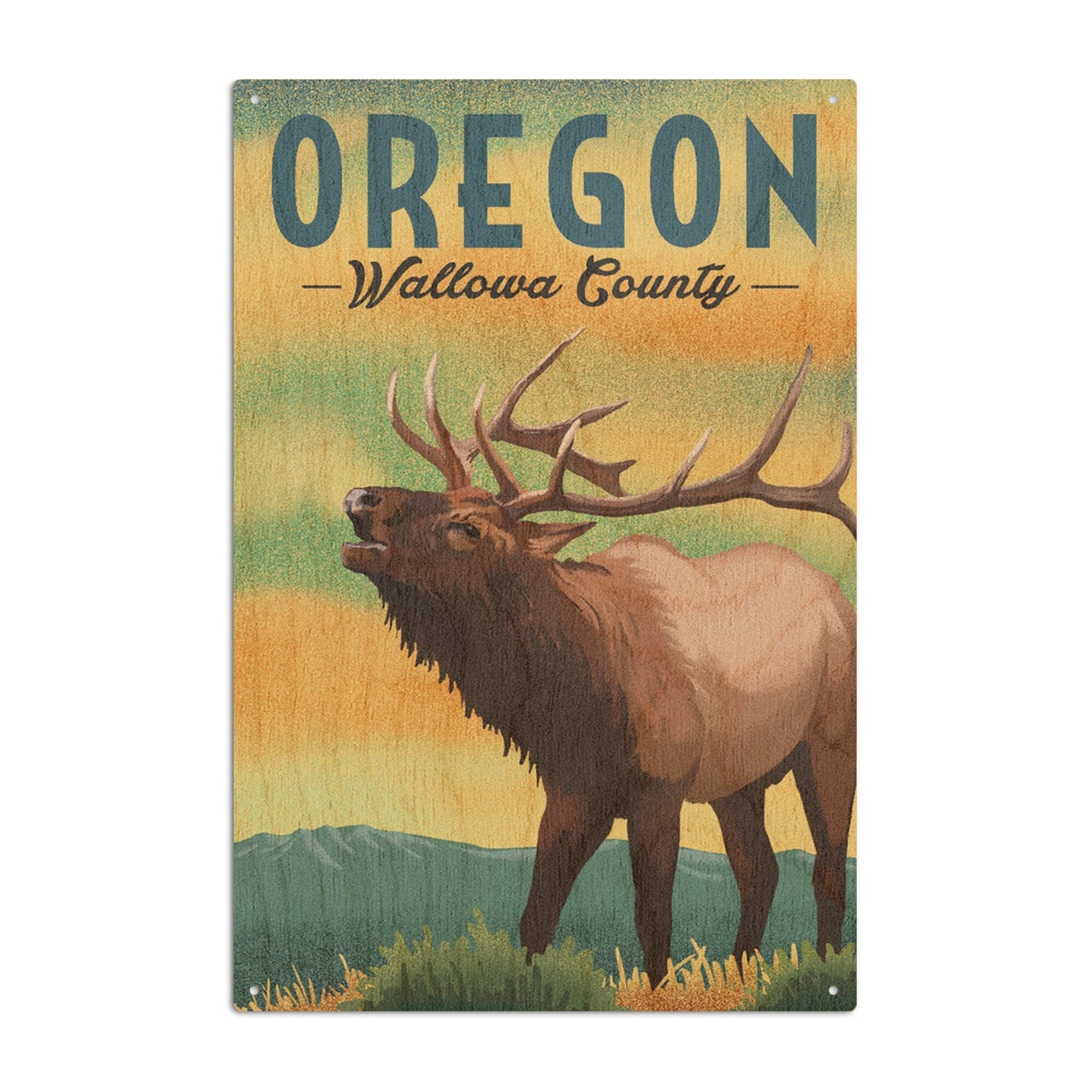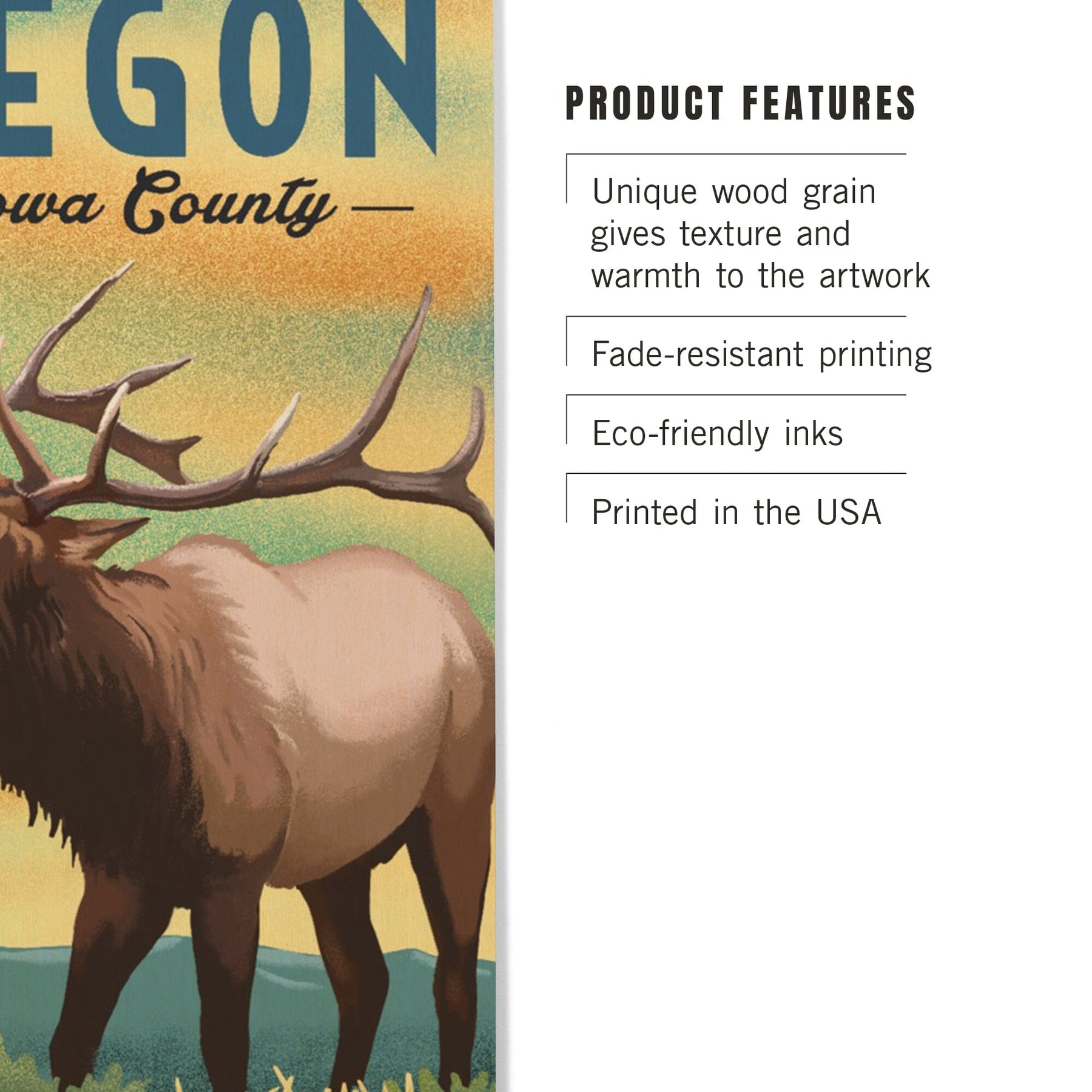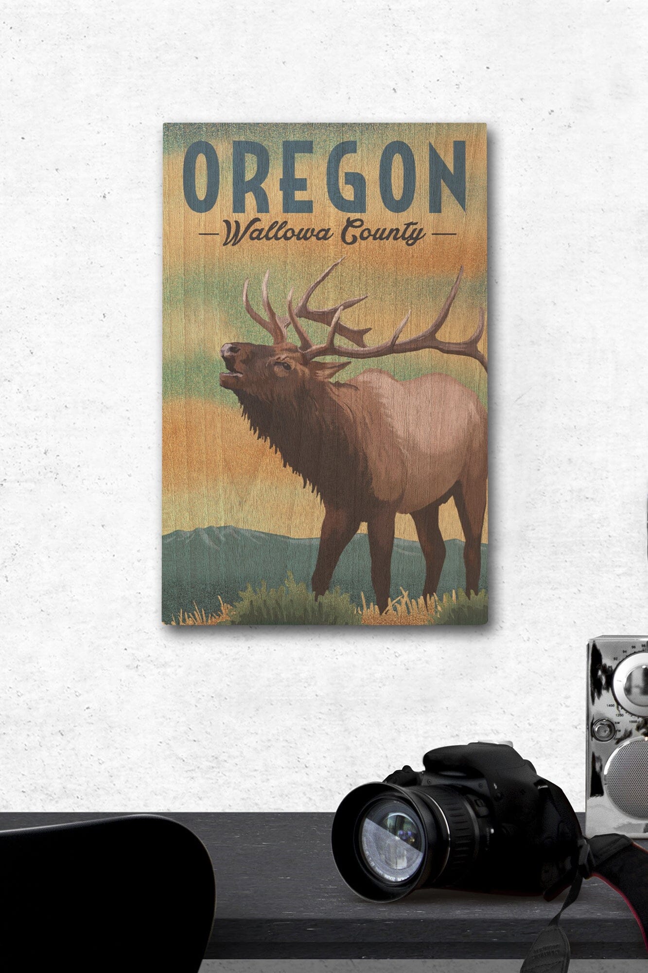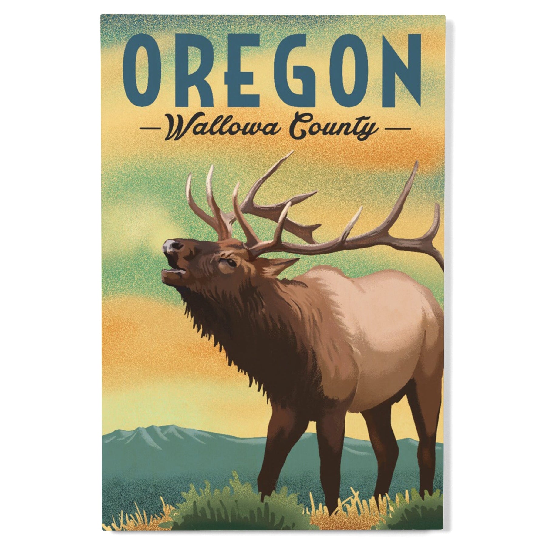 Wallowa County, Oregon, Elk, Lithograph, Lantern Press Artwork, Wood Signs and Postcards Wood Lantern Press