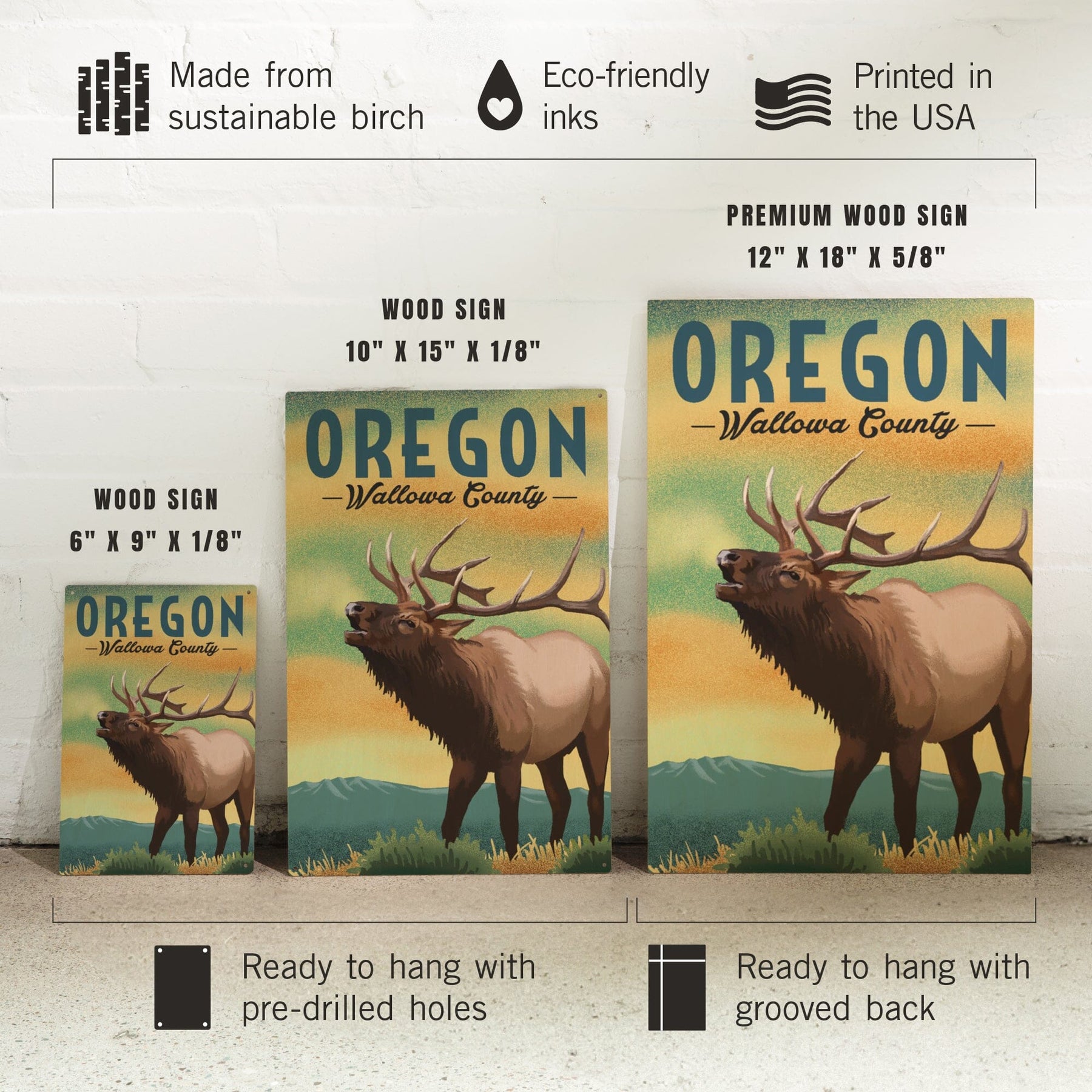 Wallowa County, Oregon, Elk, Lithograph, Lantern Press Artwork, Wood Signs and Postcards