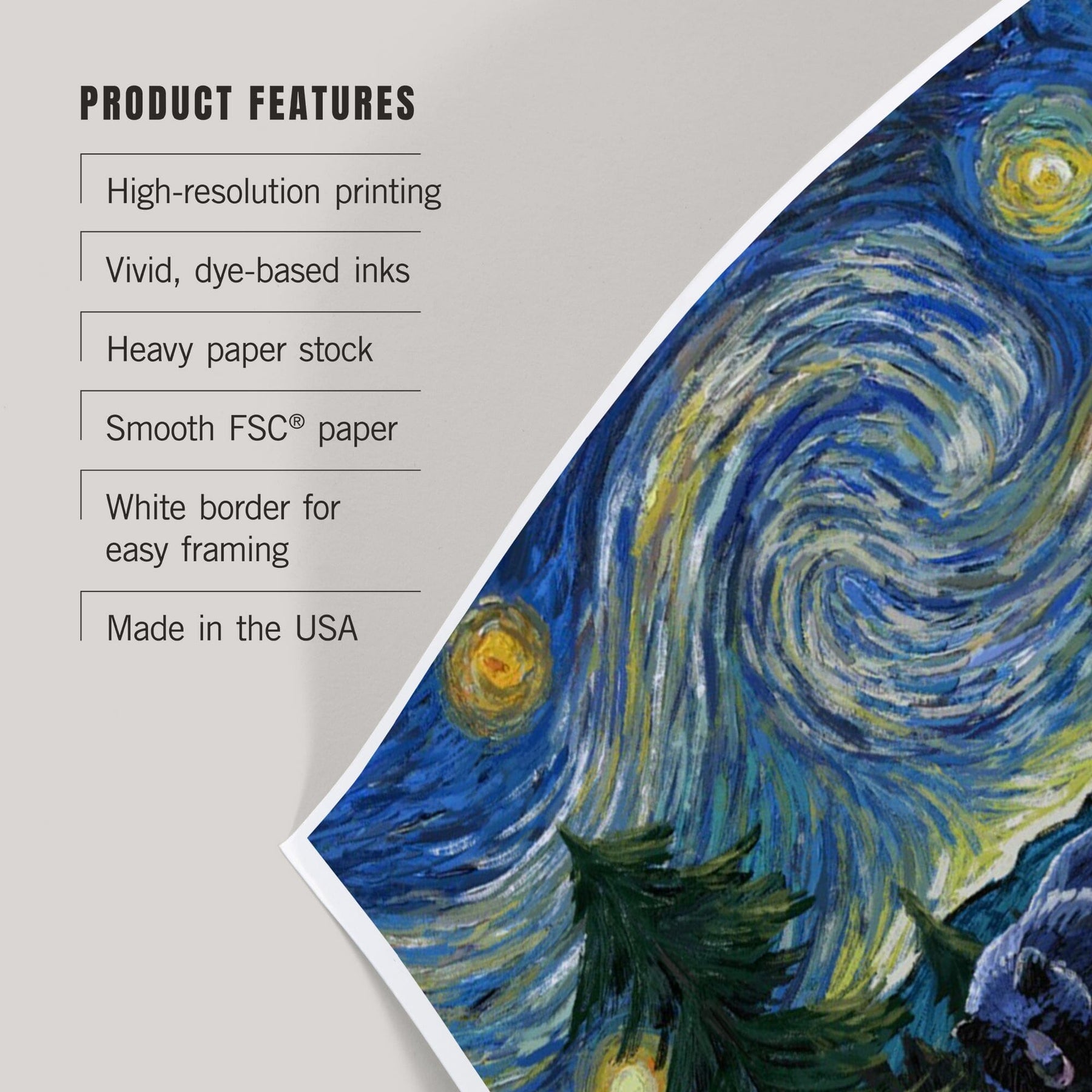 Wallowa Lake, Oregon, Bear, Starry Night, Art & Giclee Prints Art Lantern Press