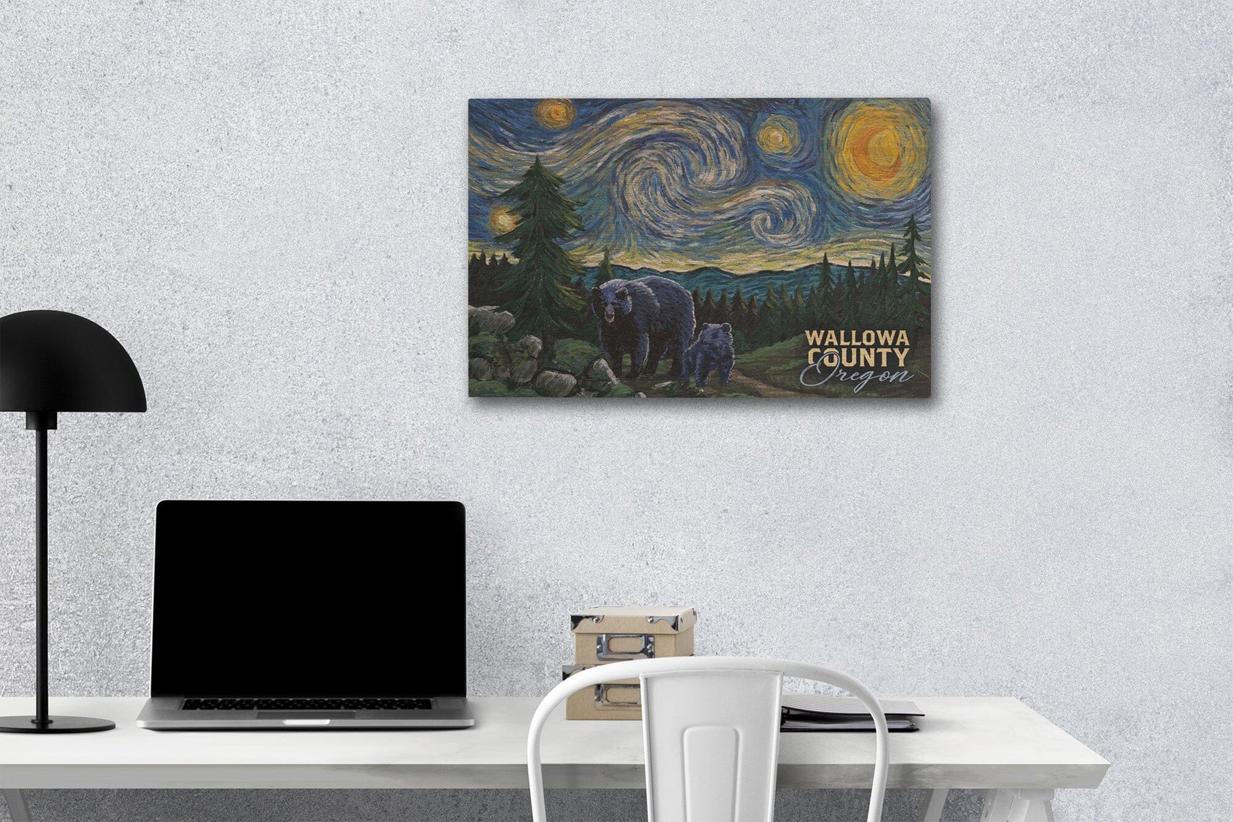 Wallowa Lake, Oregon, Bear, Starry Night, Lantern Press Artwork, Wood Signs and Postcards
