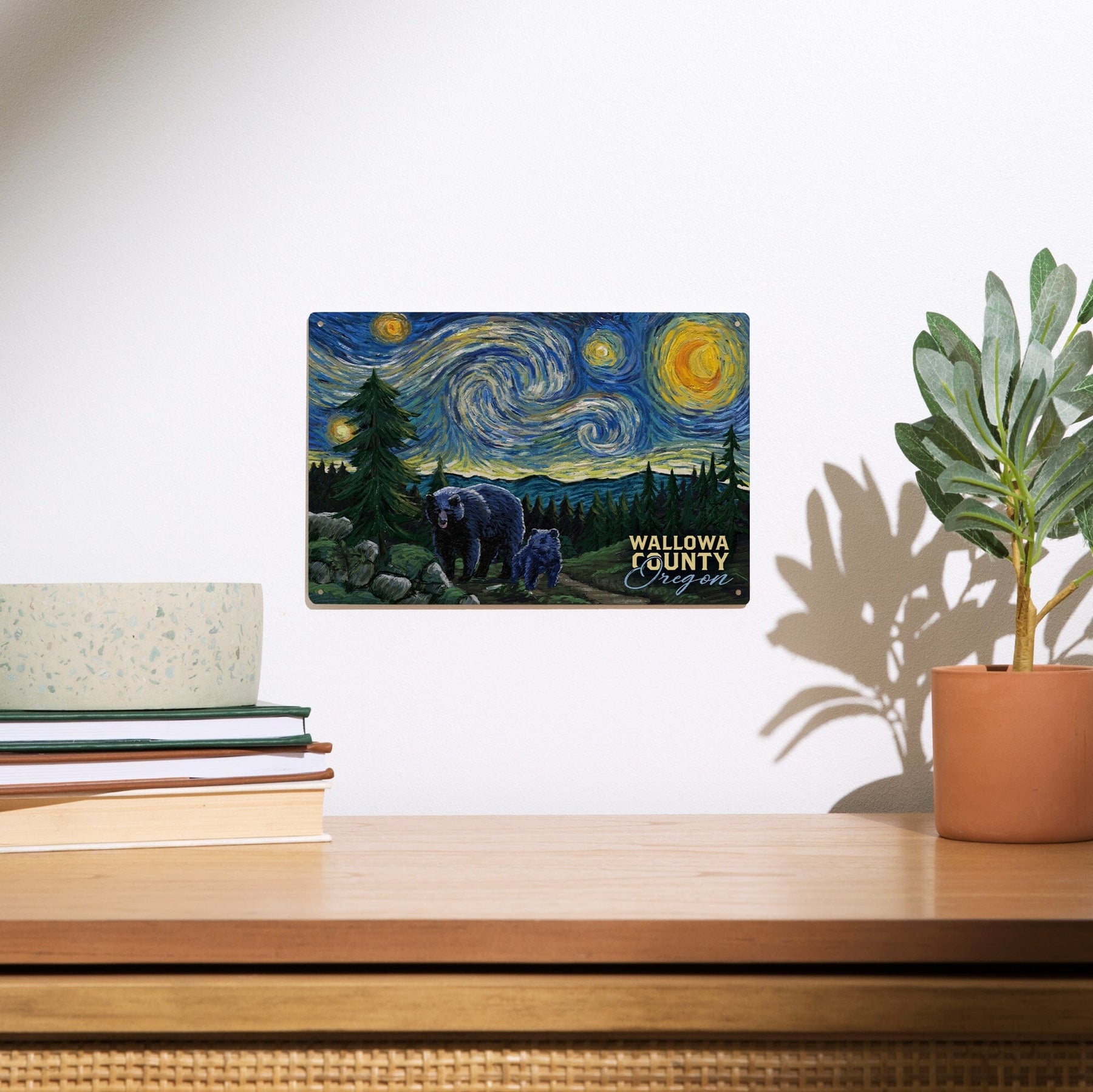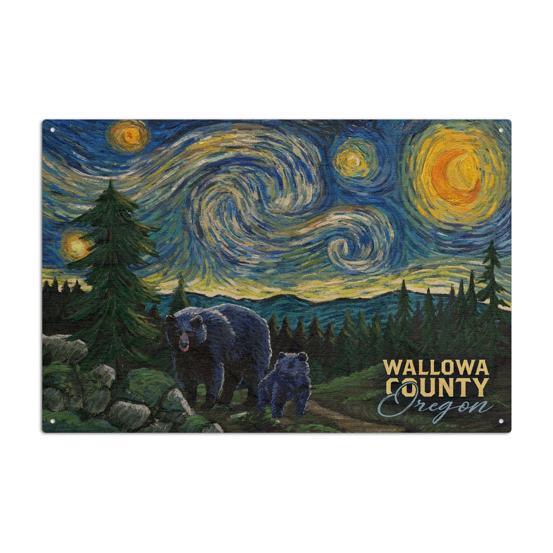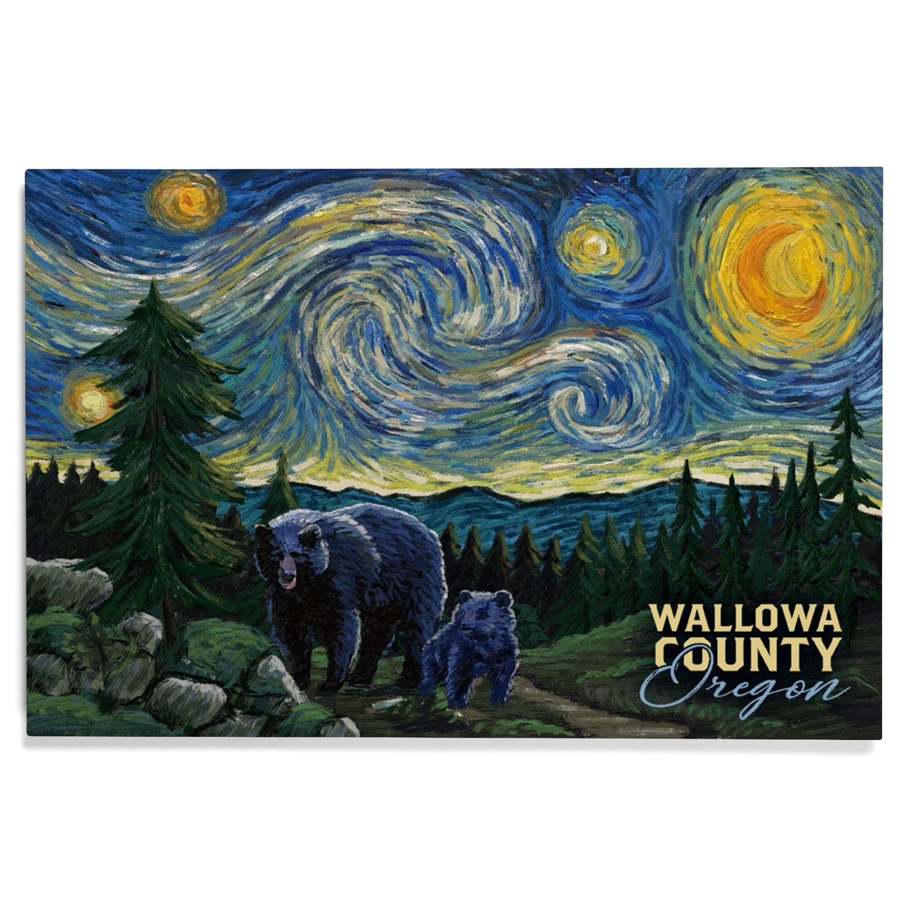 Wallowa Lake, Oregon, Bear, Starry Night, Lantern Press Artwork, Wood Signs and Postcards Wood Lantern Press