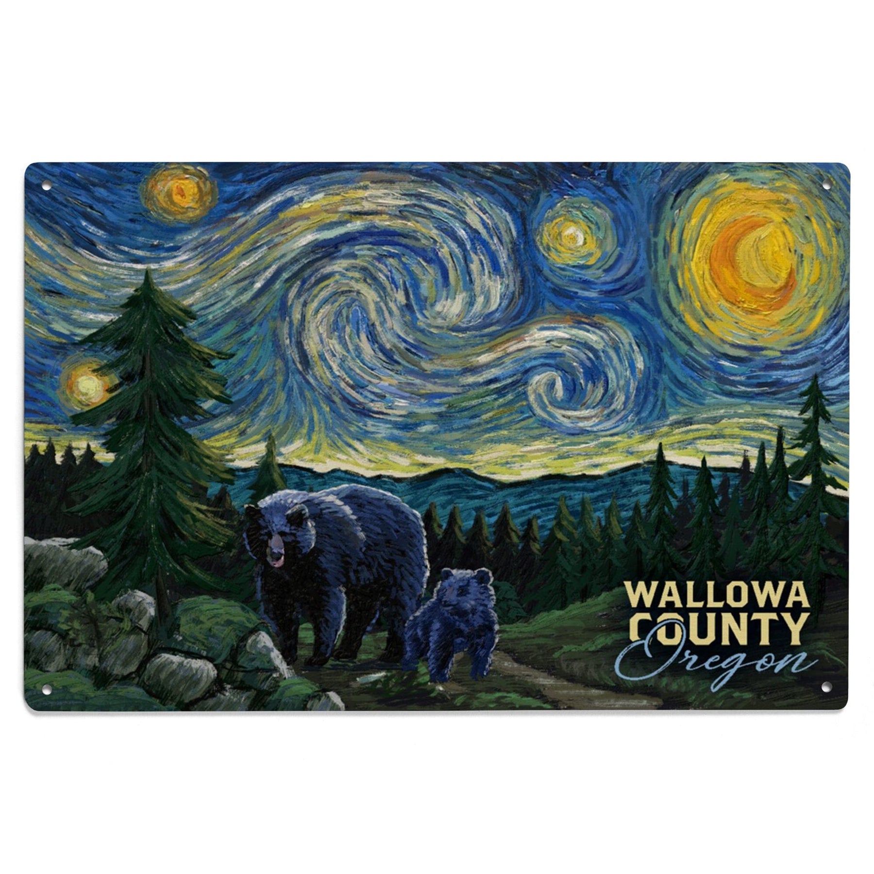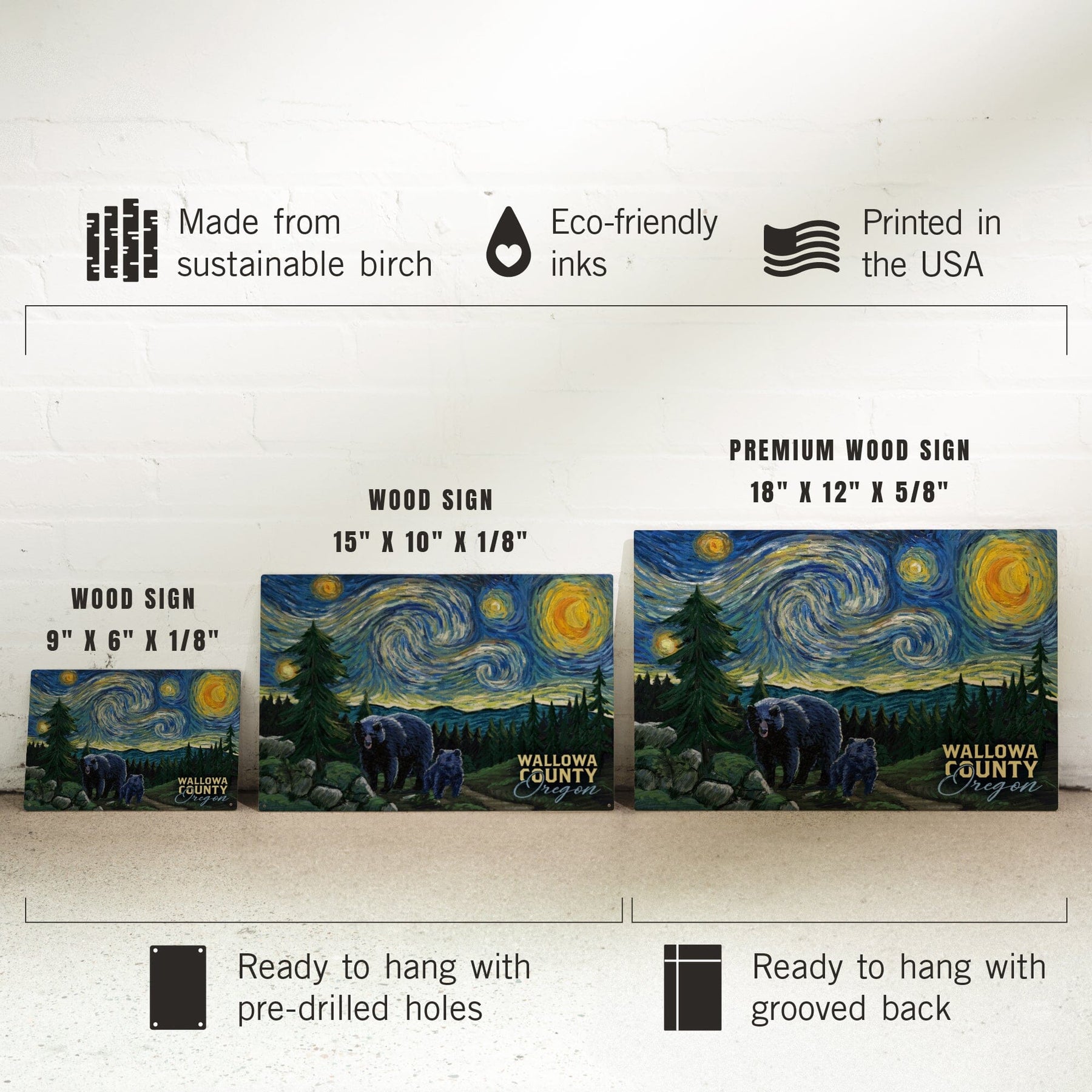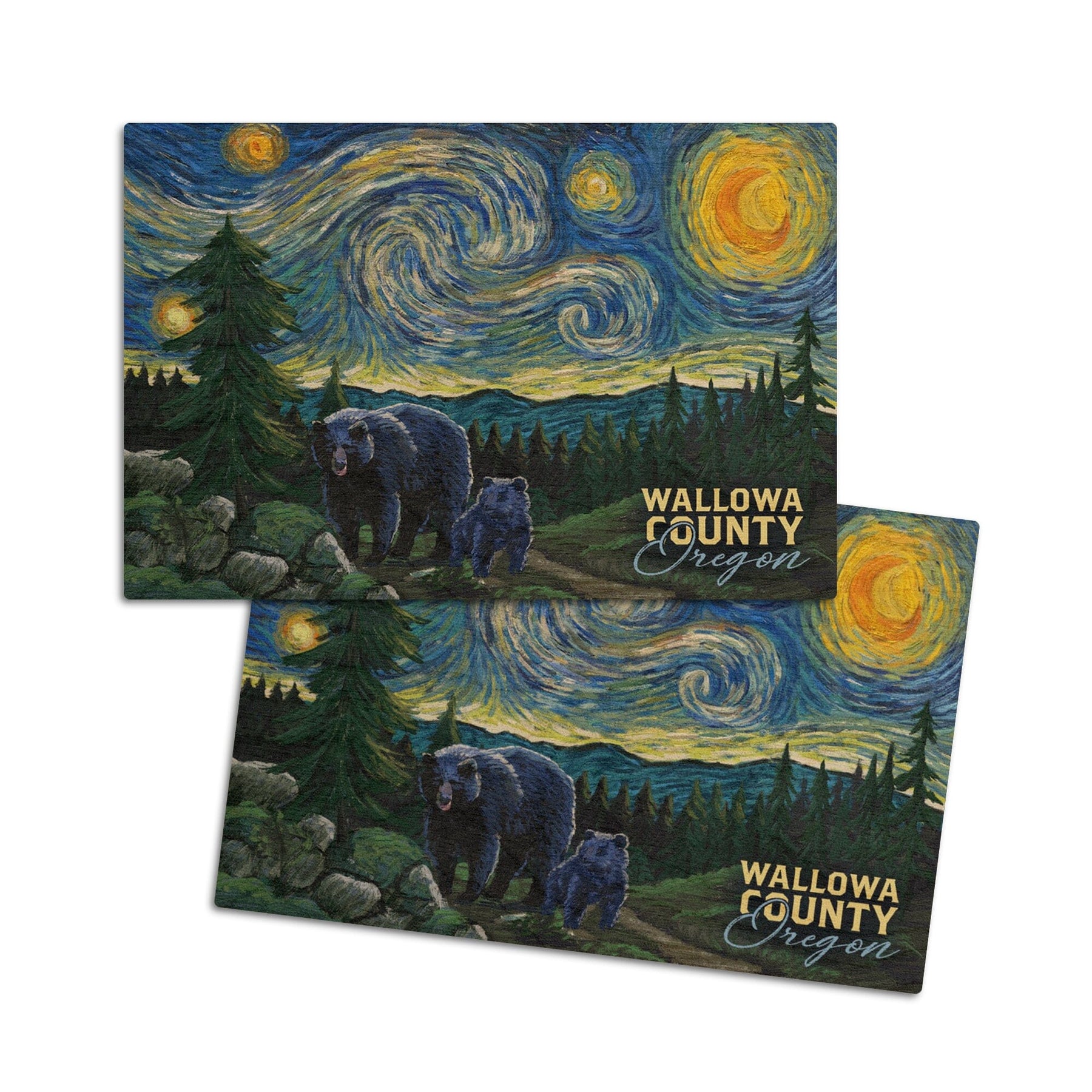Wallowa Lake, Oregon, Bear, Starry Night, Lantern Press Artwork, Wood Signs and Postcards Wood Lantern Press