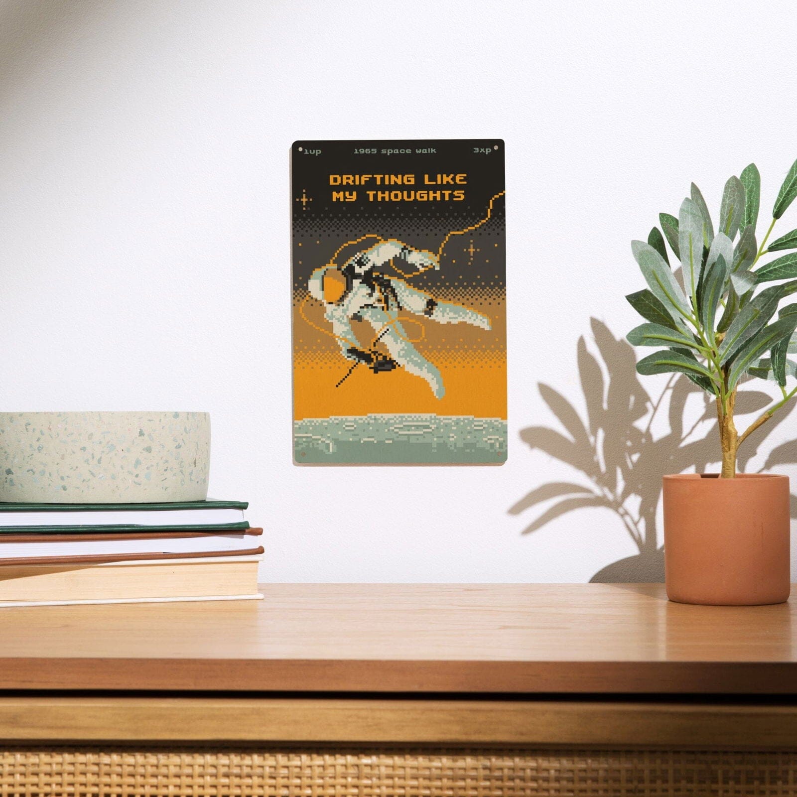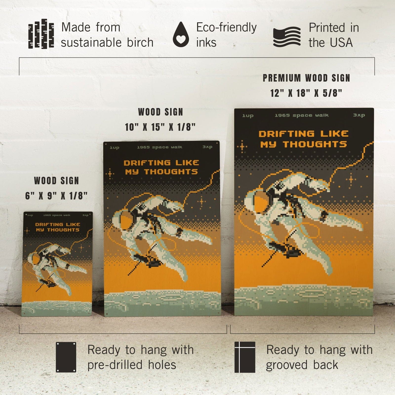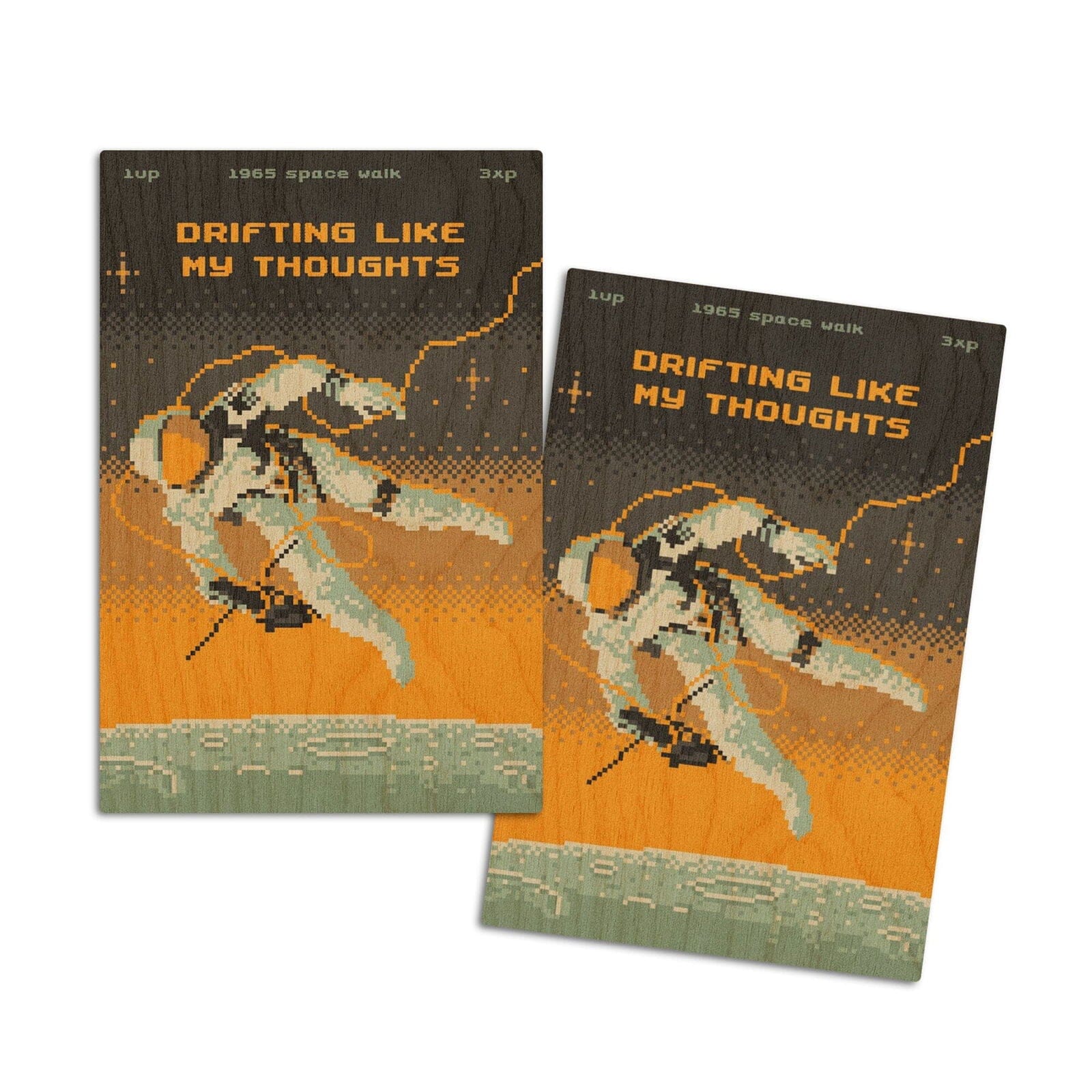 8-Bit Space Collection, Astronaut, Drifting Like My Thoughts, Wood Signs and Postcards Wood Lantern Press