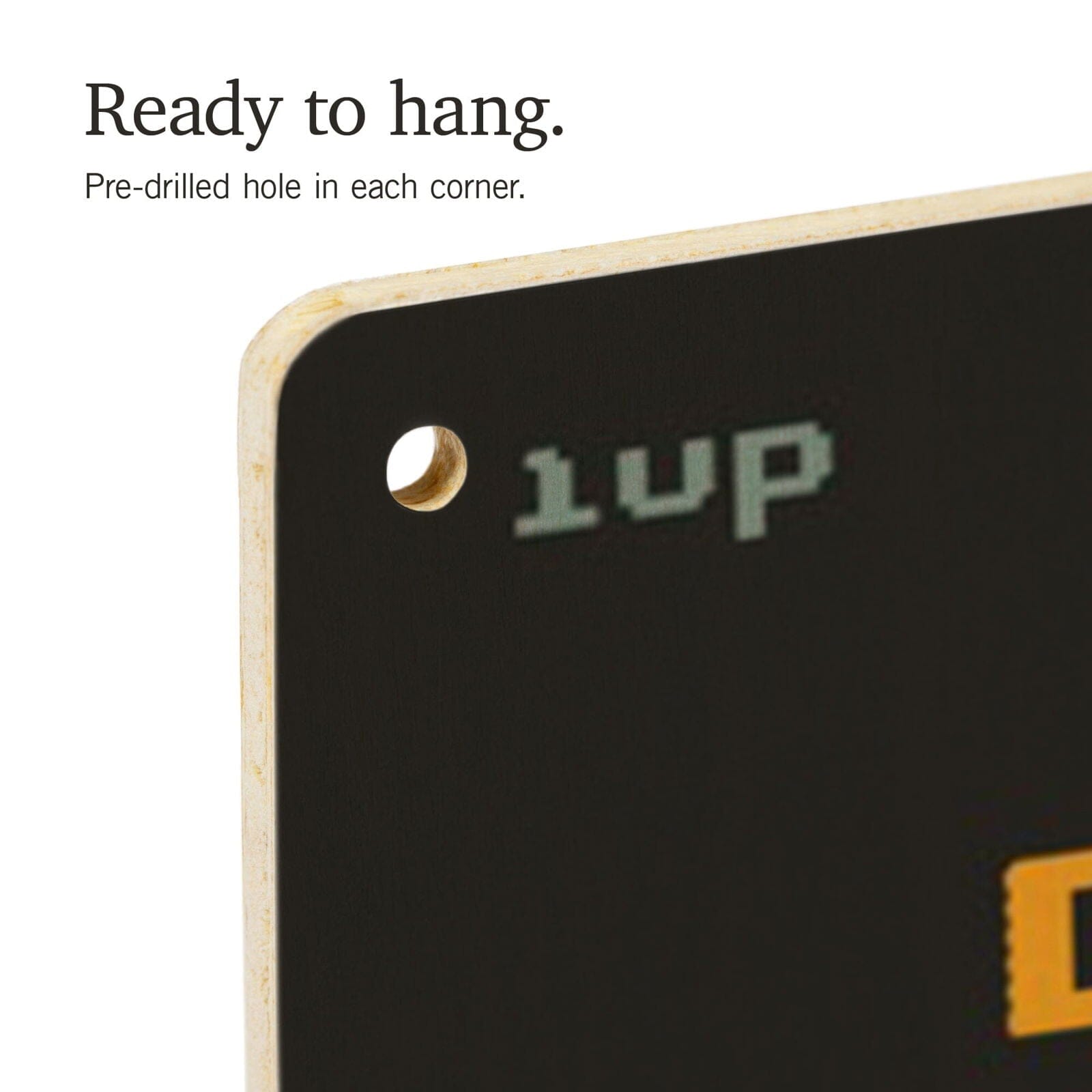 • Hole in each corner, ready to hang