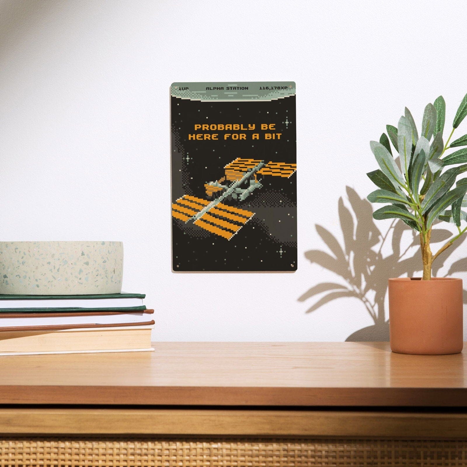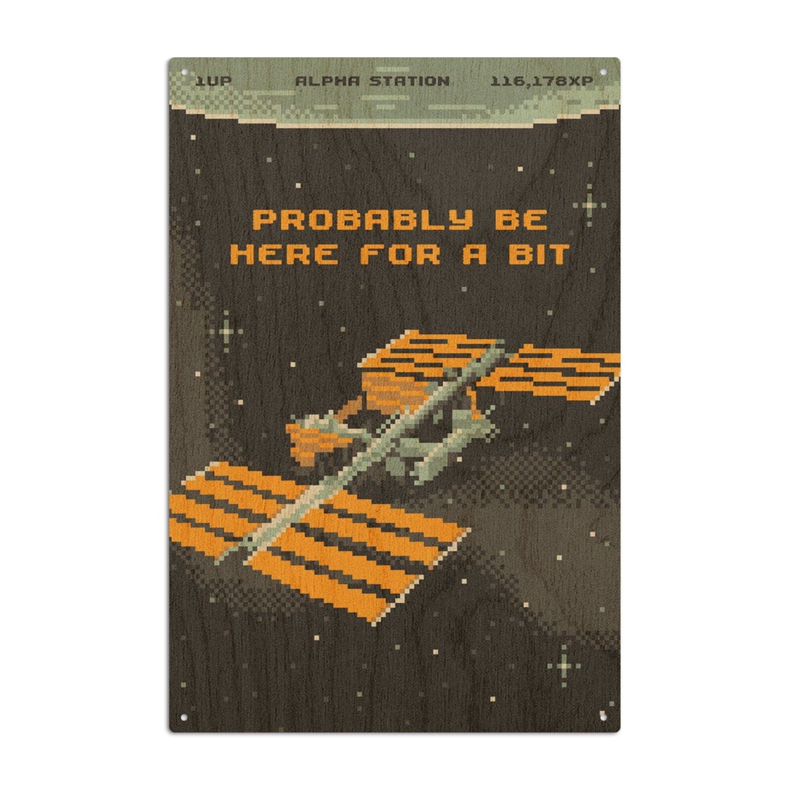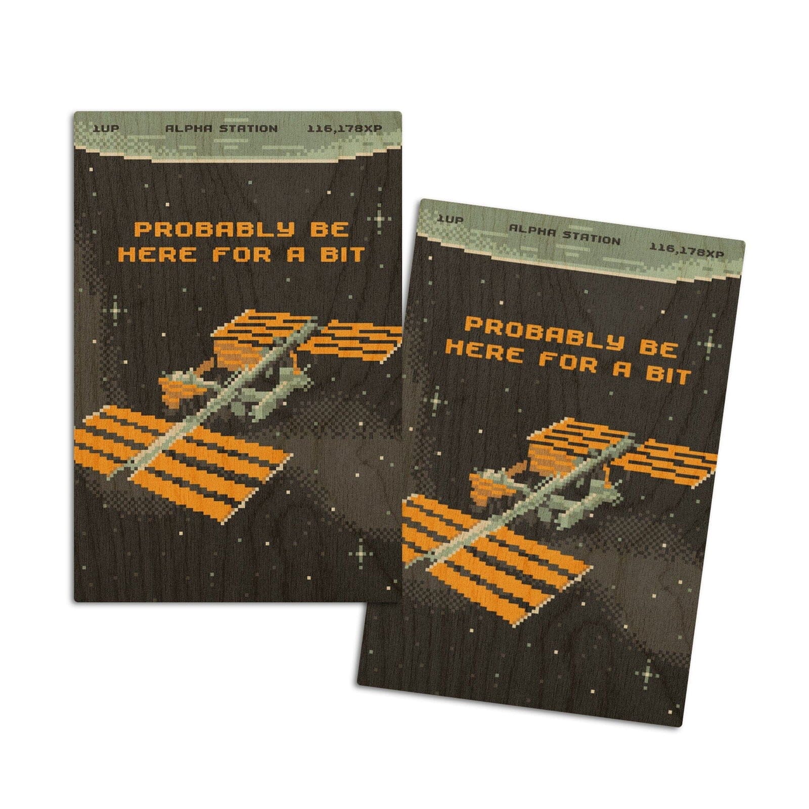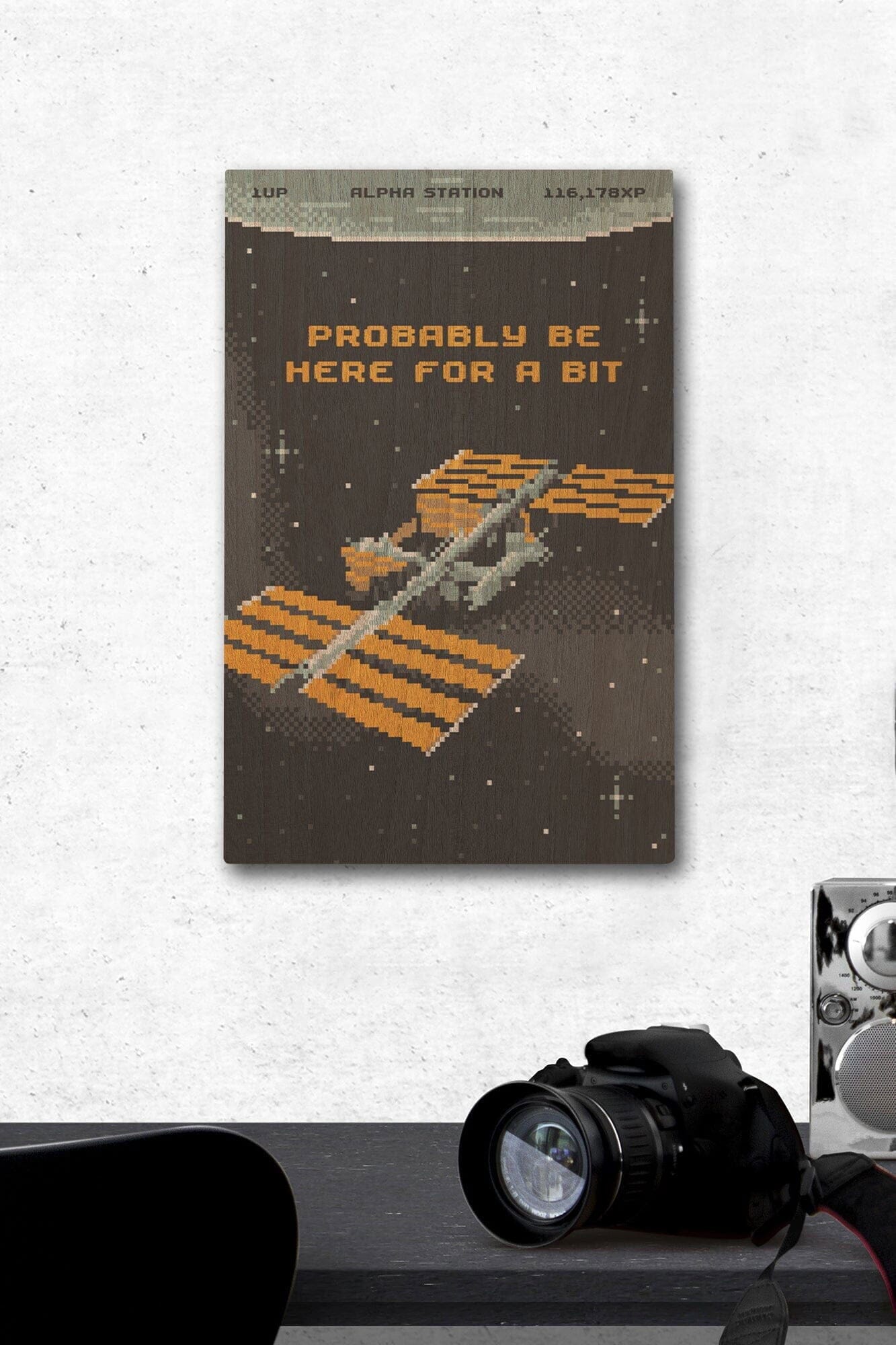 8-Bit Space Collection, International Space Station, Probably Be Here For A Bit, Wood Signs and Postcards Wood Lantern Press