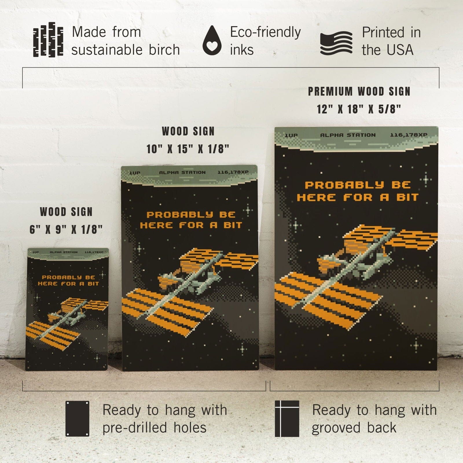 8-Bit Space Collection, International Space Station, Probably Be Here For A Bit, Wood Signs and Postcards