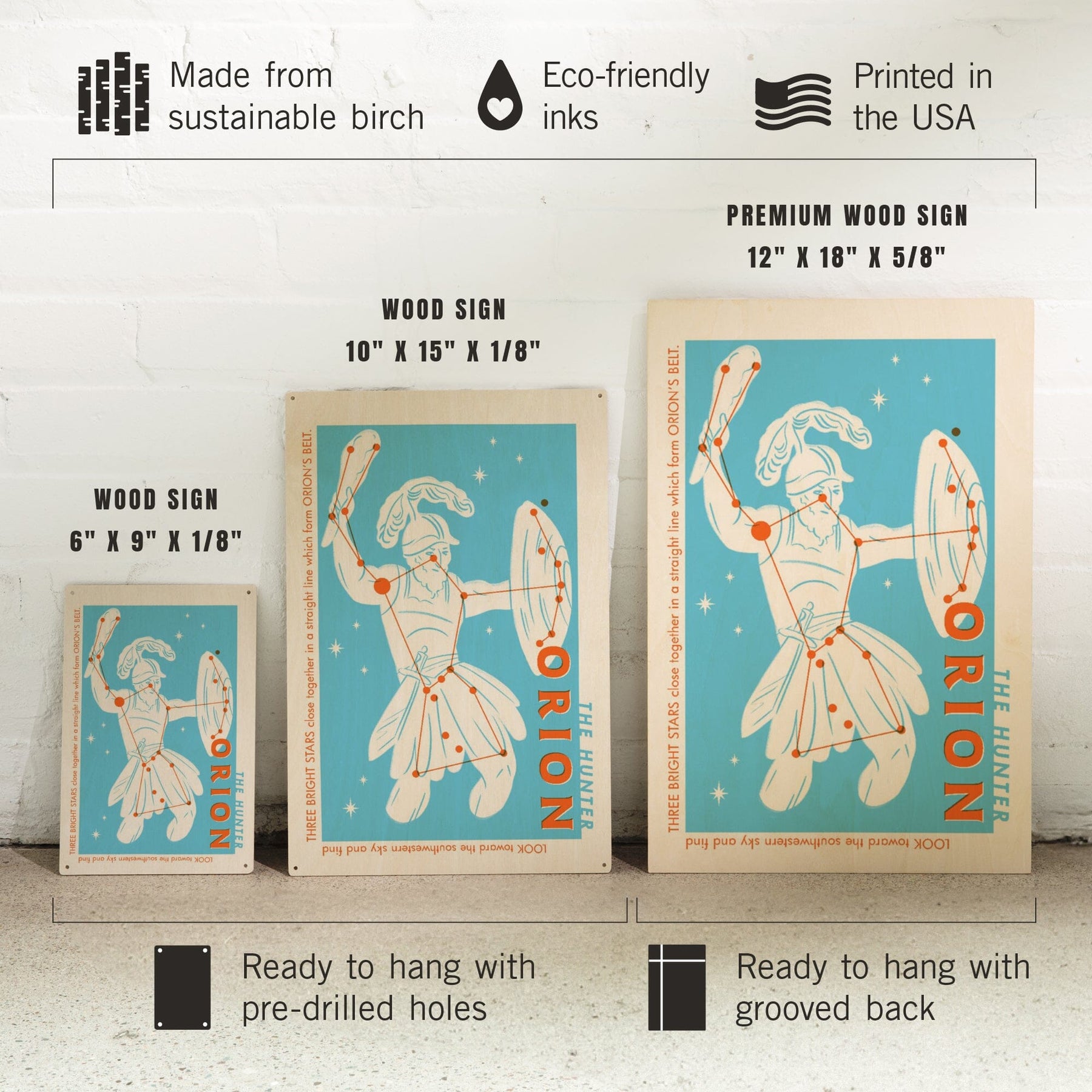 Drawings in the Stars Collection, Orion, The Hunter Constellation, Wood Signs and Postcards