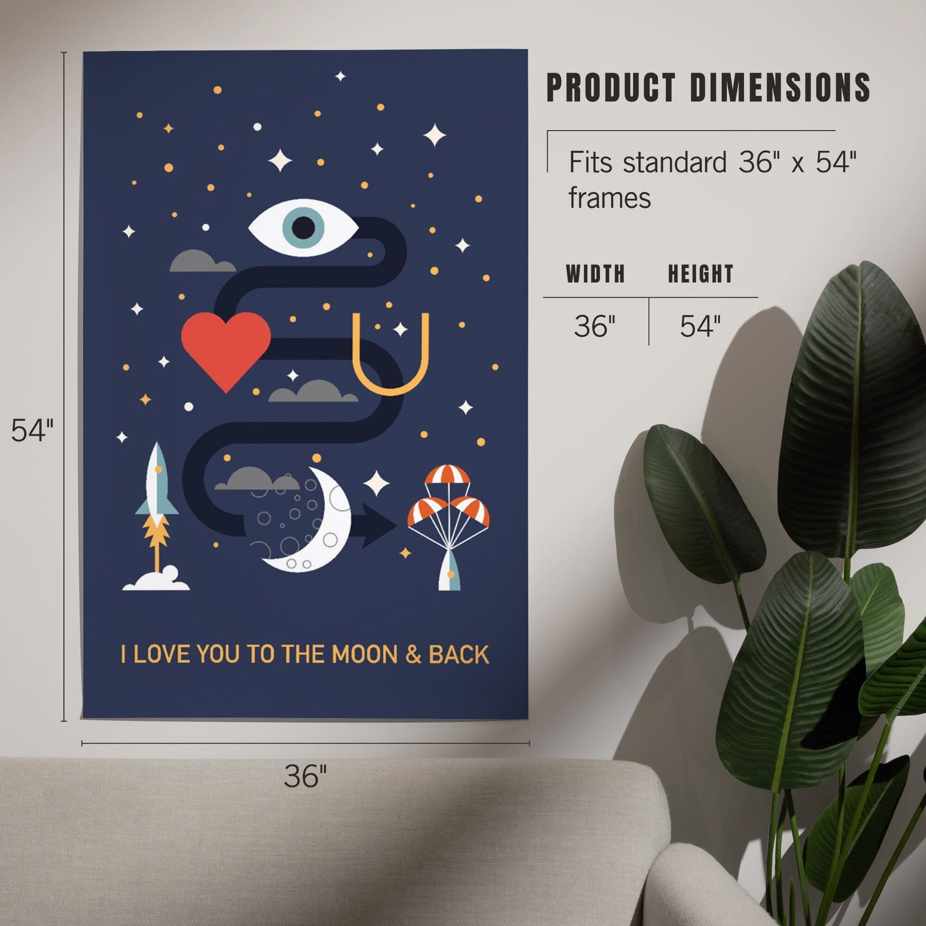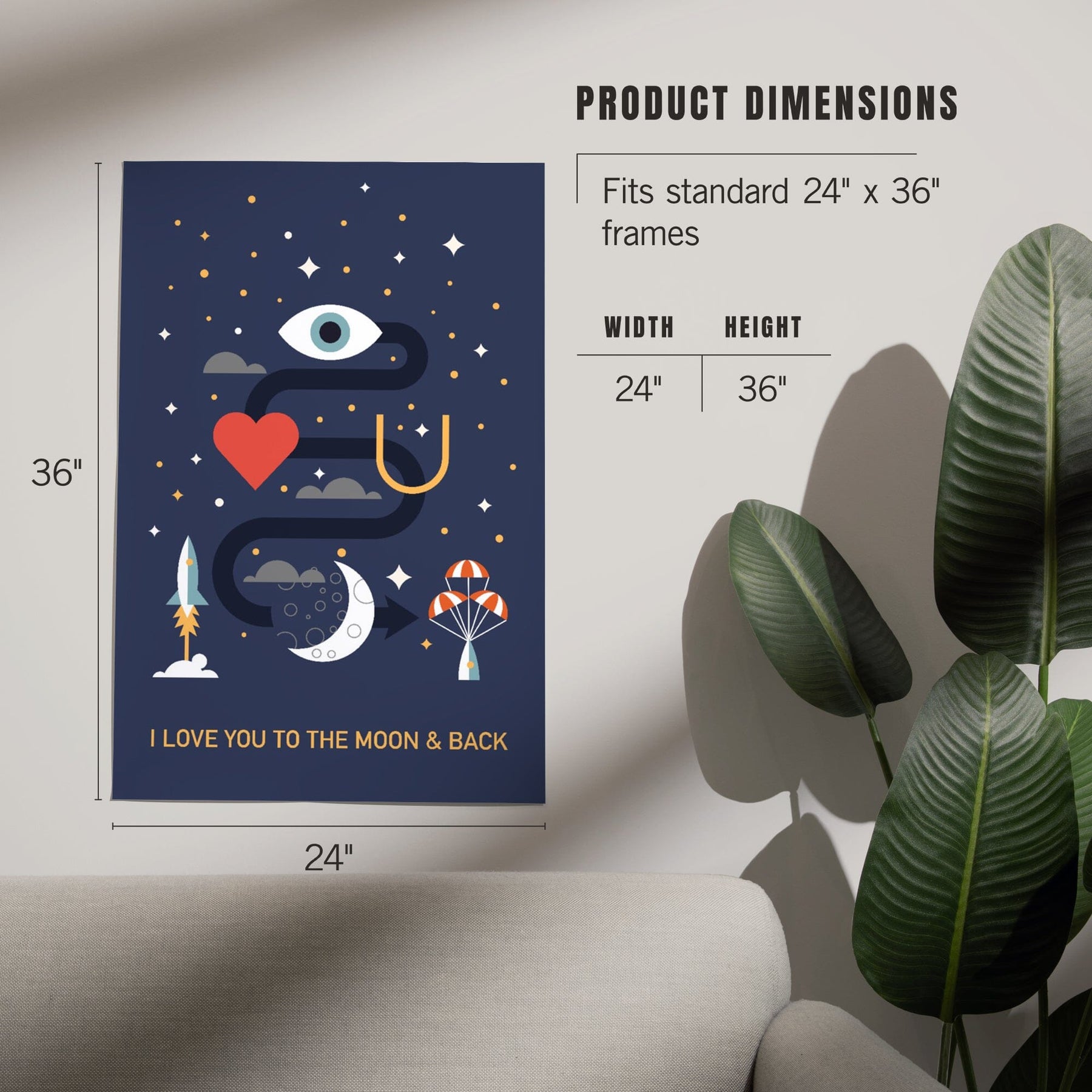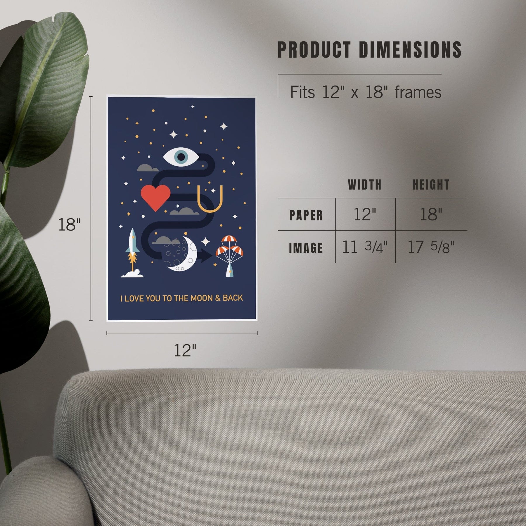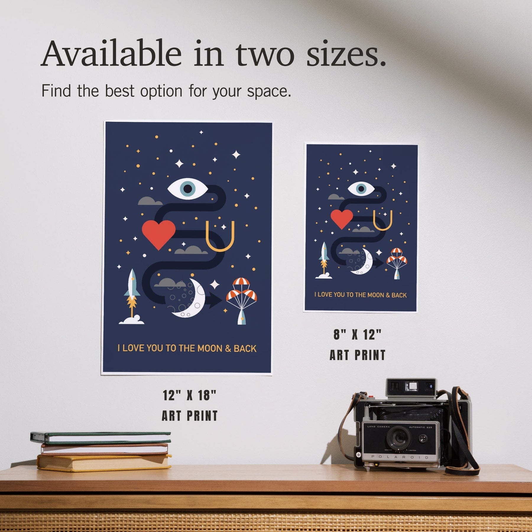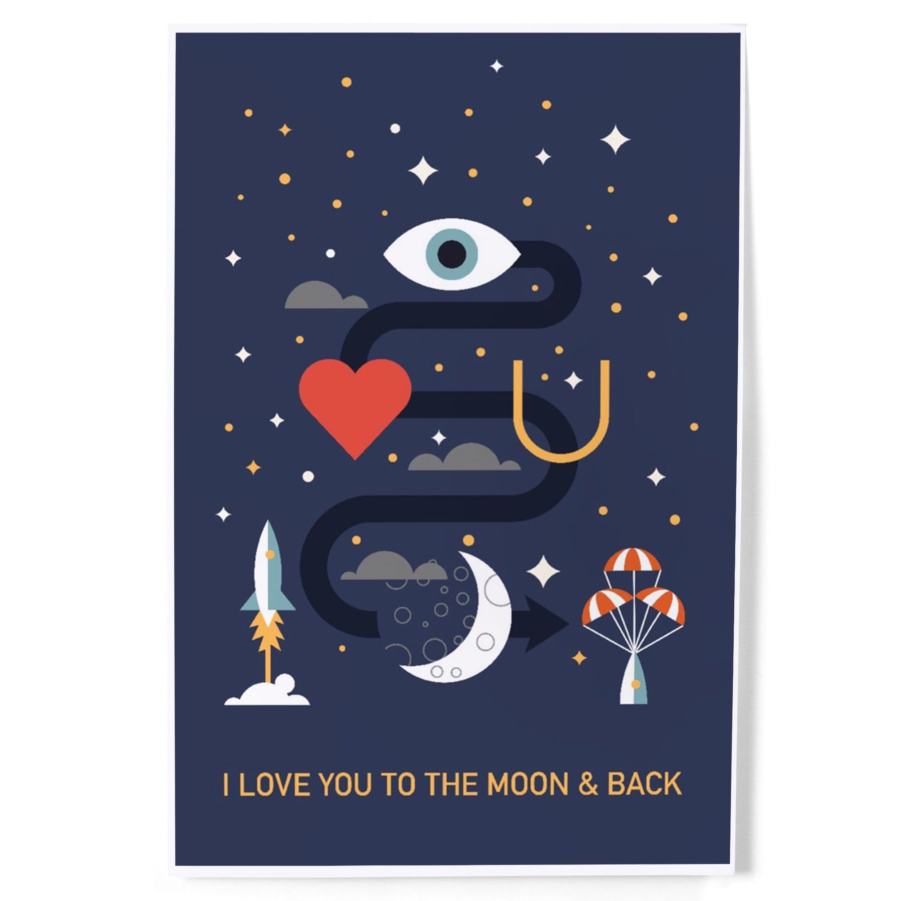 Equations and Emojis Collection, I Love You To The Moon And Back, Art & Giclee Prints - Lantern Press
