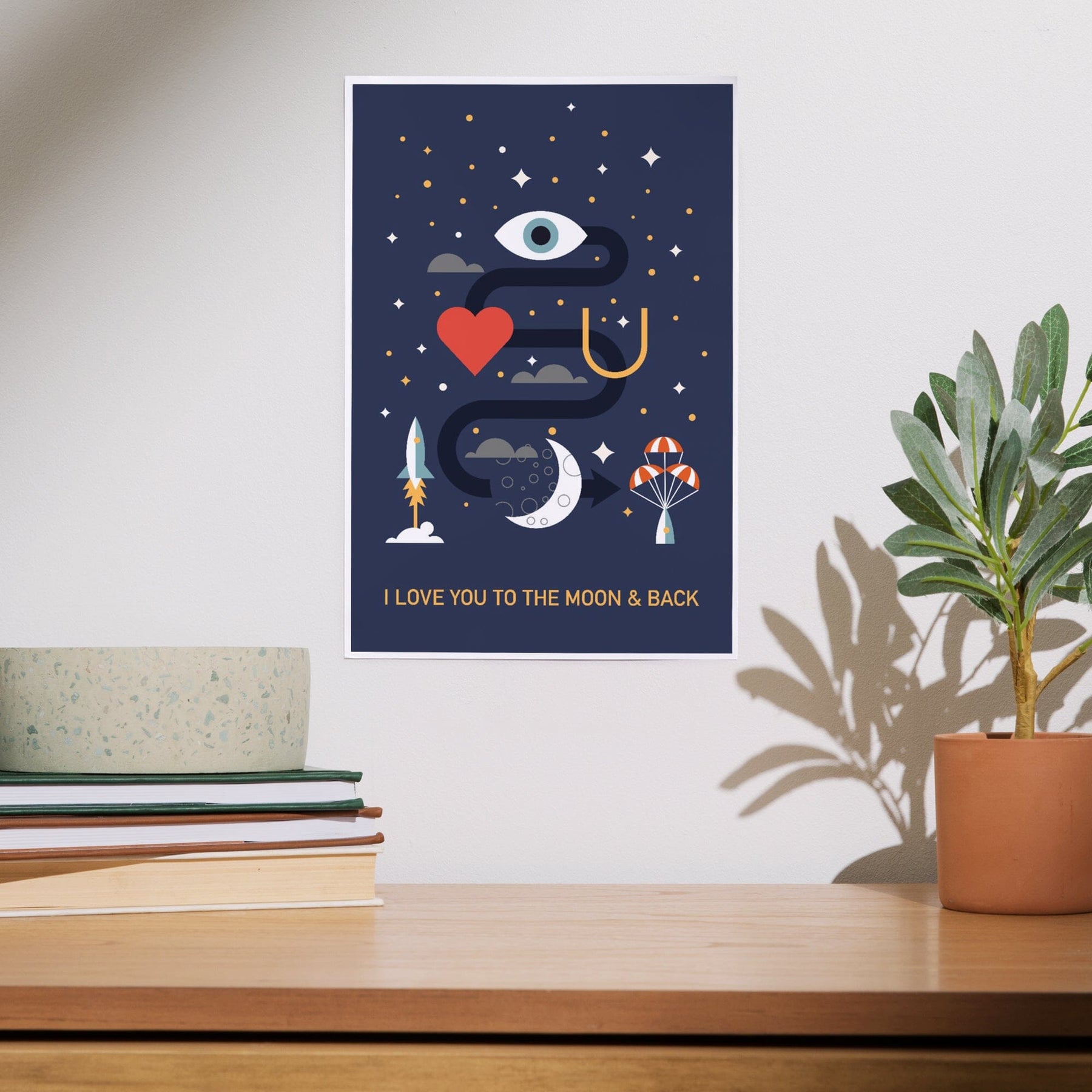 Equations and Emojis Collection, I Love You To The Moon And Back, Art & Giclee Prints