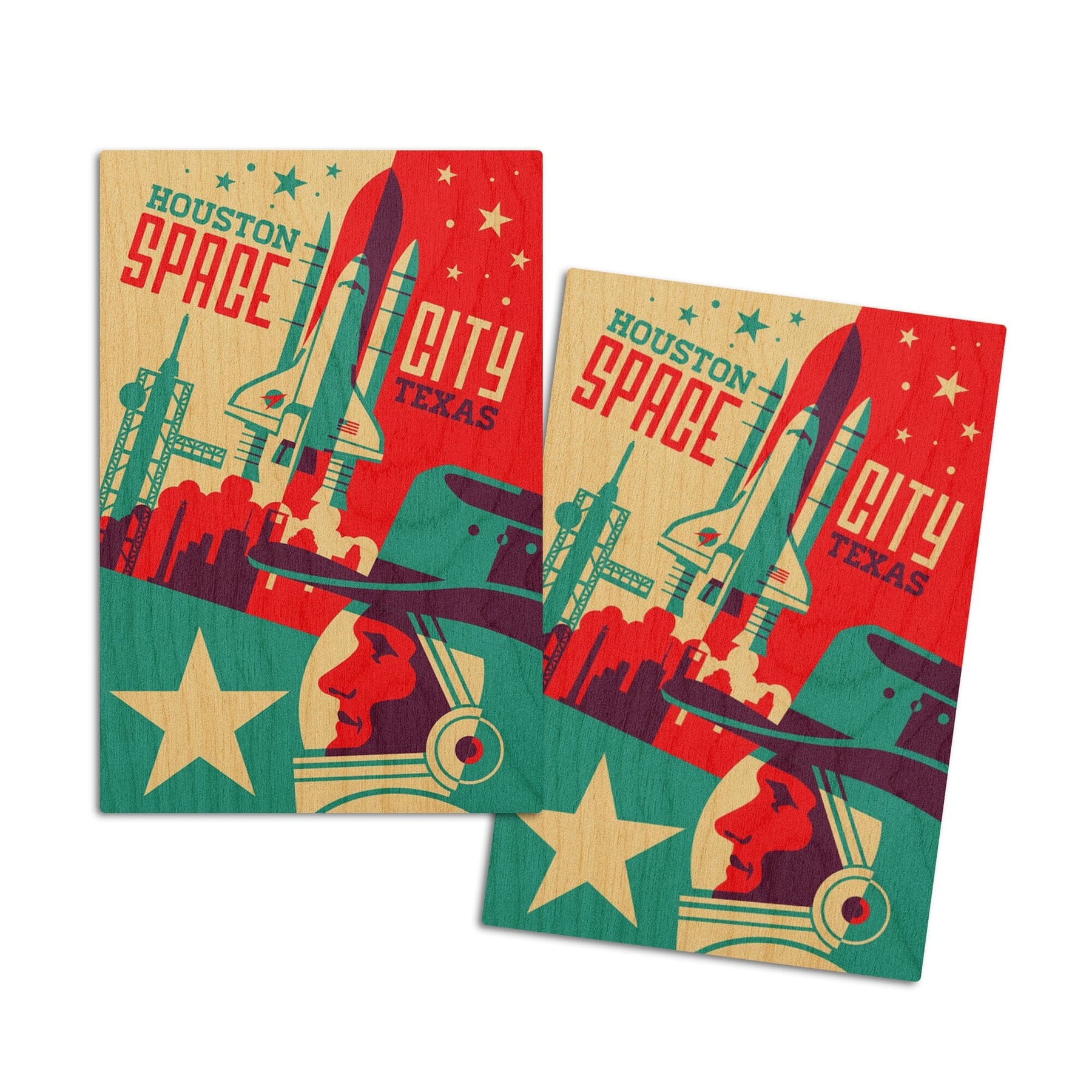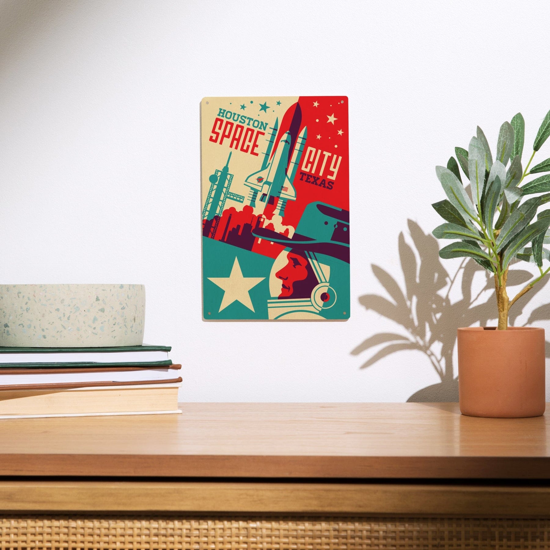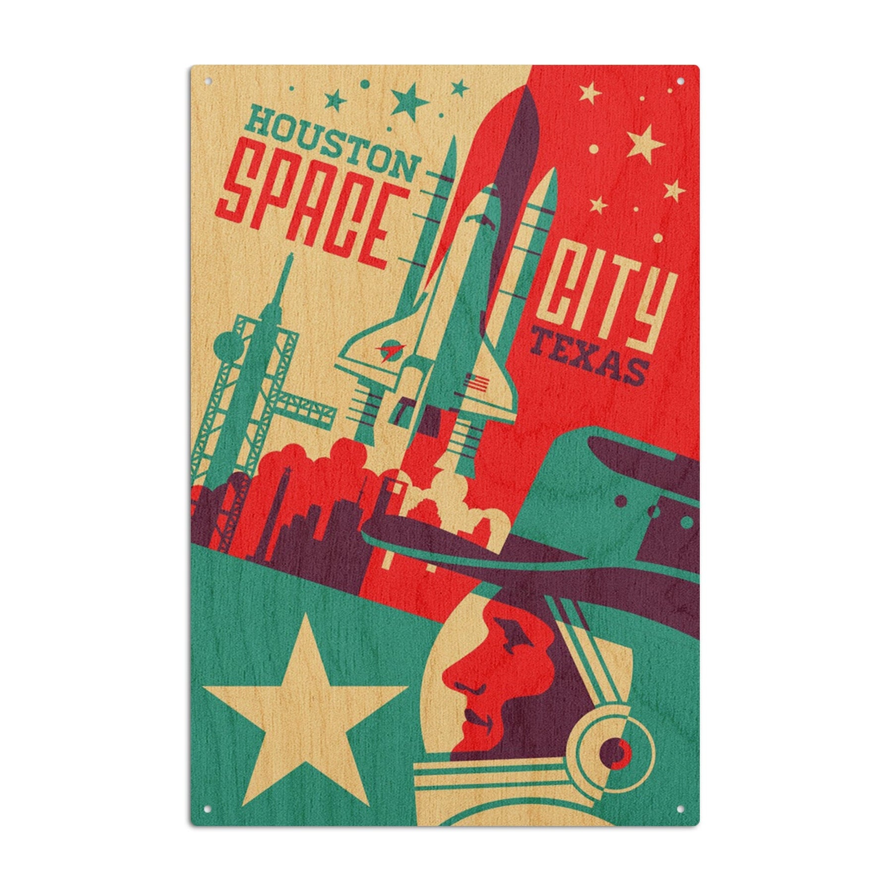 Houston, Texas, Space City, Vector, Lantern Press Artwork, Wood Signs and Postcards - Lantern Press