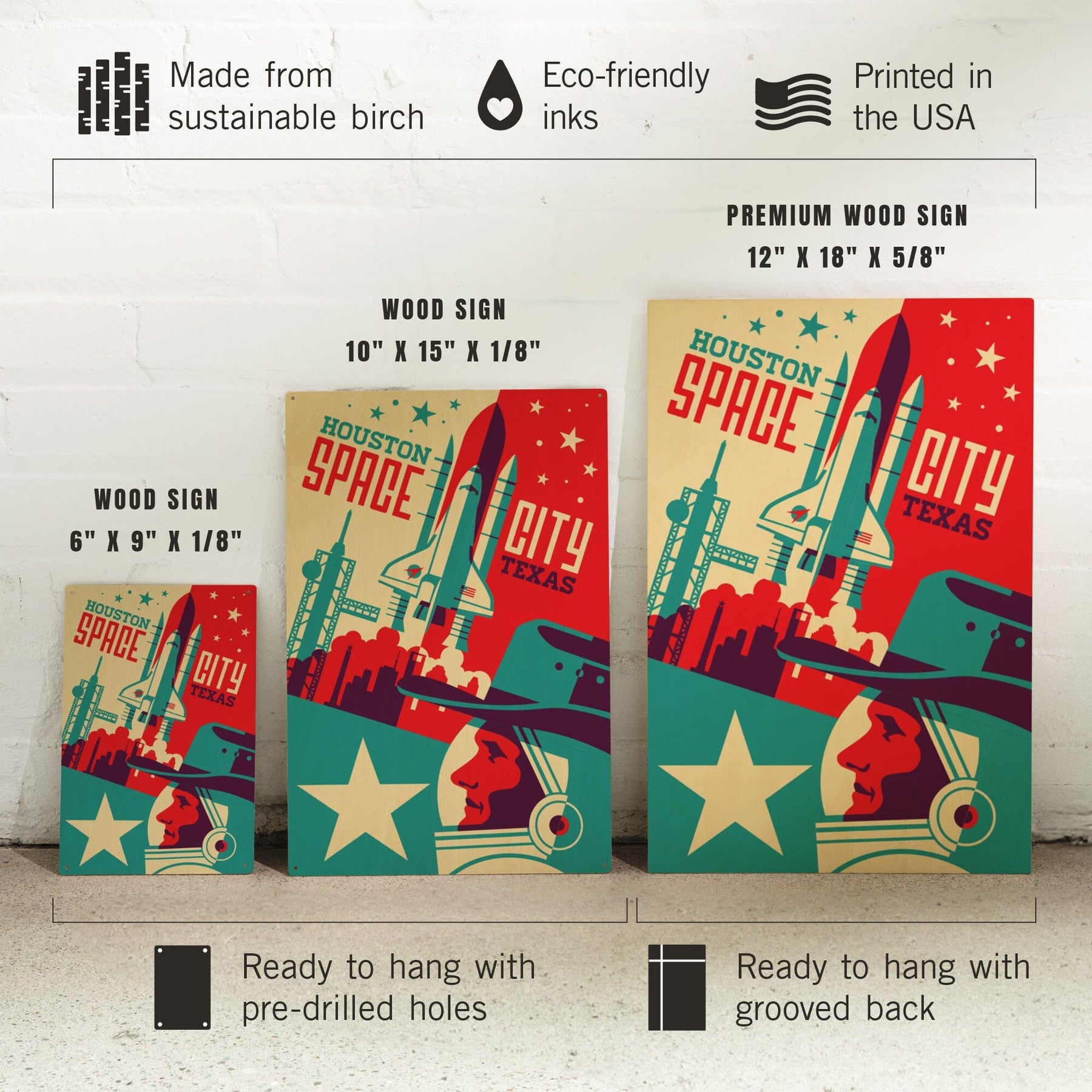 Houston, Texas, Space City, Vector, Lantern Press Artwork, Wood Signs and Postcards