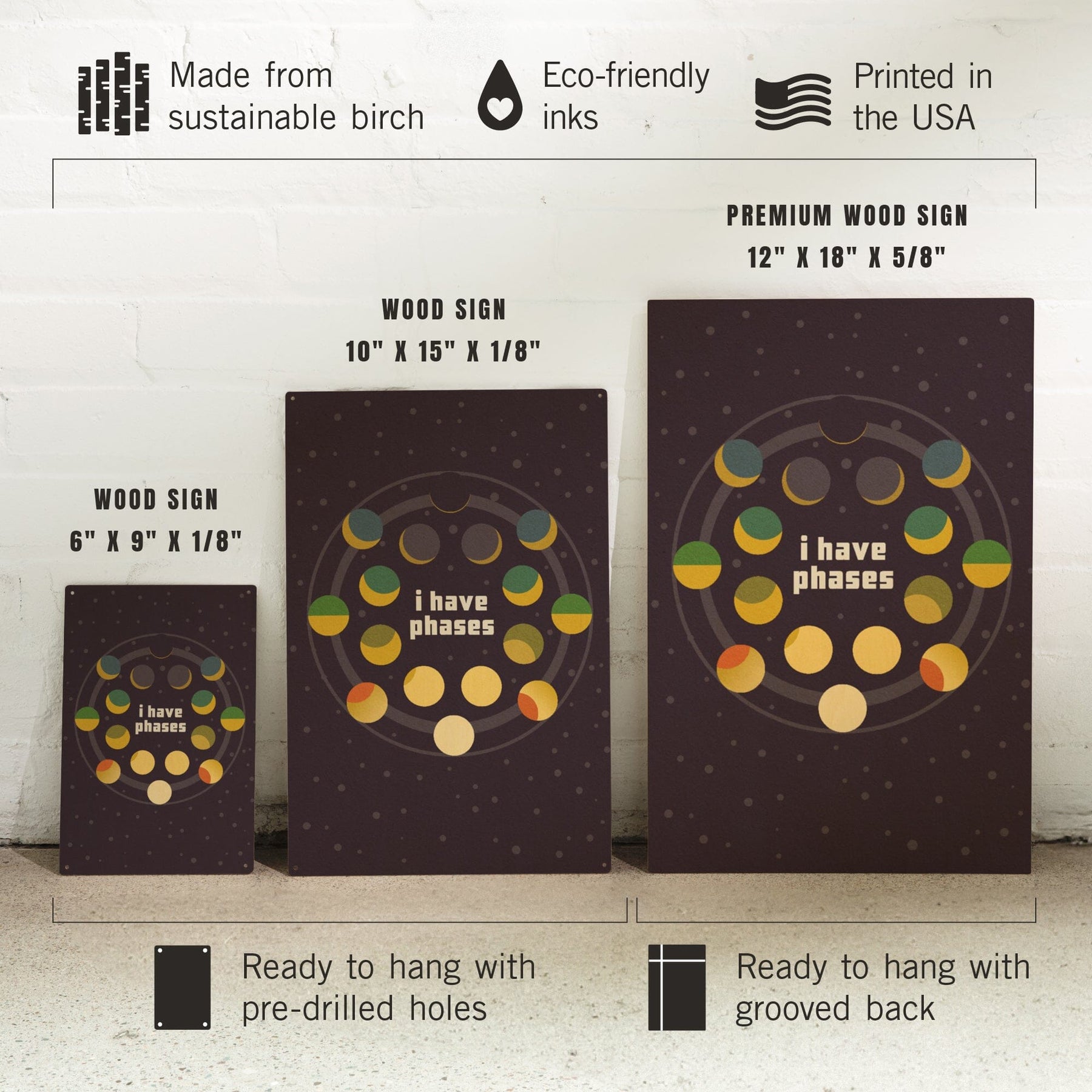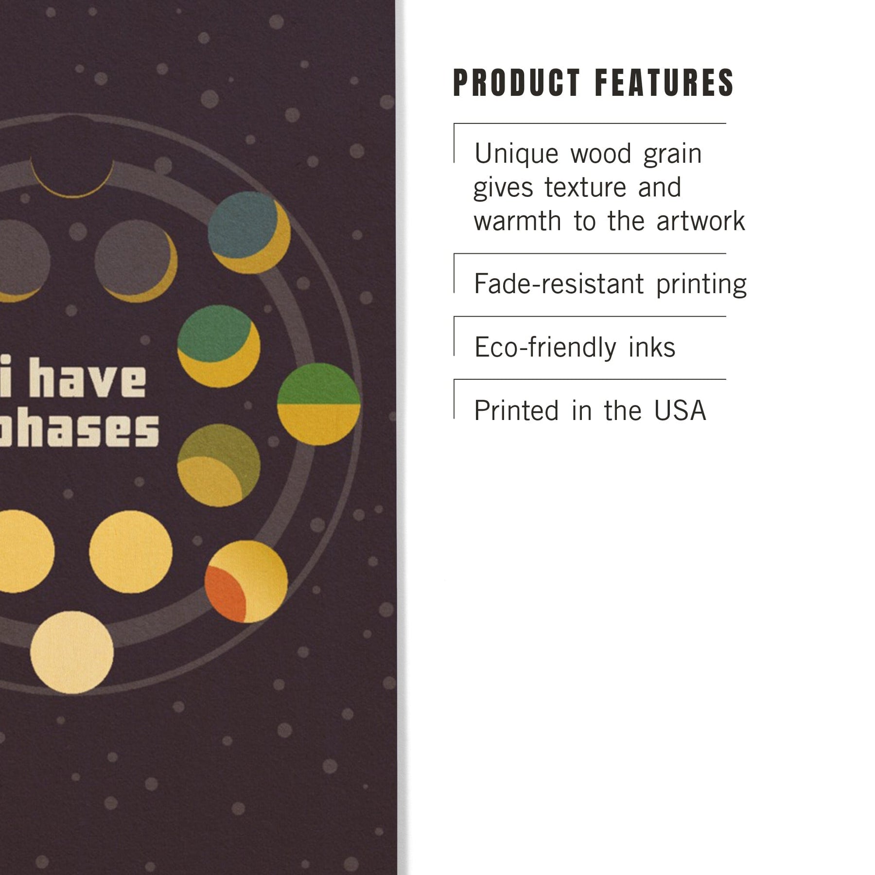 Space Is The Place Collection, Moon Phase, I Have Phases, Wood Signs and Postcards Wood Lantern Press